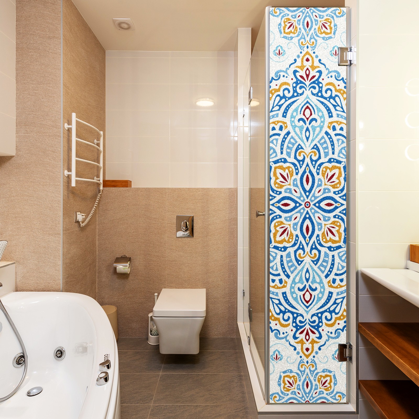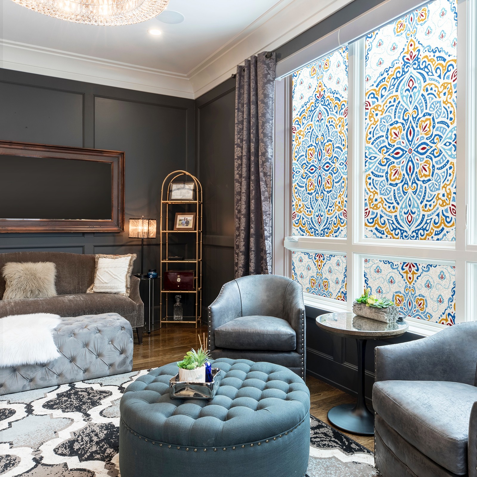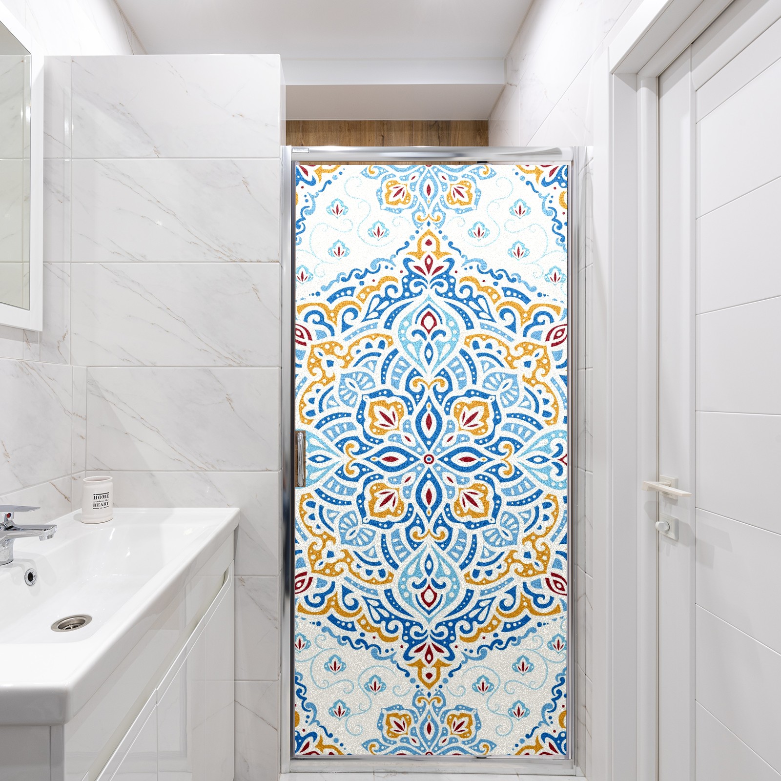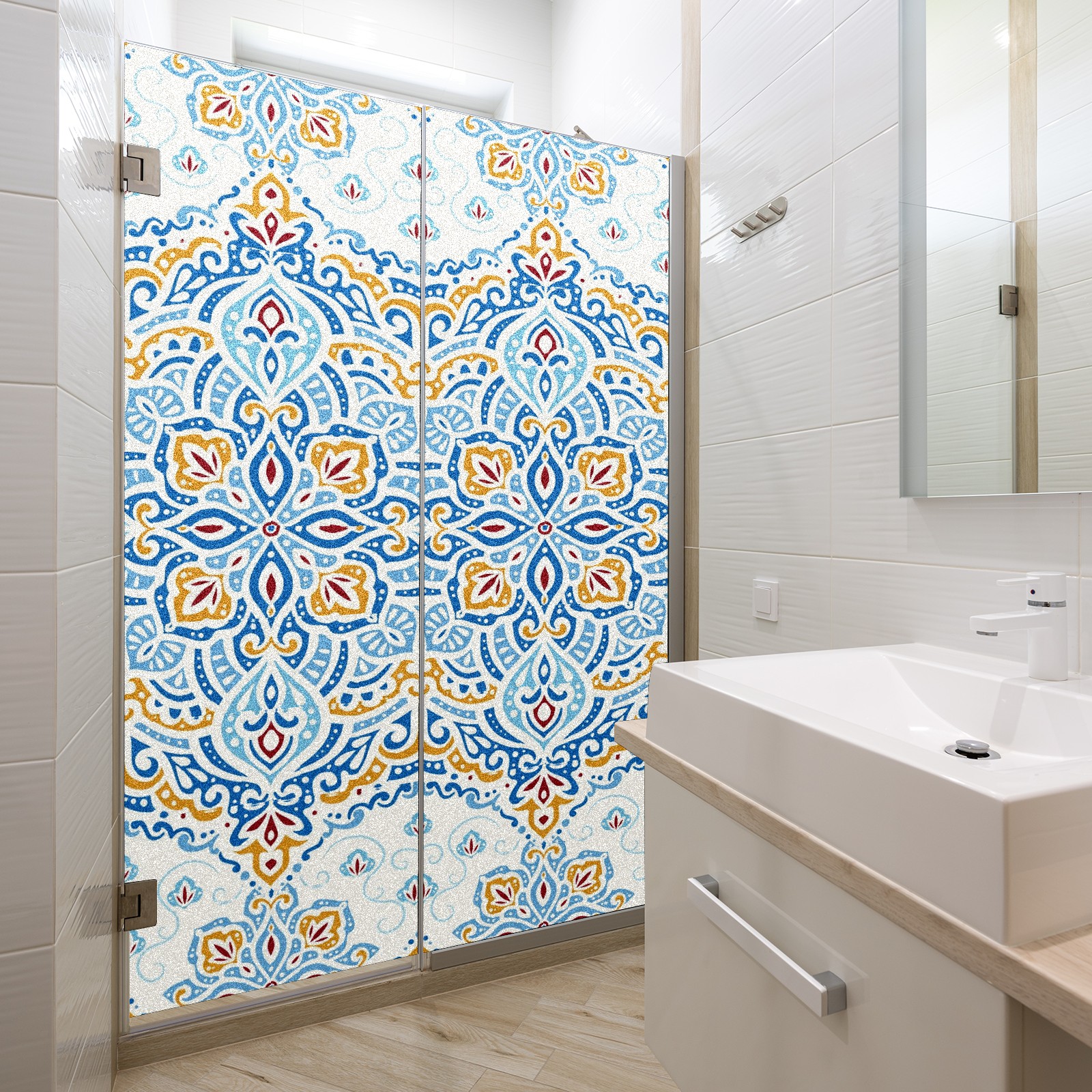 Static Cling Decorative Window Film Frosted Privacy Film Window Clings for Glass Windows No Glue Window Sticker for Bathroom Bedroom Office Blue Ethnic Boho Mandala Flower
