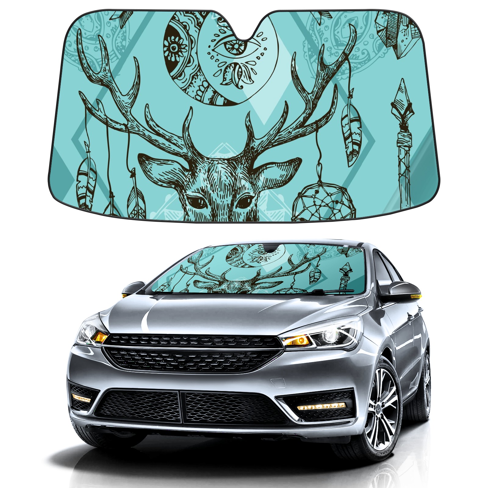 Car Windshield Sun Shade for Front Window Boho Deer Foldable Vehicle Windshield Car Sun Visor Covers Automotive Window Protector Car Camping Privacy Sun Blocker