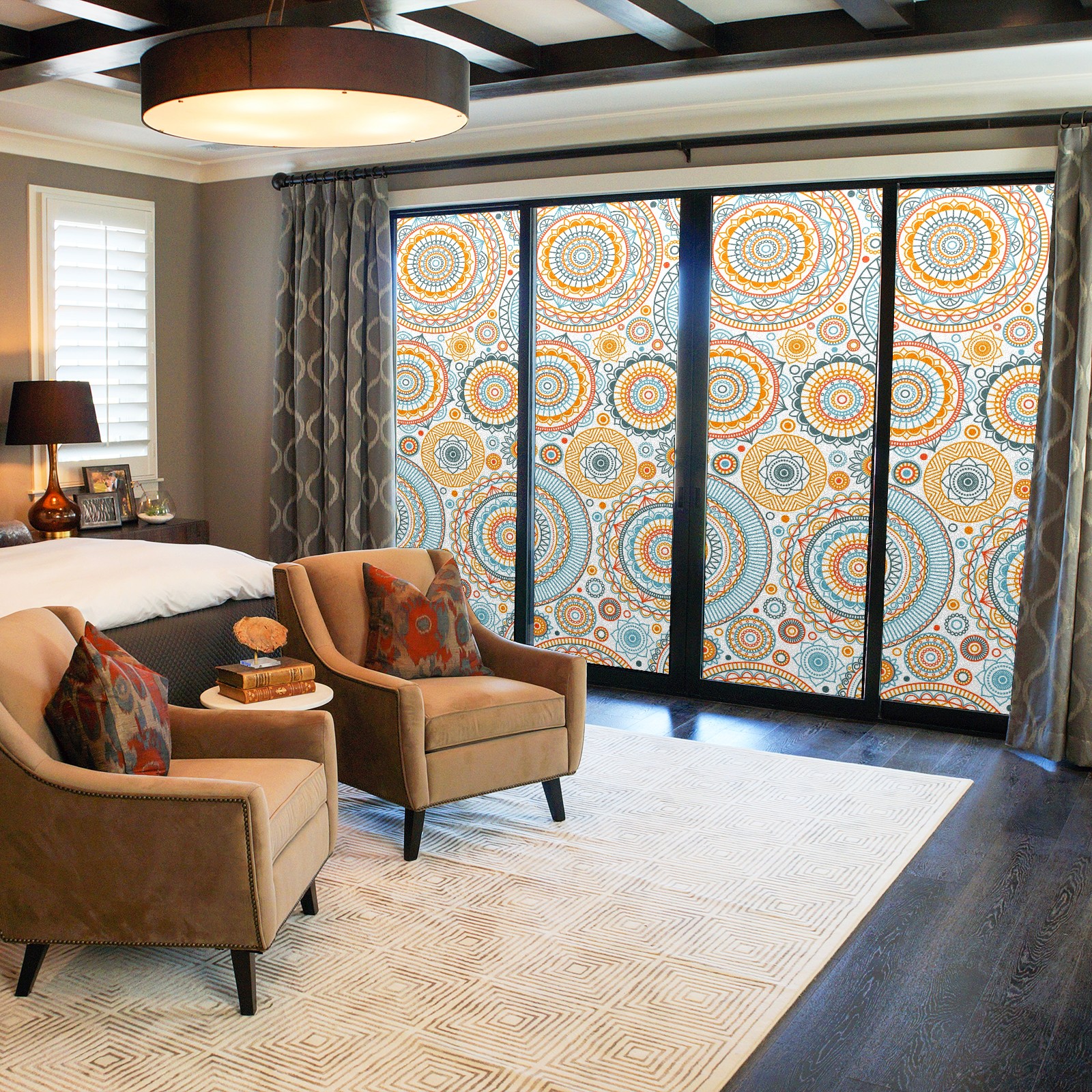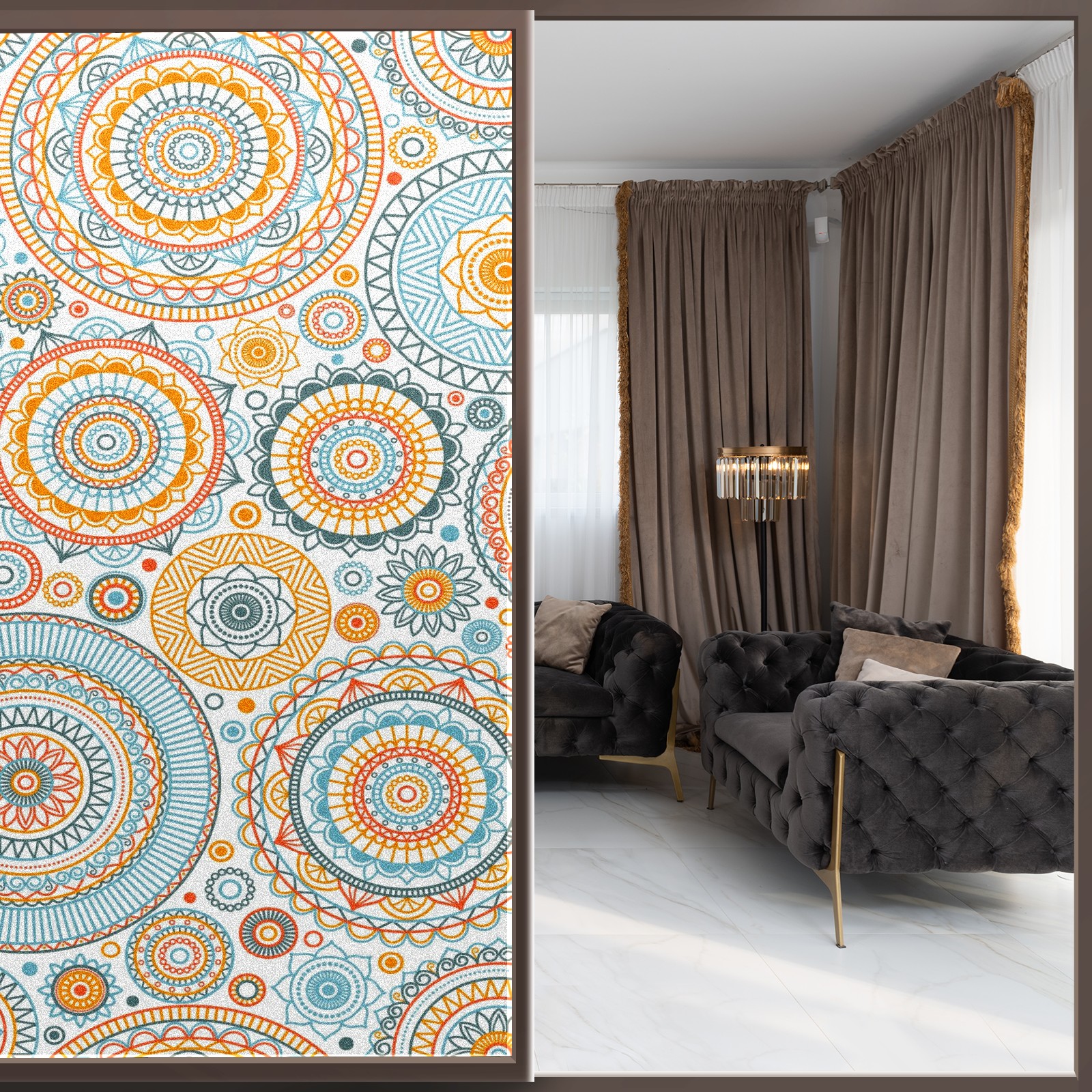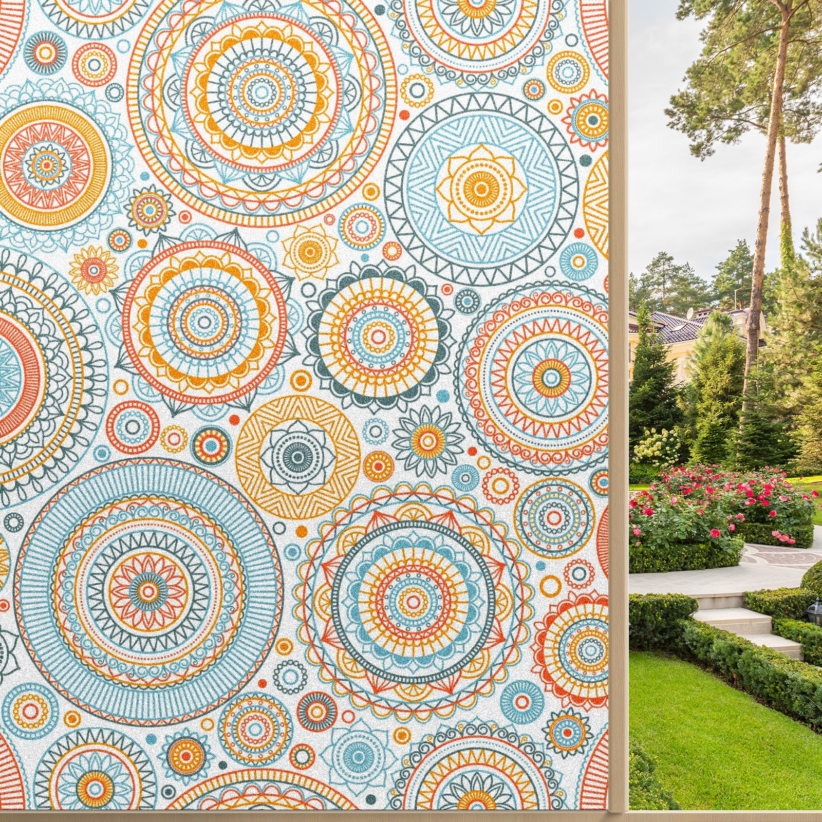Static Cling Decorative Window Film Frosted Privacy Film Window Clings for Glass Windows No Glue Window Sticker for Bathroom Bedroom Office Blue And Red Mandala Flower