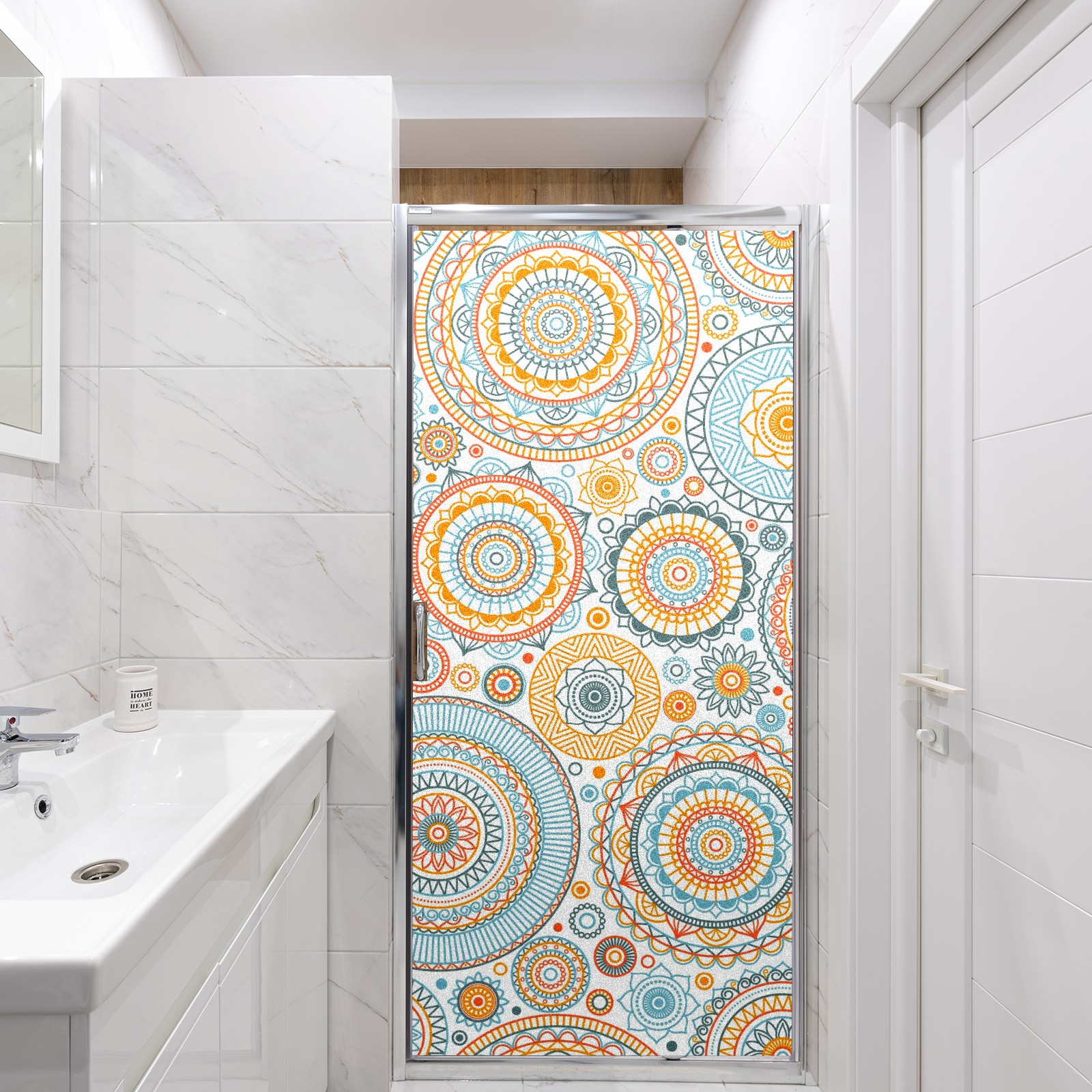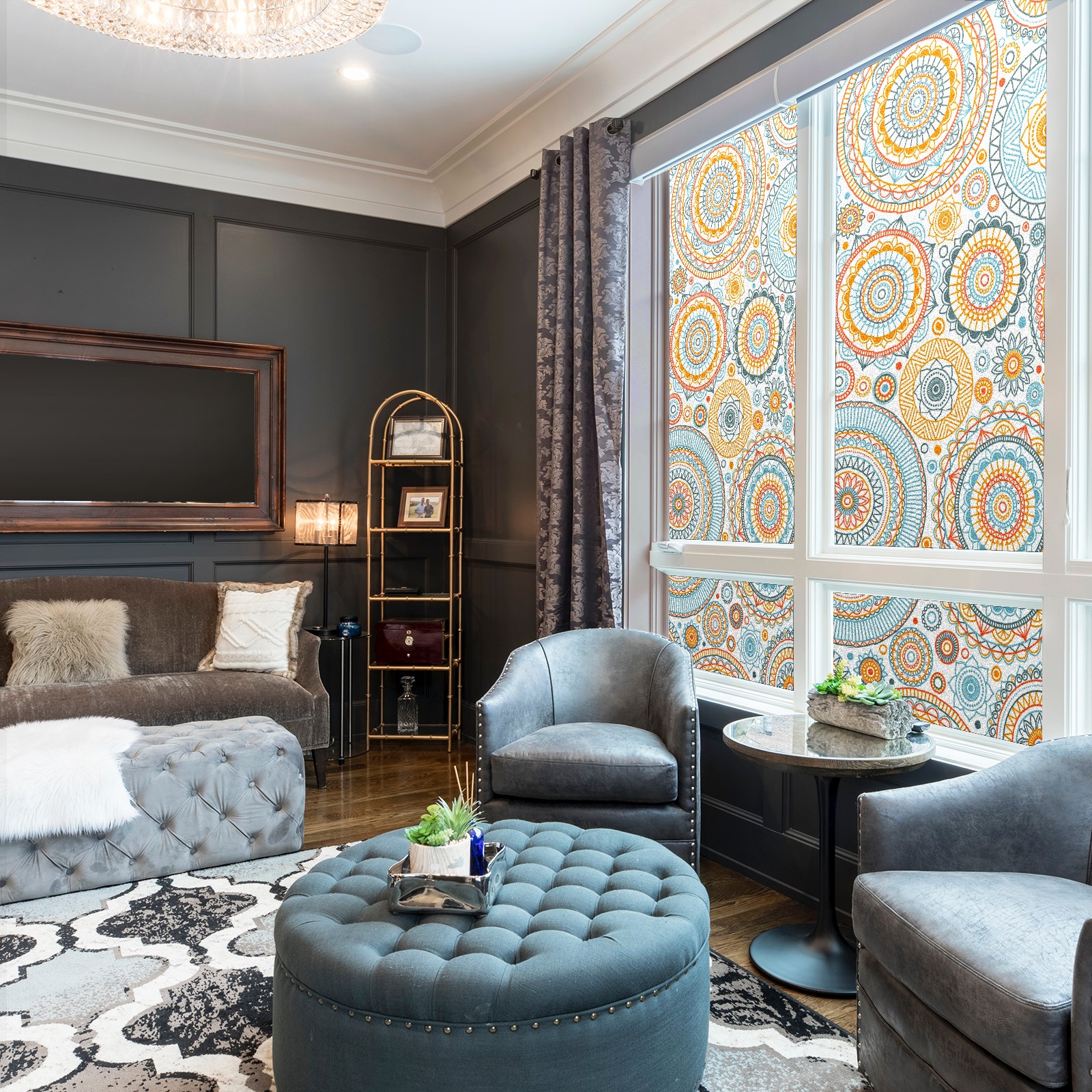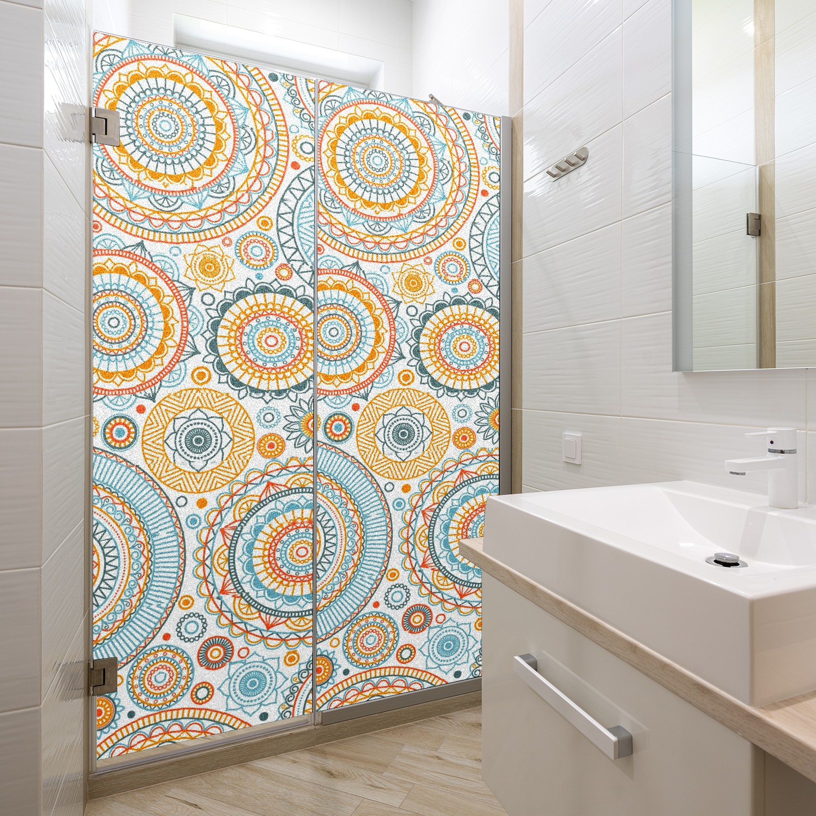 Static Cling Decorative Window Film Frosted Privacy Film Window Clings for Glass Windows No Glue Window Sticker for Bathroom Bedroom Office Blue And Red Mandala Flower