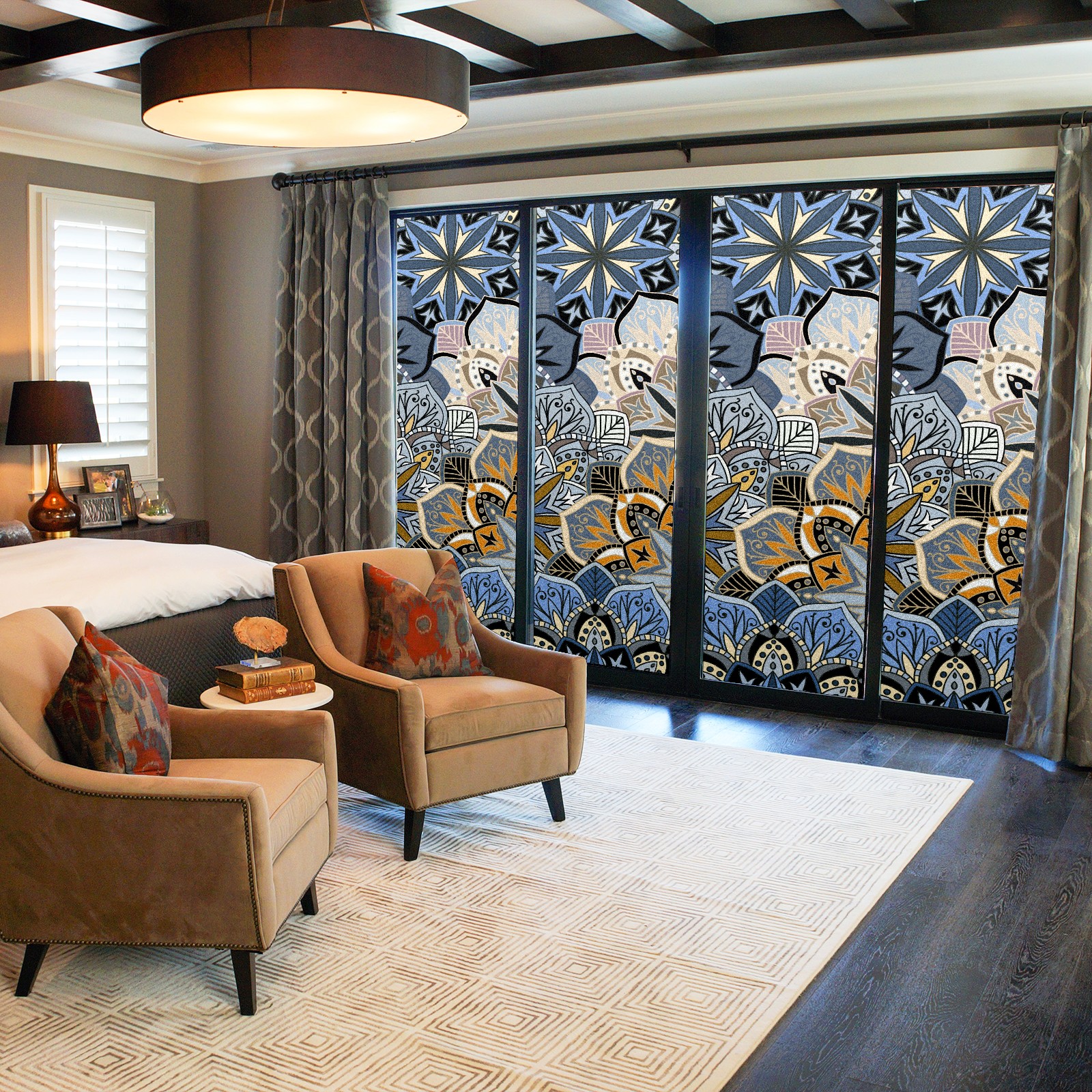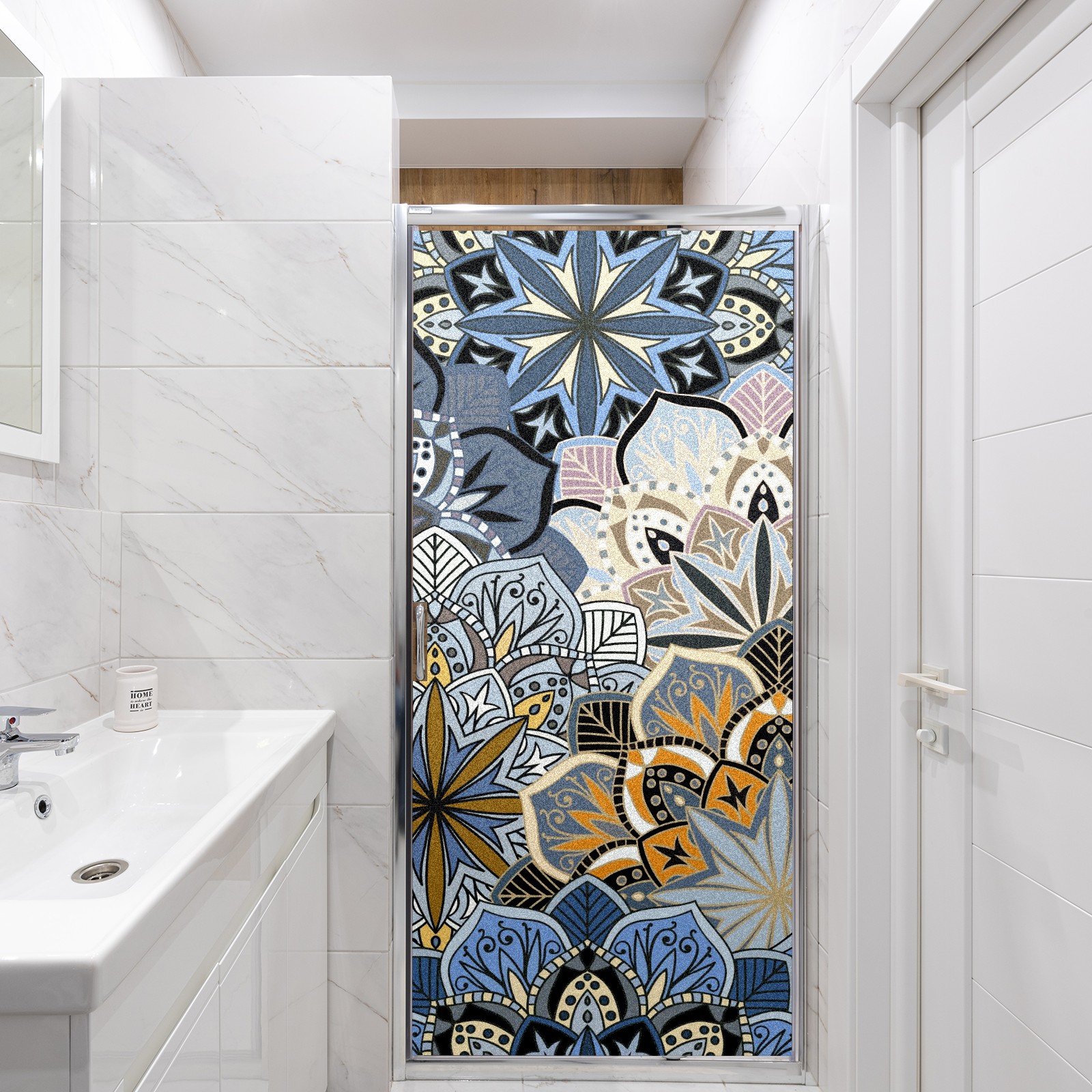 Static Cling Decorative Window Film Frosted Privacy Film Window Clings for Glass Windows No Glue Window Sticker for Bathroom Bedroom Office Abstract Mandala Flower