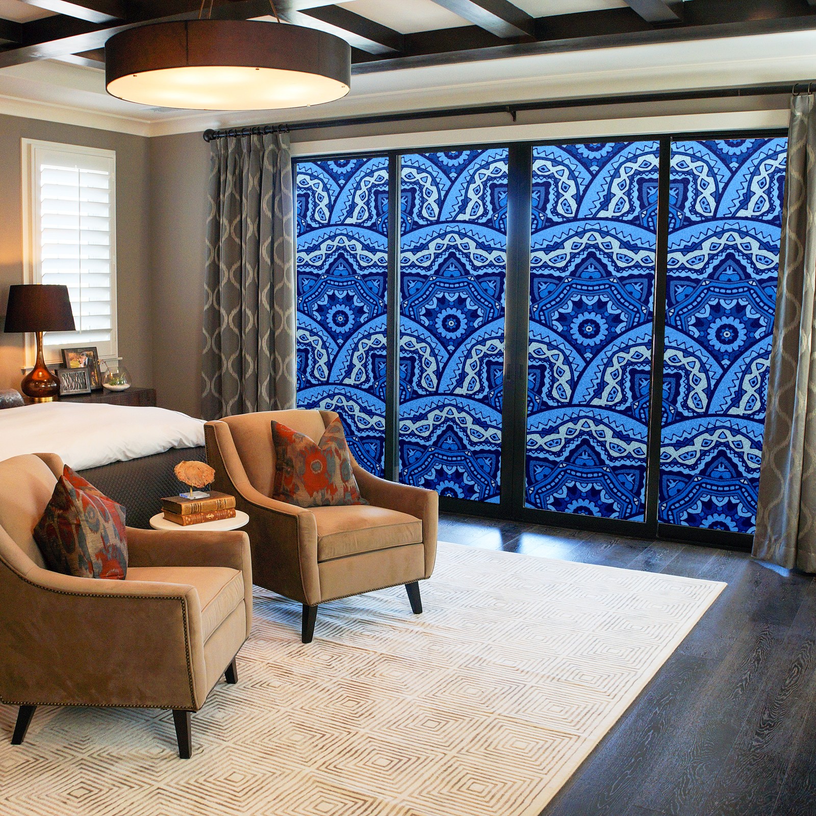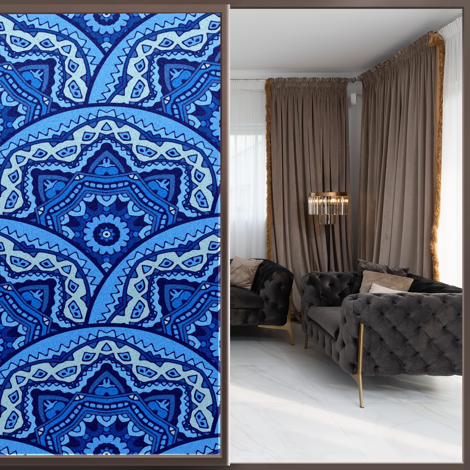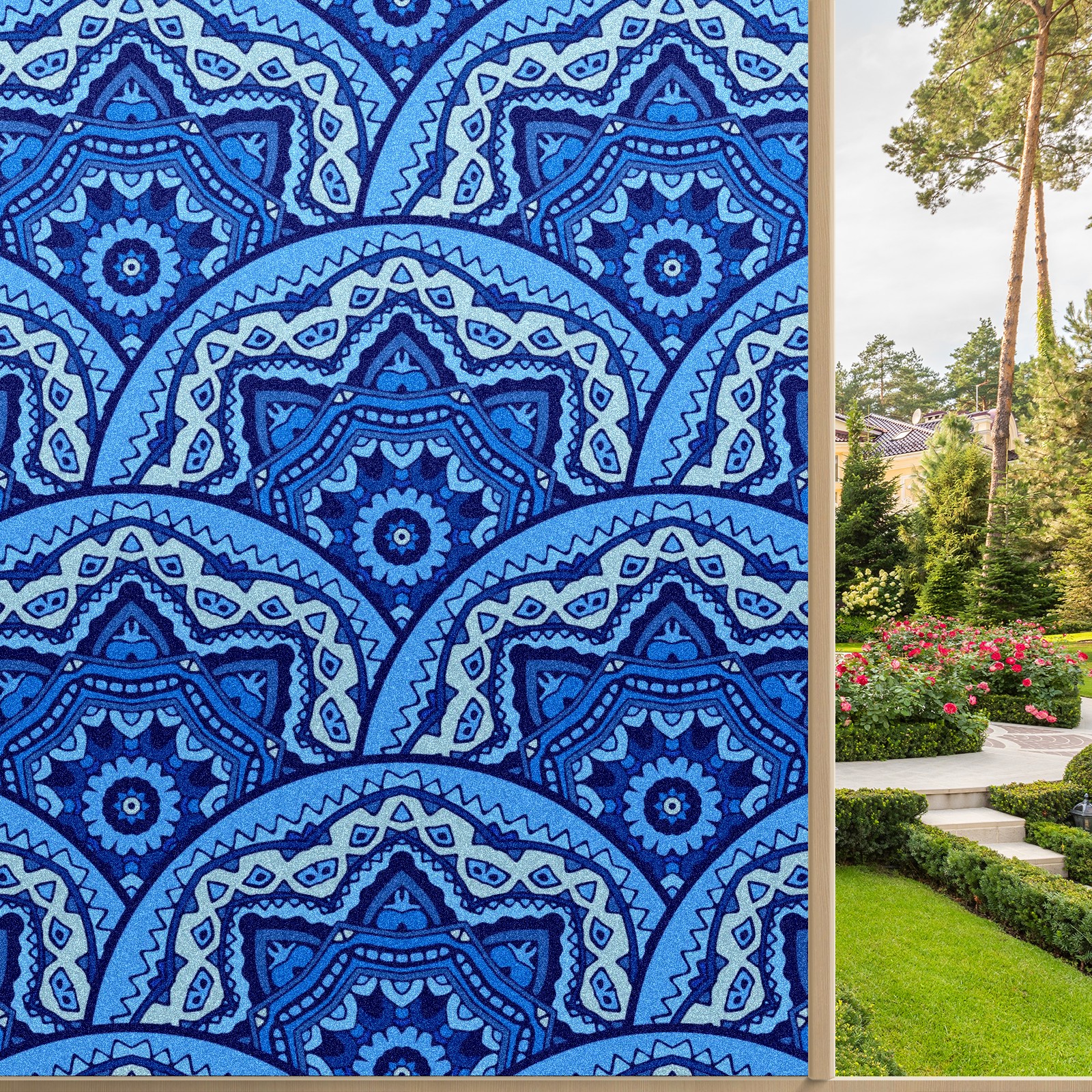 Static Cling Decorative Window Film Frosted Privacy Film Window Clings for Glass Windows No Glue Window Sticker for Bathroom Bedroom Office Abstract Blue Mandala Geometric Print