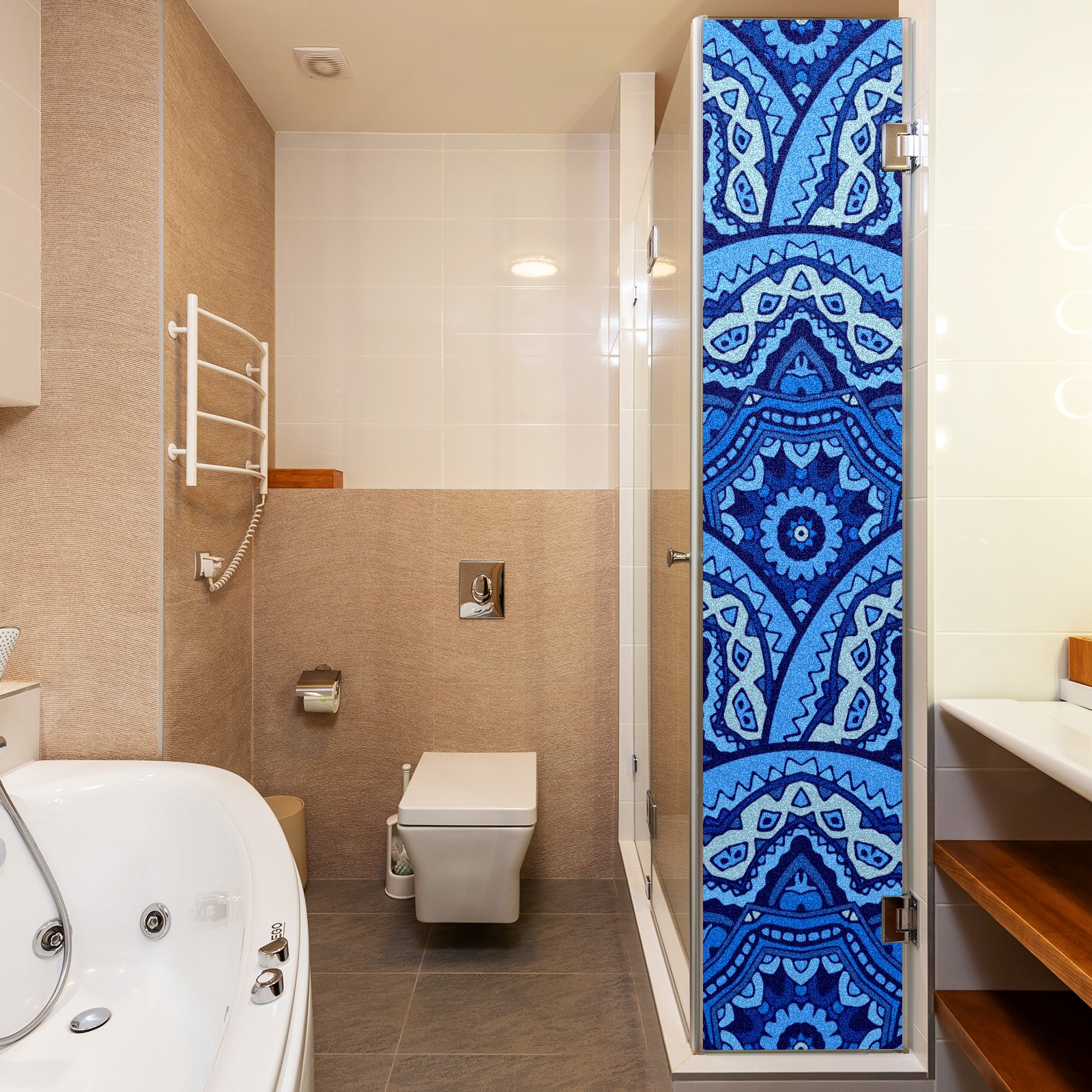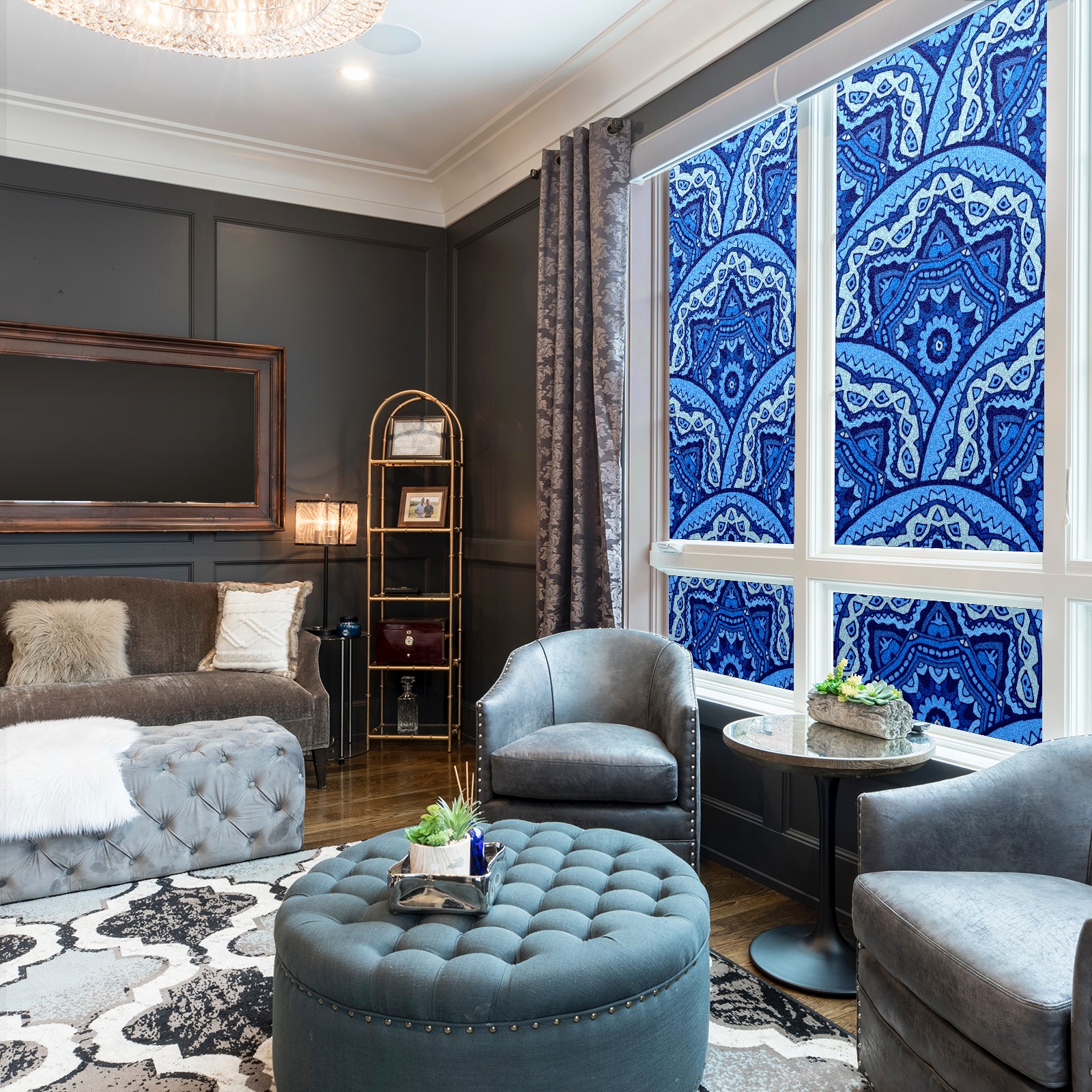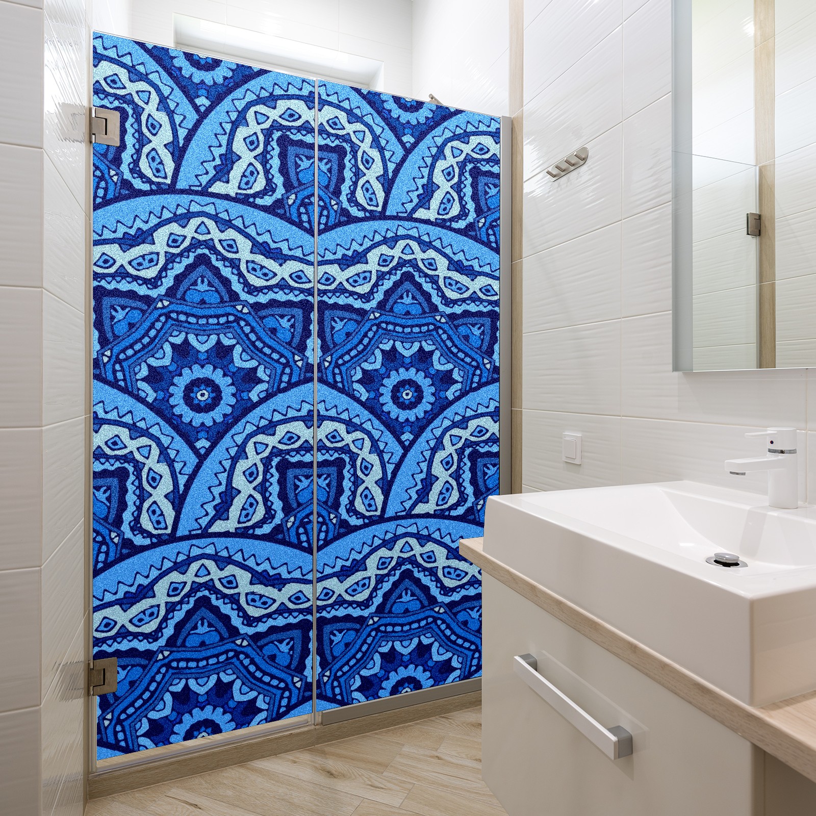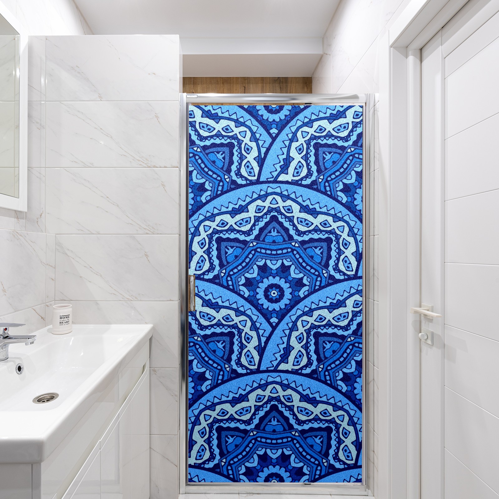 Static Cling Decorative Window Film Frosted Privacy Film Window Clings for Glass Windows No Glue Window Sticker for Bathroom Bedroom Office Abstract Blue Mandala Geometric Print