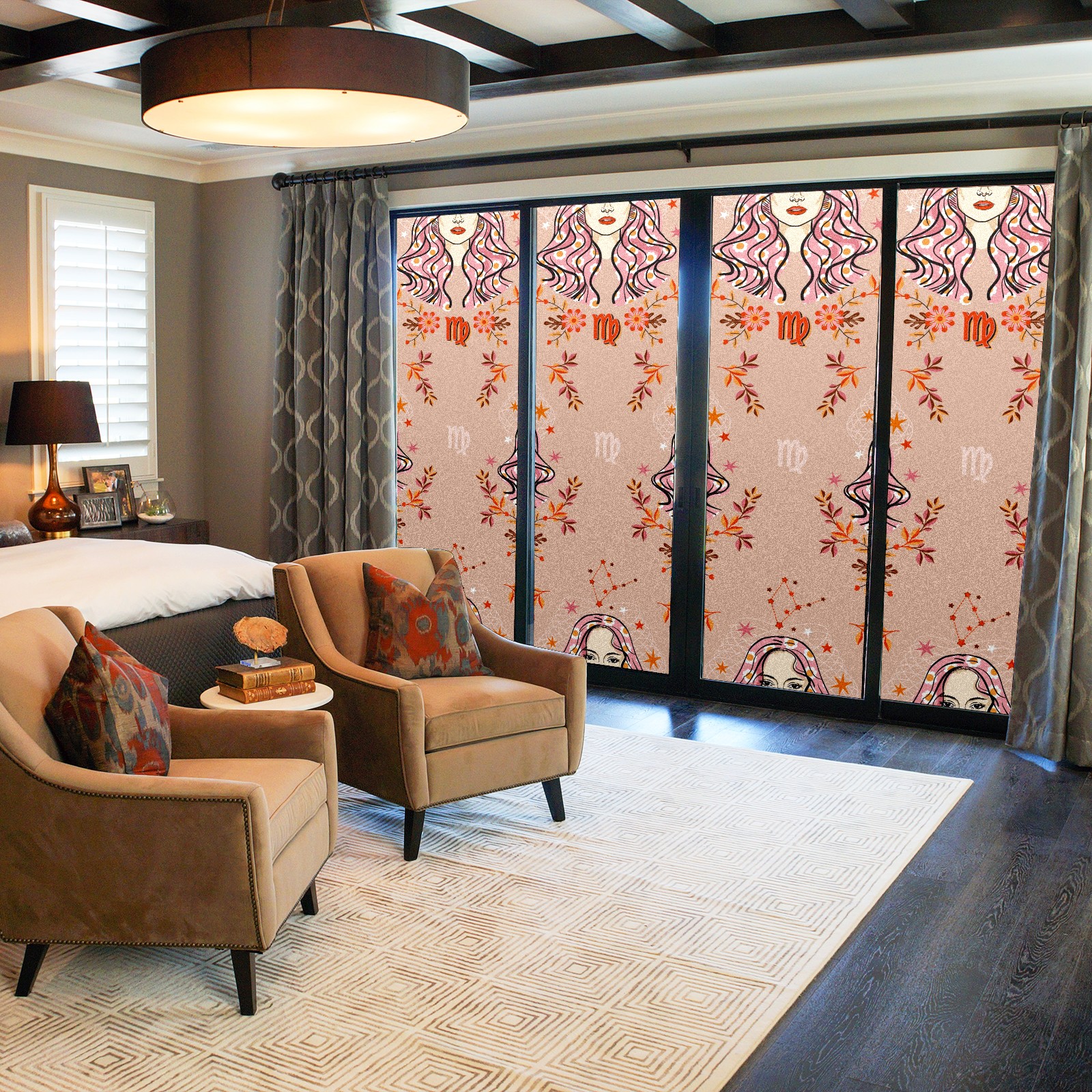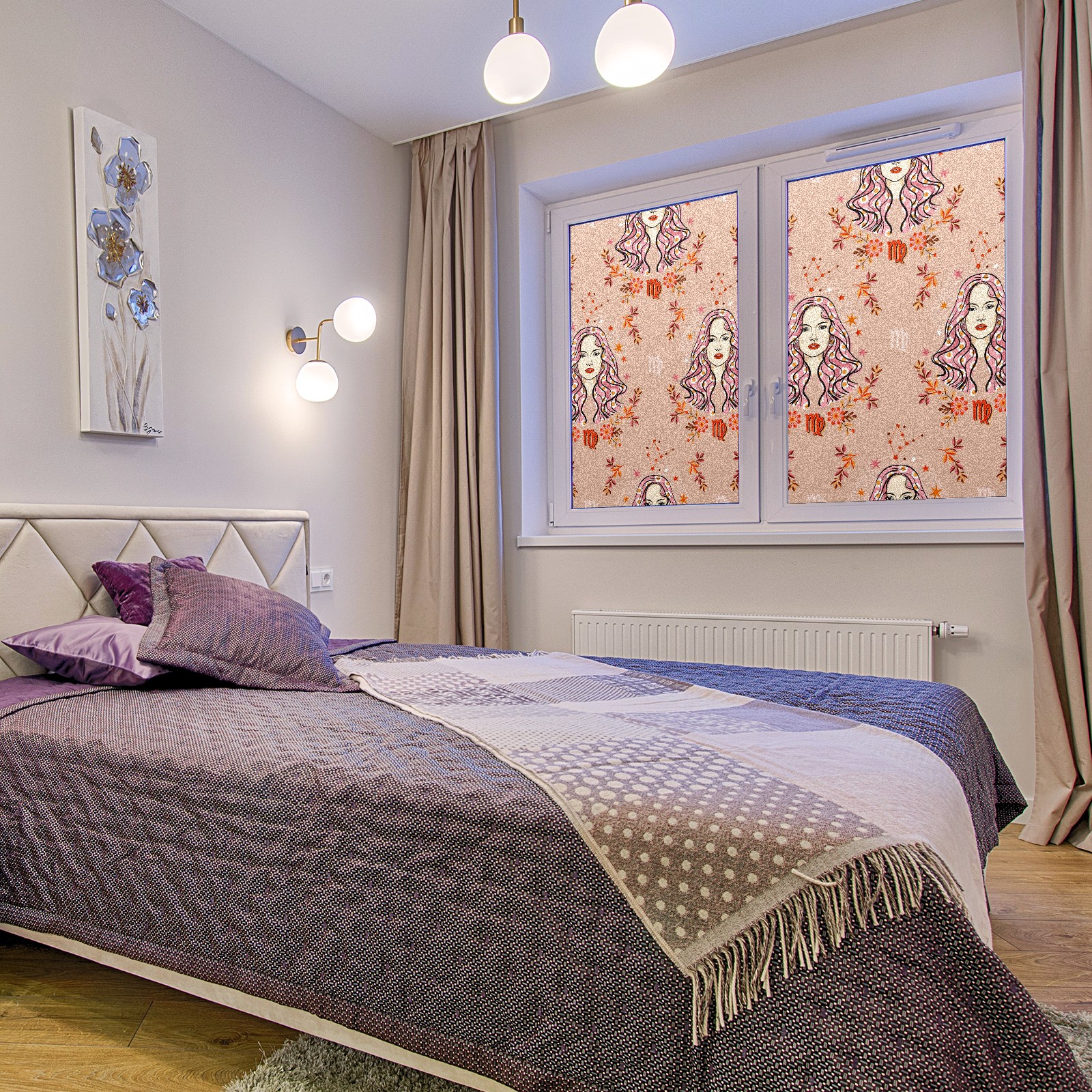 Static Cling Decorative Window Film Frosted Privacy Film Window Clings for Glass Windows No Glue Window Sticker for Bathroom Bedroom Office VIRGO Zodiac Star
