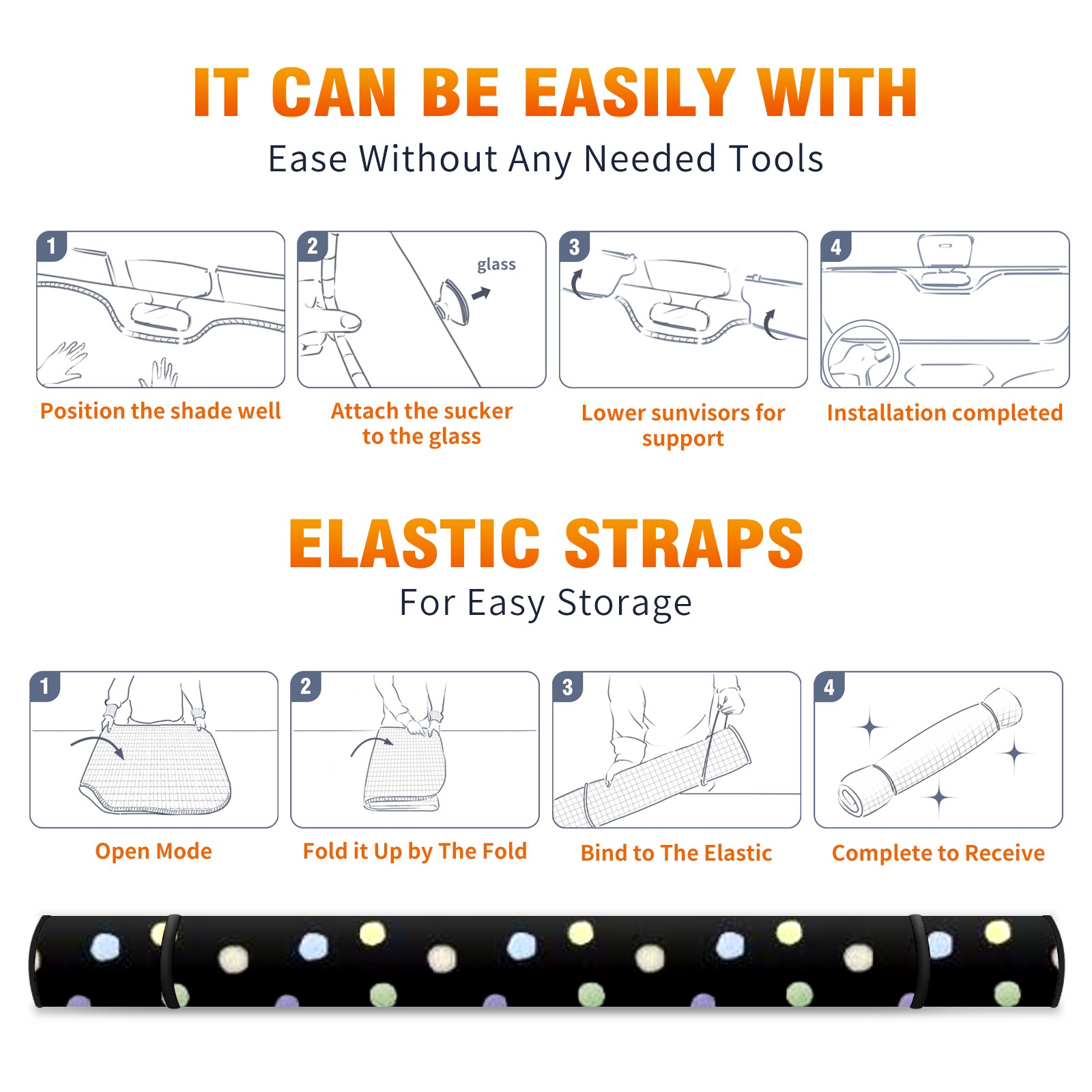 Car Windshield Sun Shade for Front Window Wave Point Foldable Vehicle Windshield Car Sun Visor Covers Automotive Window Protector Car Camping Privacy Sun Blocker