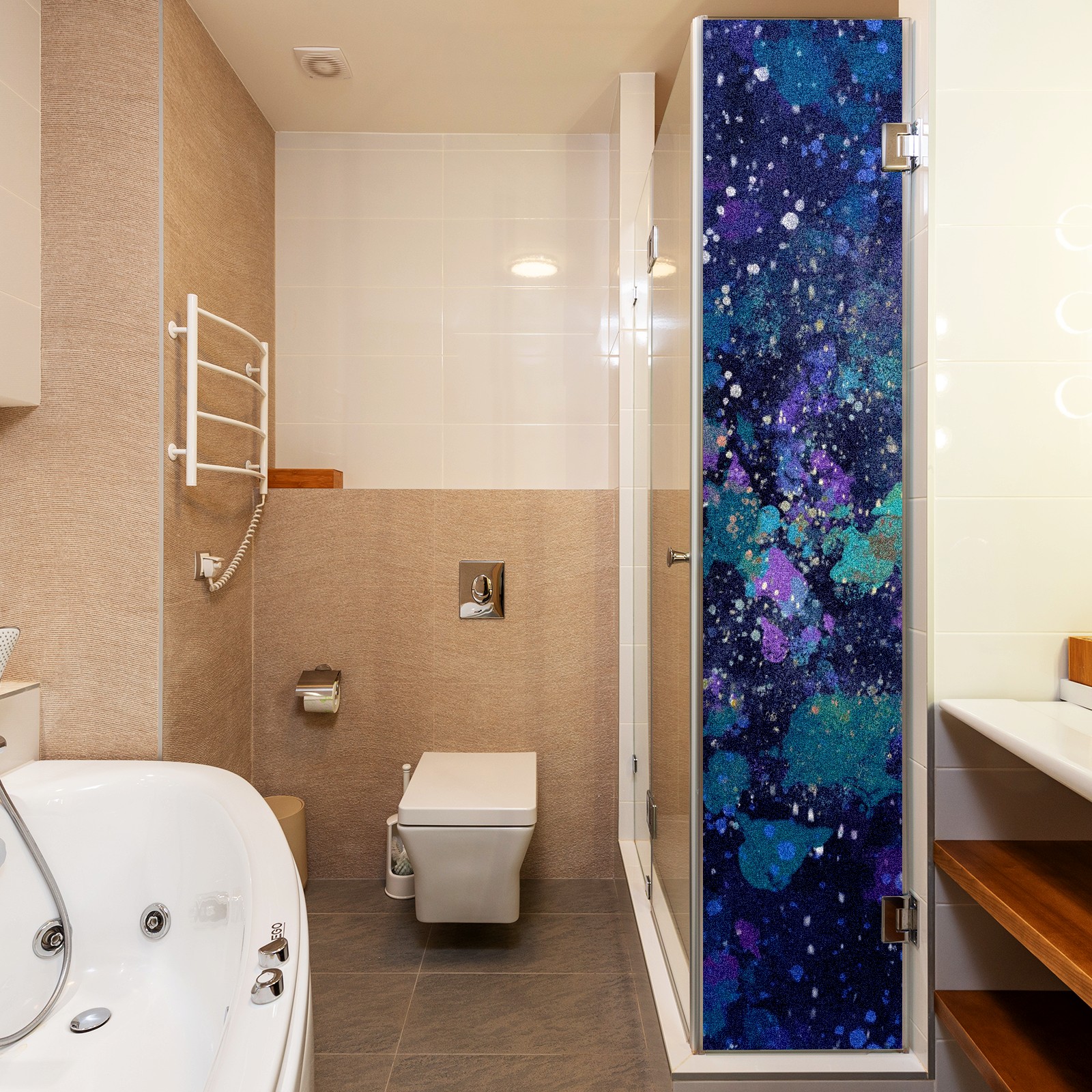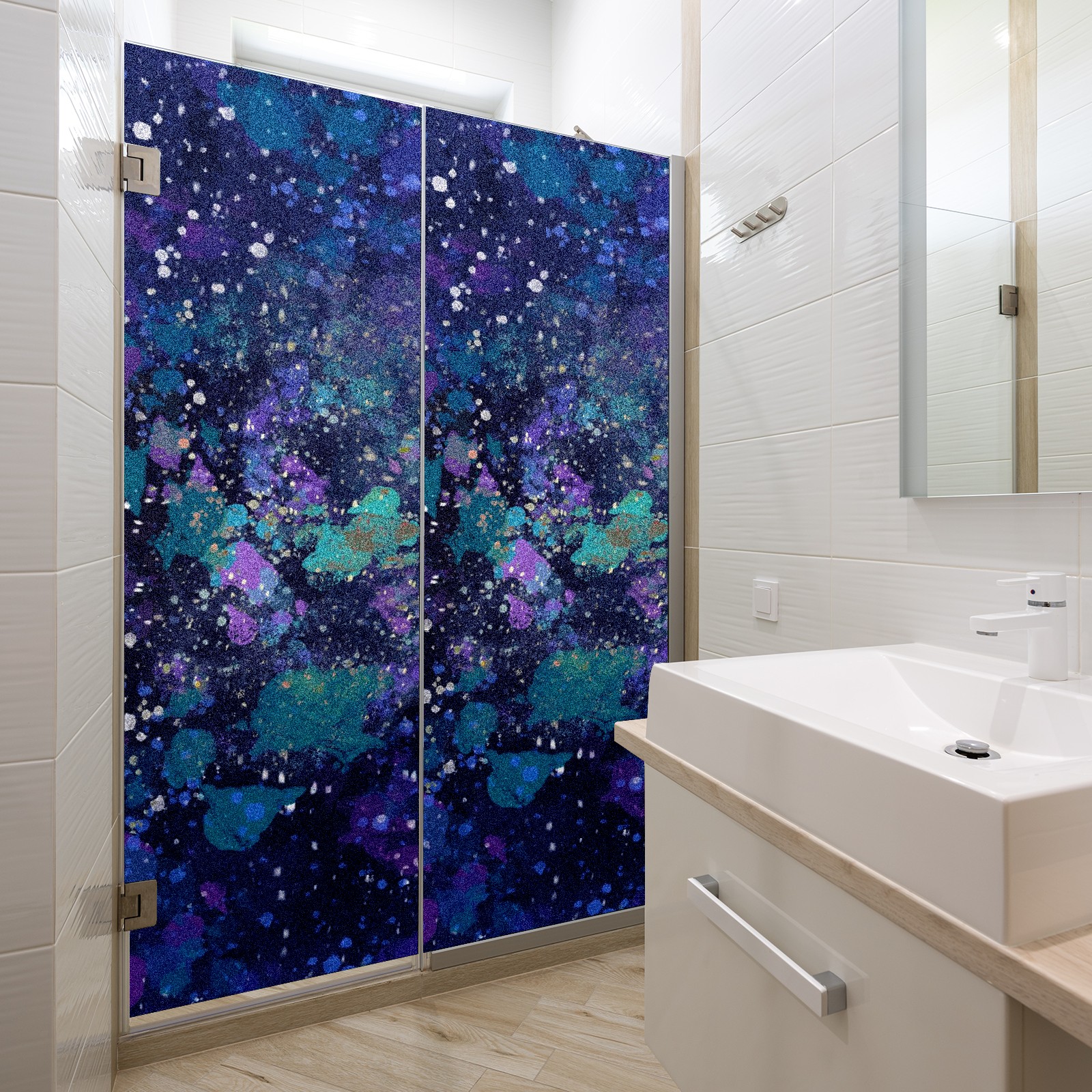 Static Cling Decorative Window Film Frosted Privacy Film Window Clings for Glass Windows No Glue Window Sticker for Bathroom Bedroom Office Trendy Dark Blue Pattern