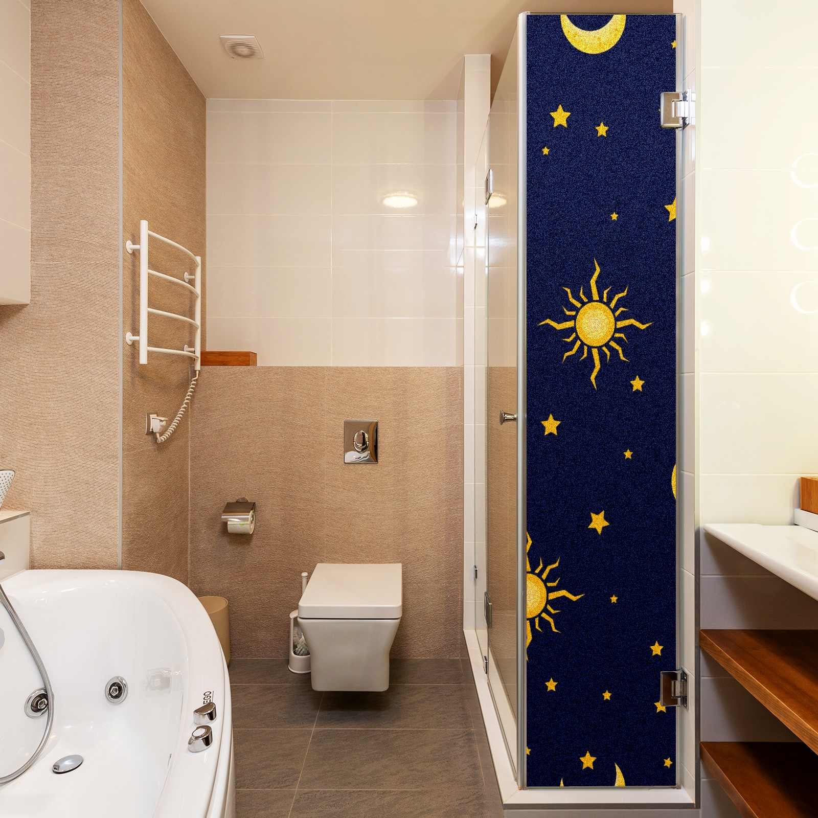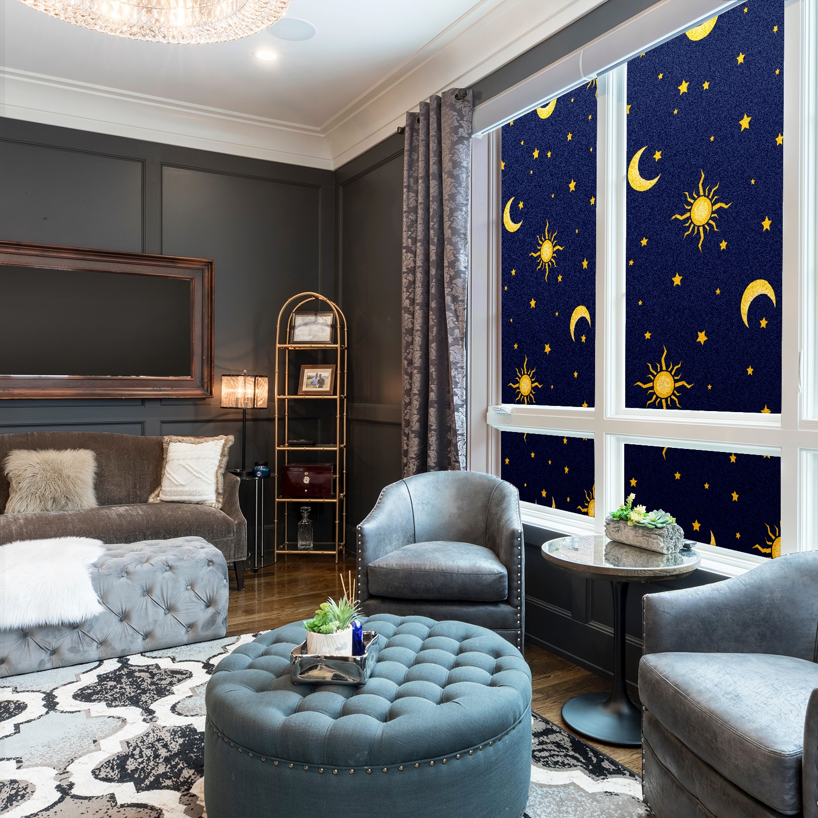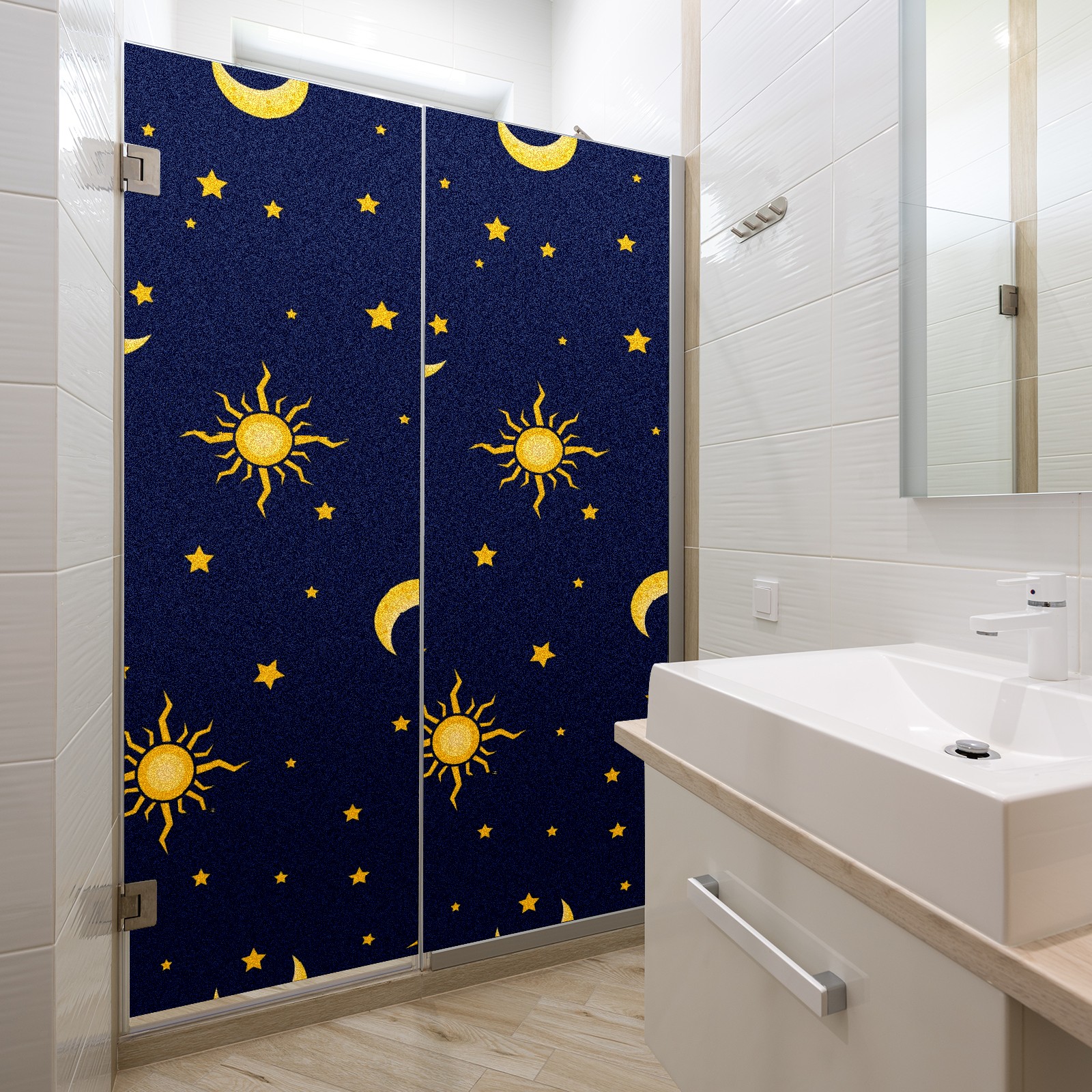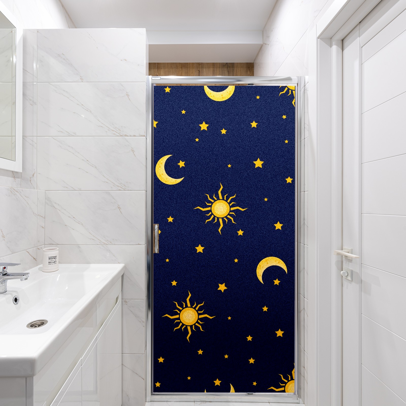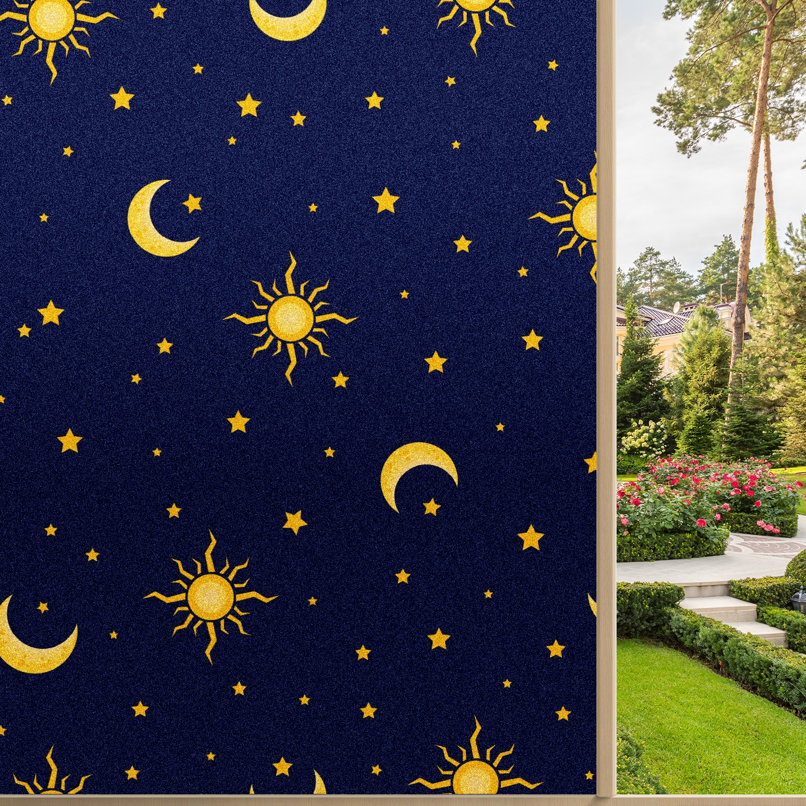 Static Cling Decorative Window Film Frosted Privacy Film Window Clings for Glass Windows No Glue Window Sticker for Bathroom Bedroom Office Sun Moon Star On Blue Background
