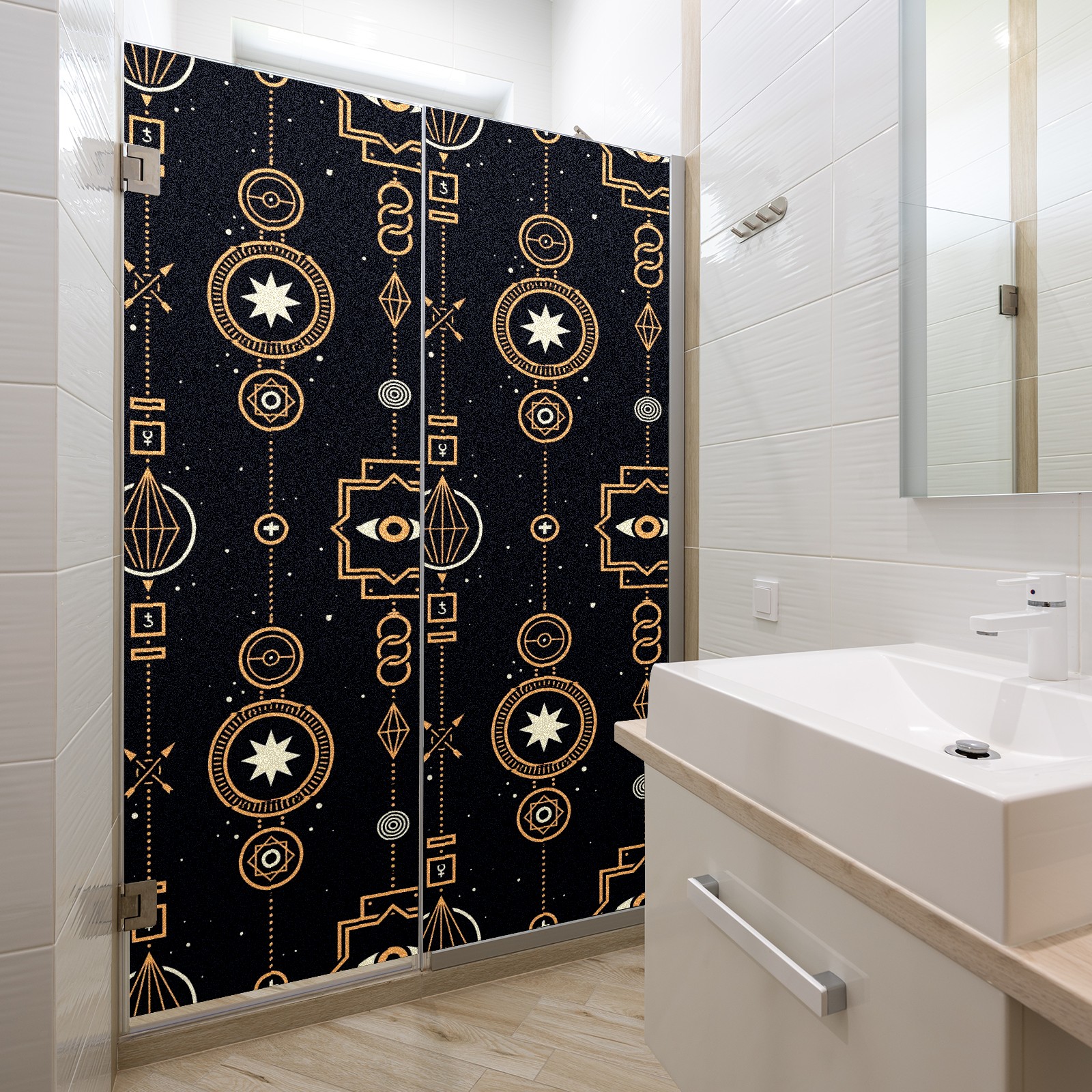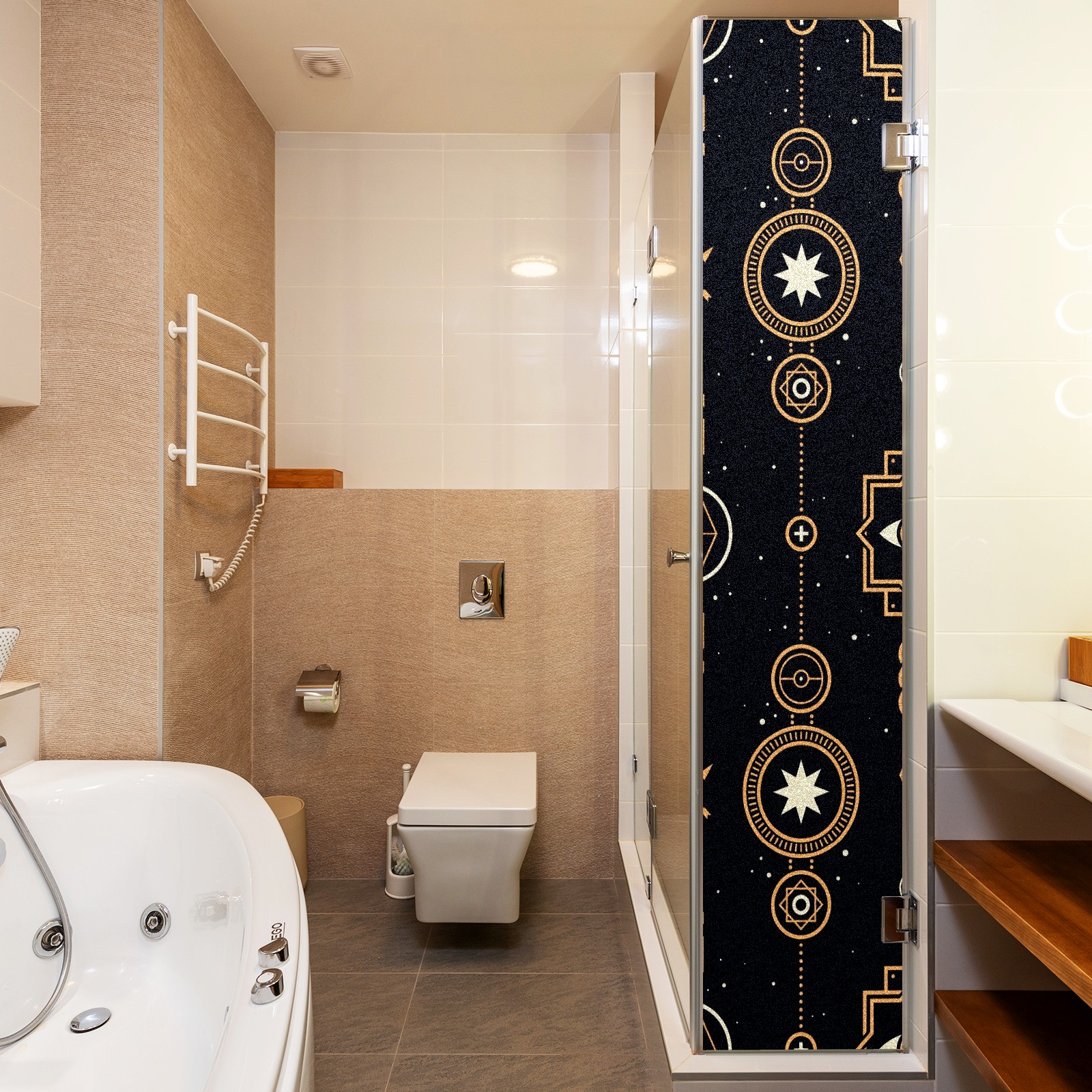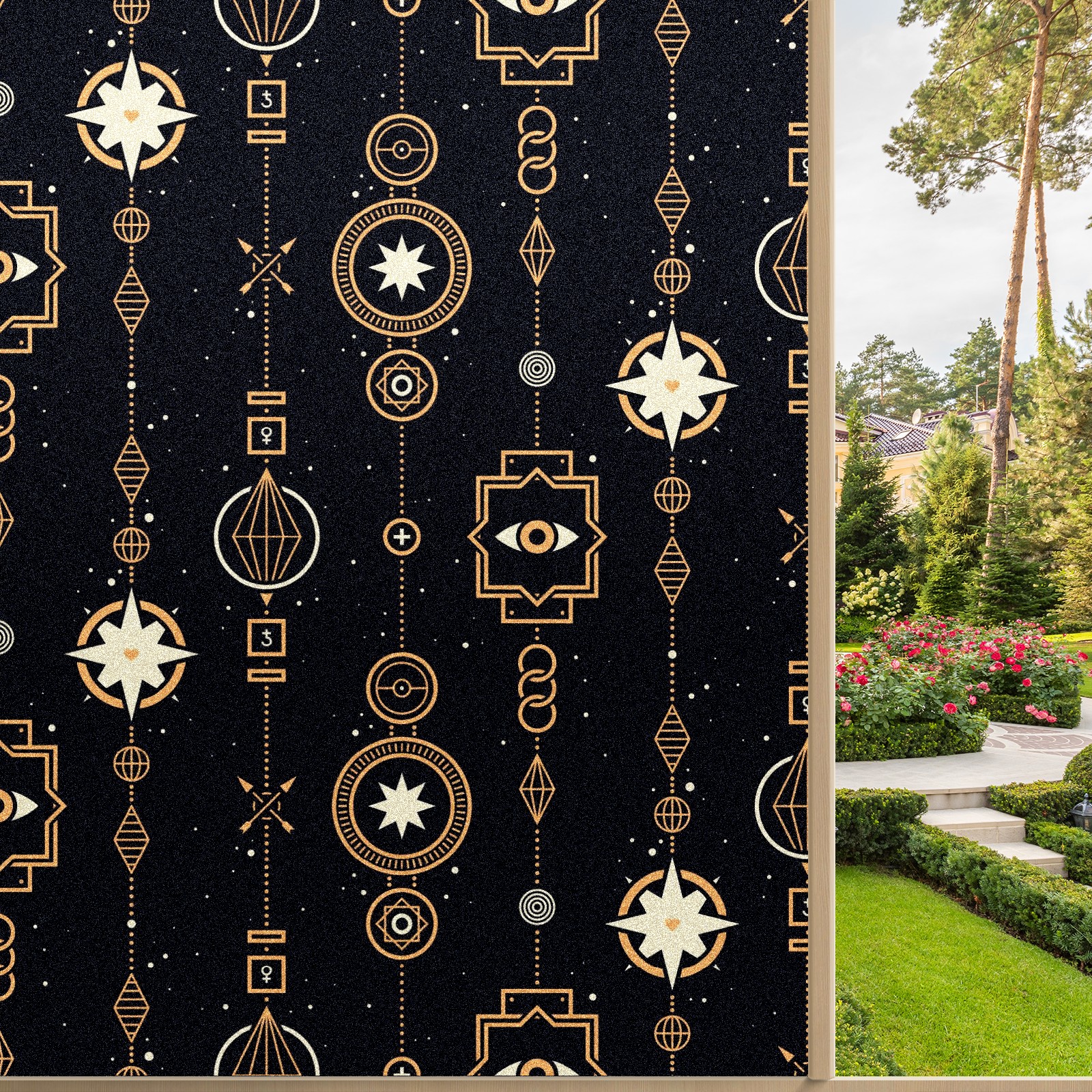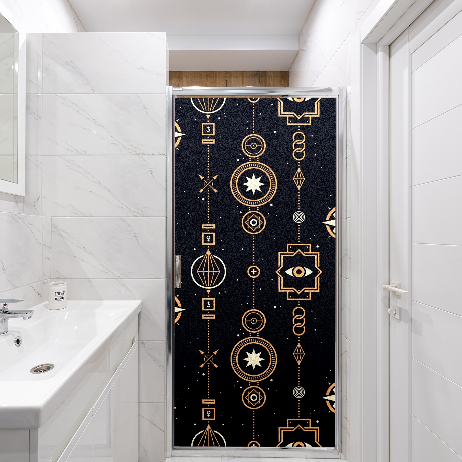 Static Cling Decorative Window Film Frosted Privacy Film Window Clings for Glass Windows No Glue Window Sticker for Bathroom Bedroom Office Stars And Magic Golden Wreath
