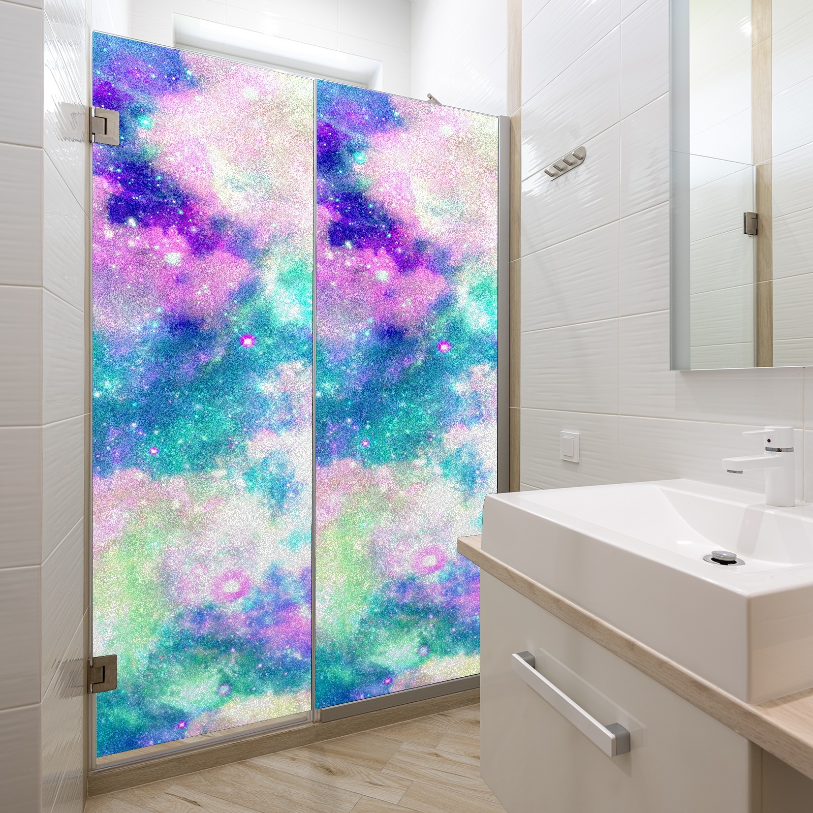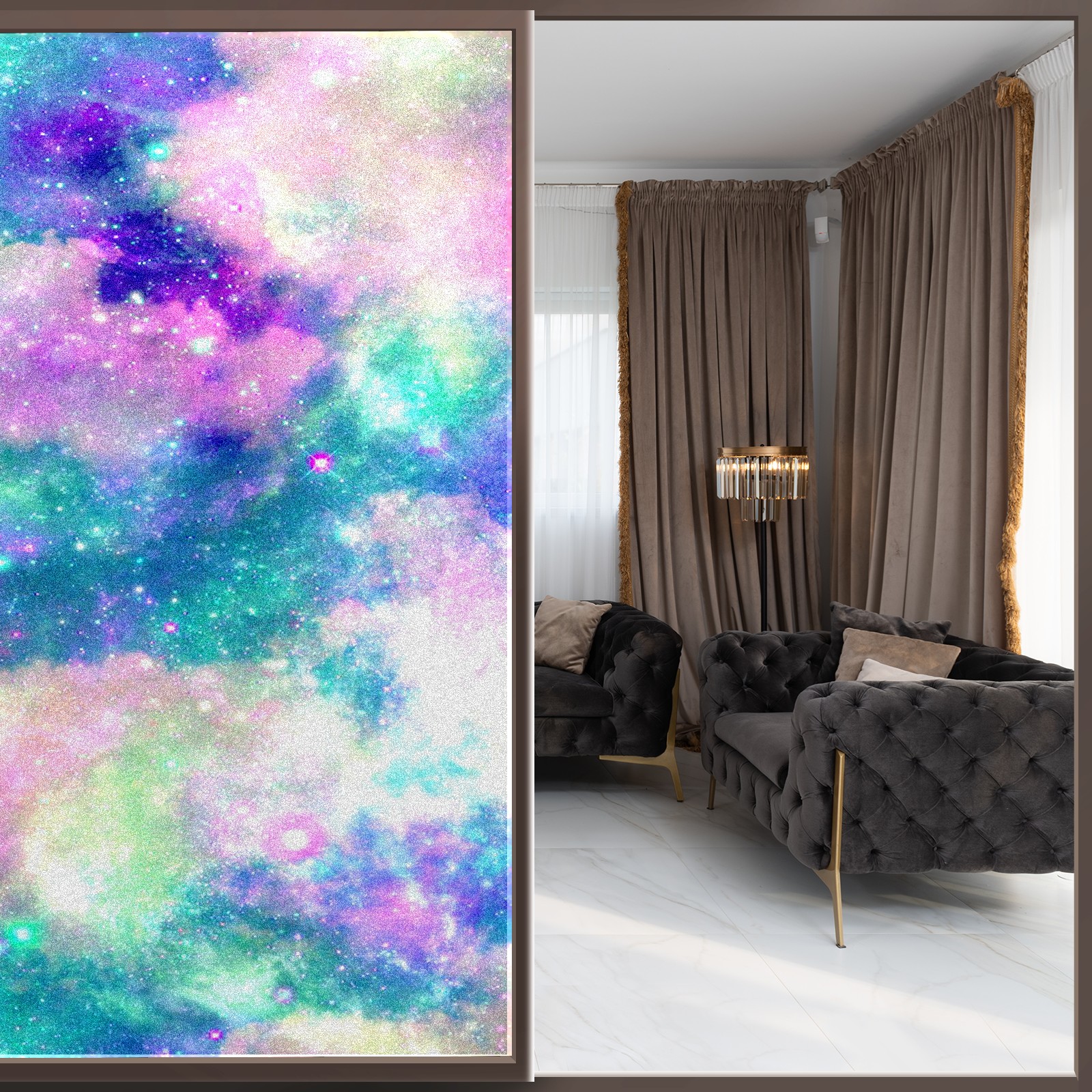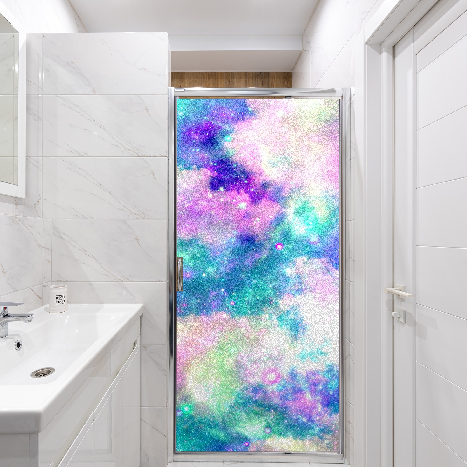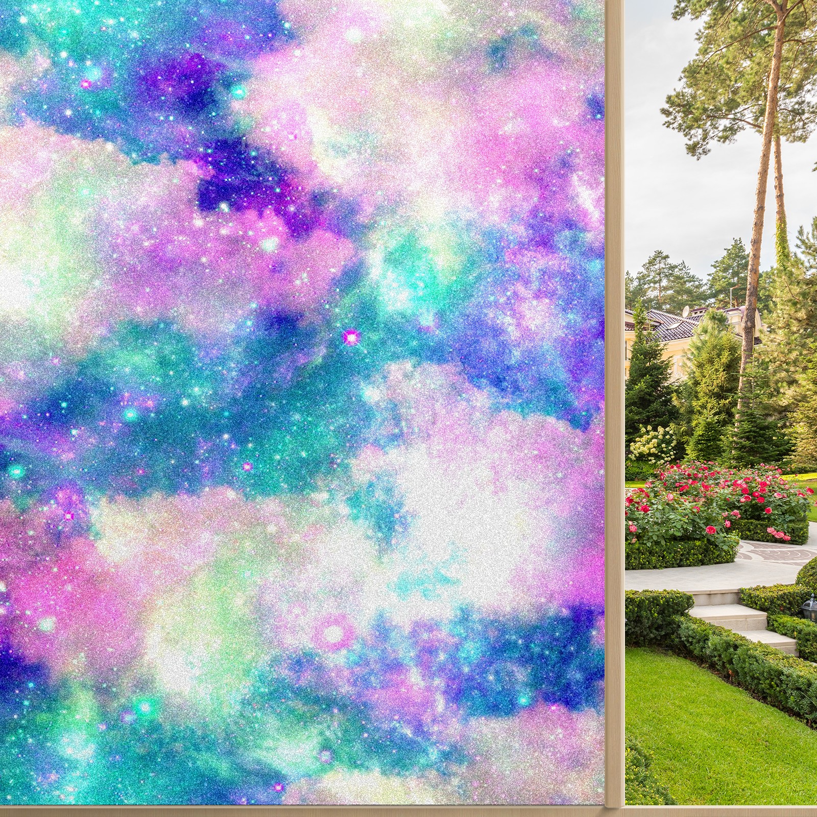 Static Cling Decorative Window Film Frosted Privacy Film Window Clings for Glass Windows No Glue Window Sticker for Bathroom Bedroom Office Rainbow Nebula Cloud Galaxy