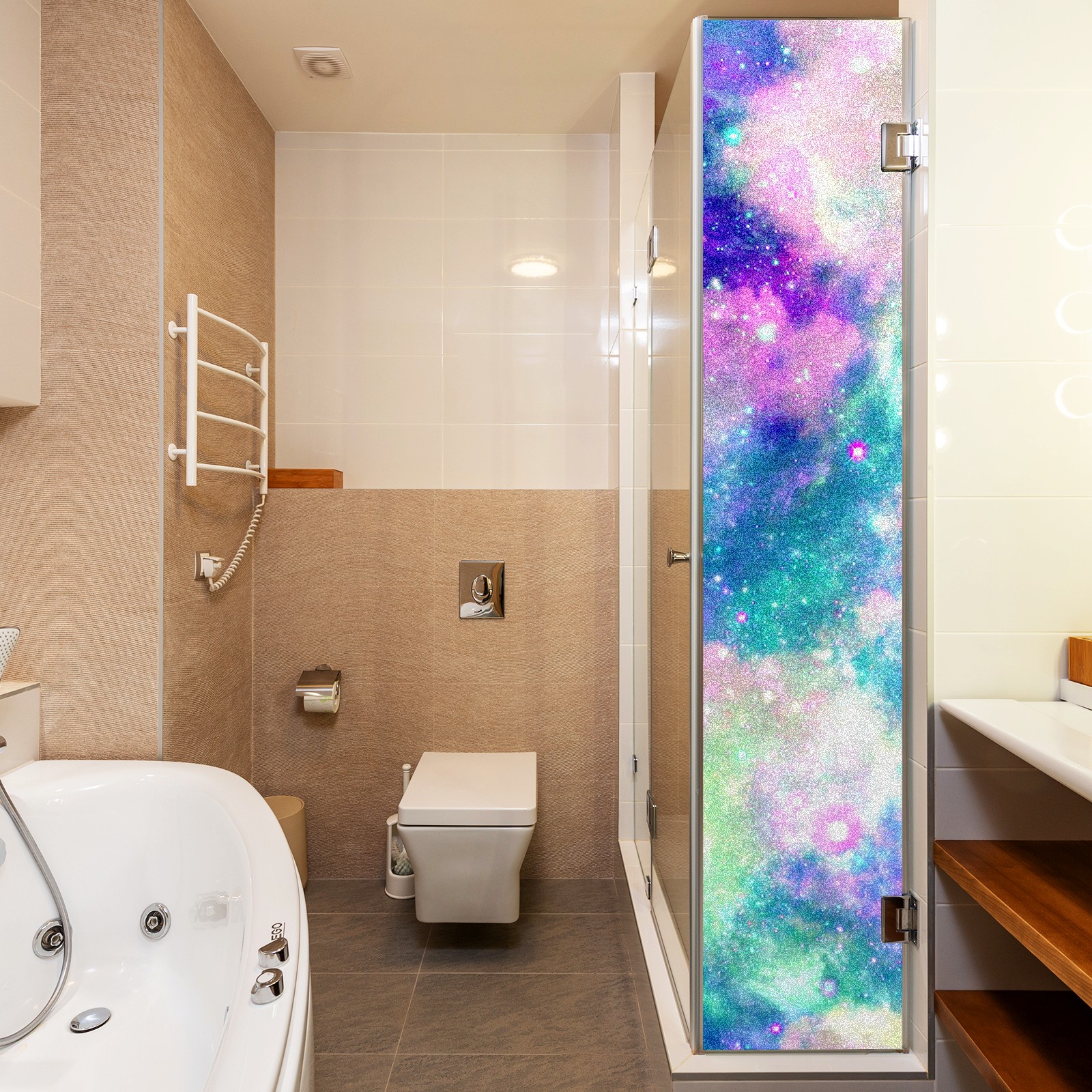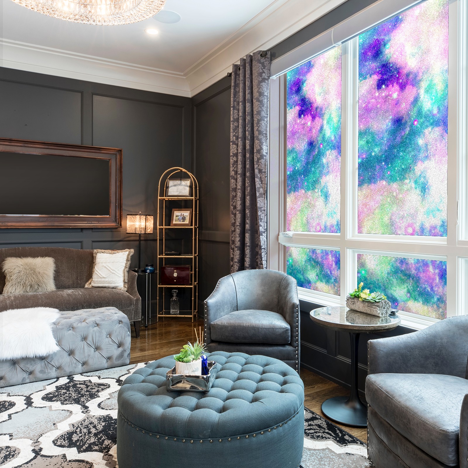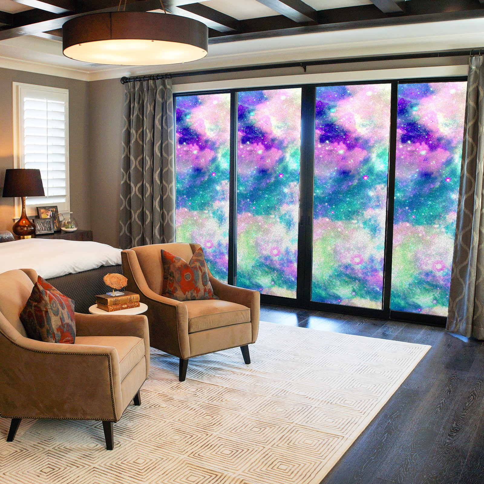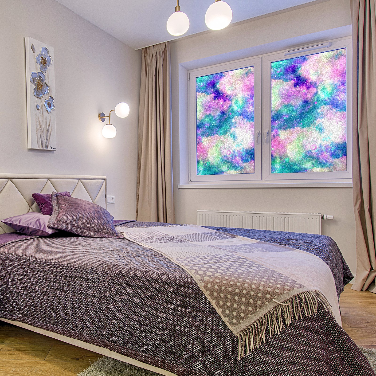 Static Cling Decorative Window Film Frosted Privacy Film Window Clings for Glass Windows No Glue Window Sticker for Bathroom Bedroom Office Rainbow Nebula Cloud Galaxy
