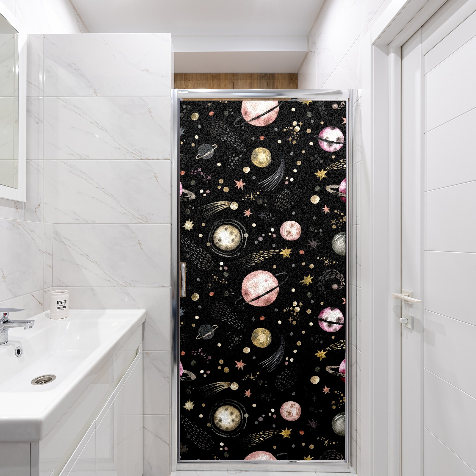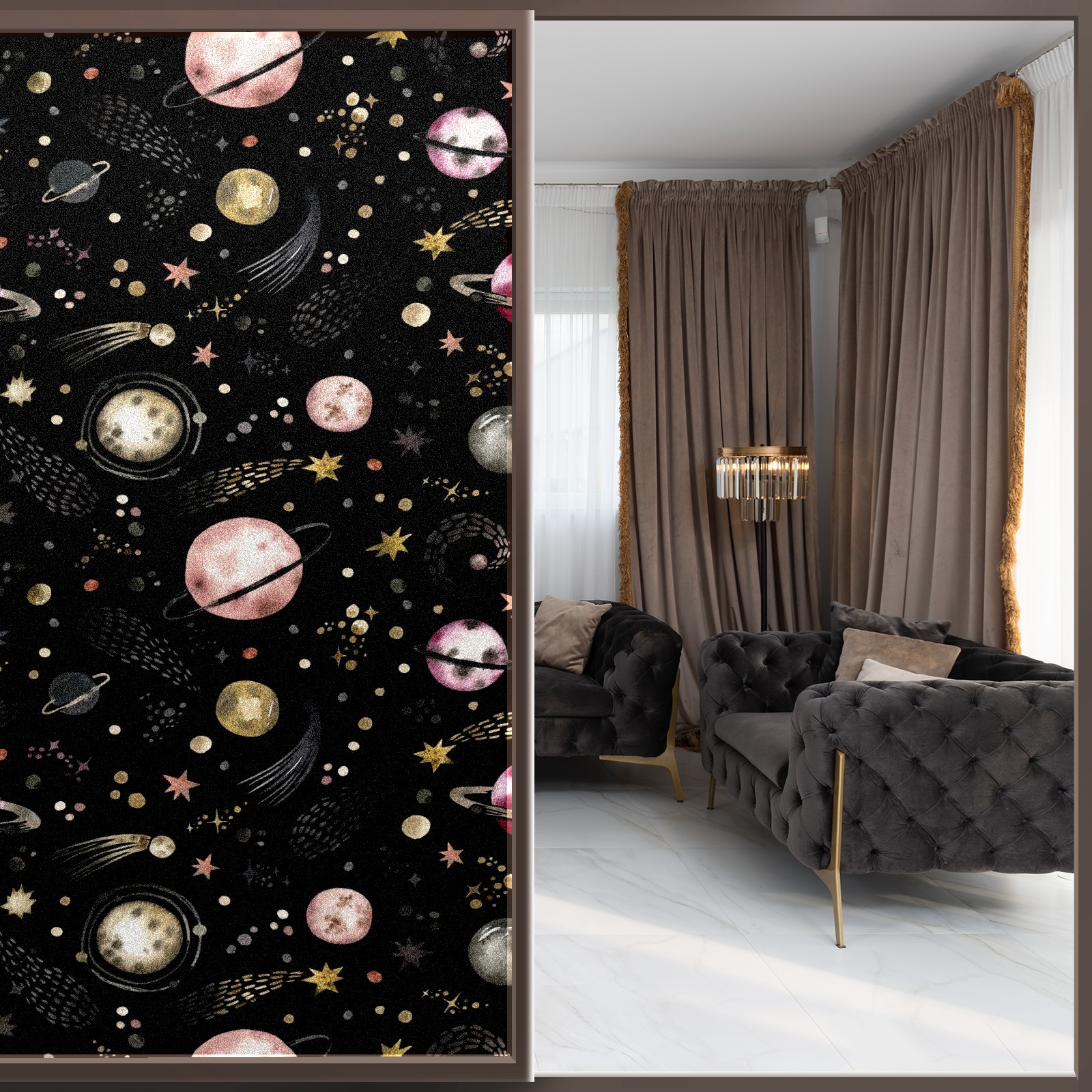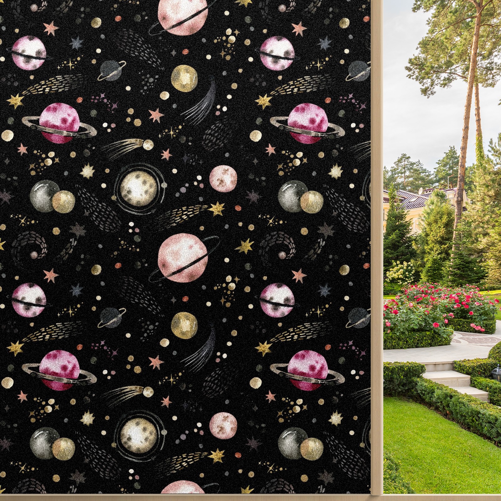 Static Cling Decorative Window Film Frosted Privacy Film Window Clings for Glass Windows No Glue Window Sticker for Bathroom Bedroom Office Planets Stars Starry Sky