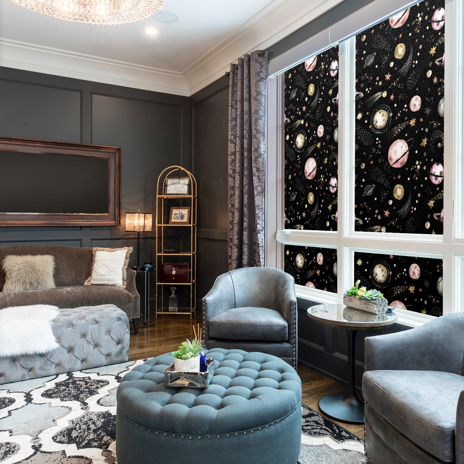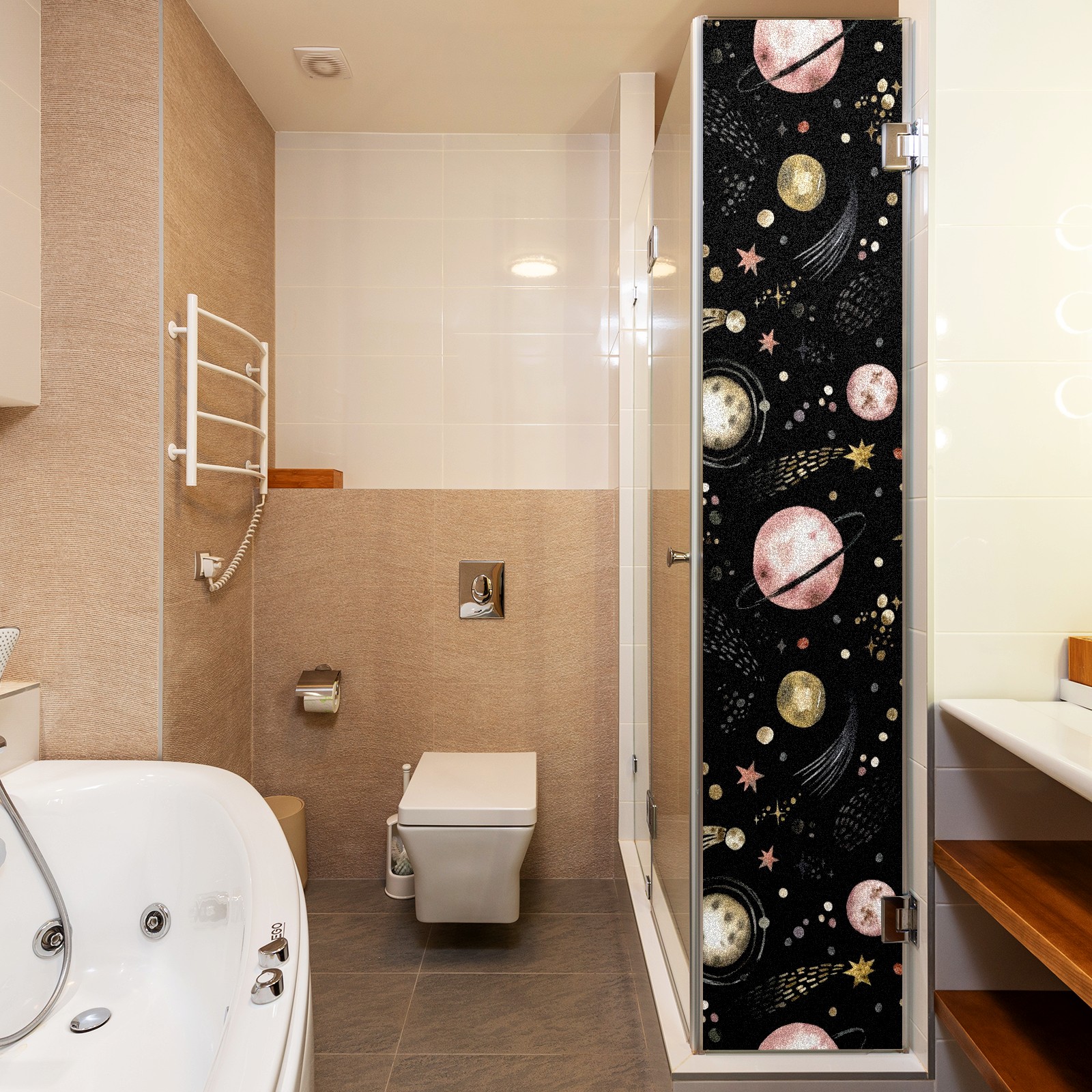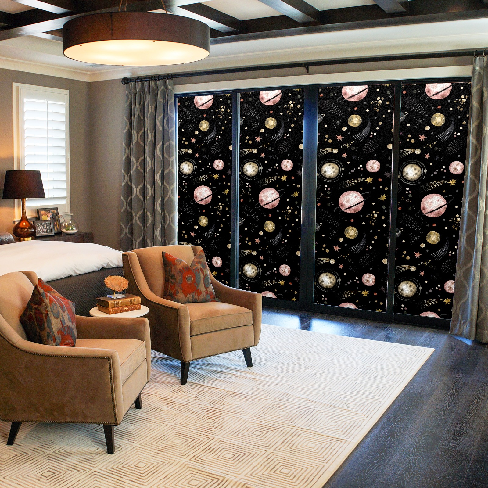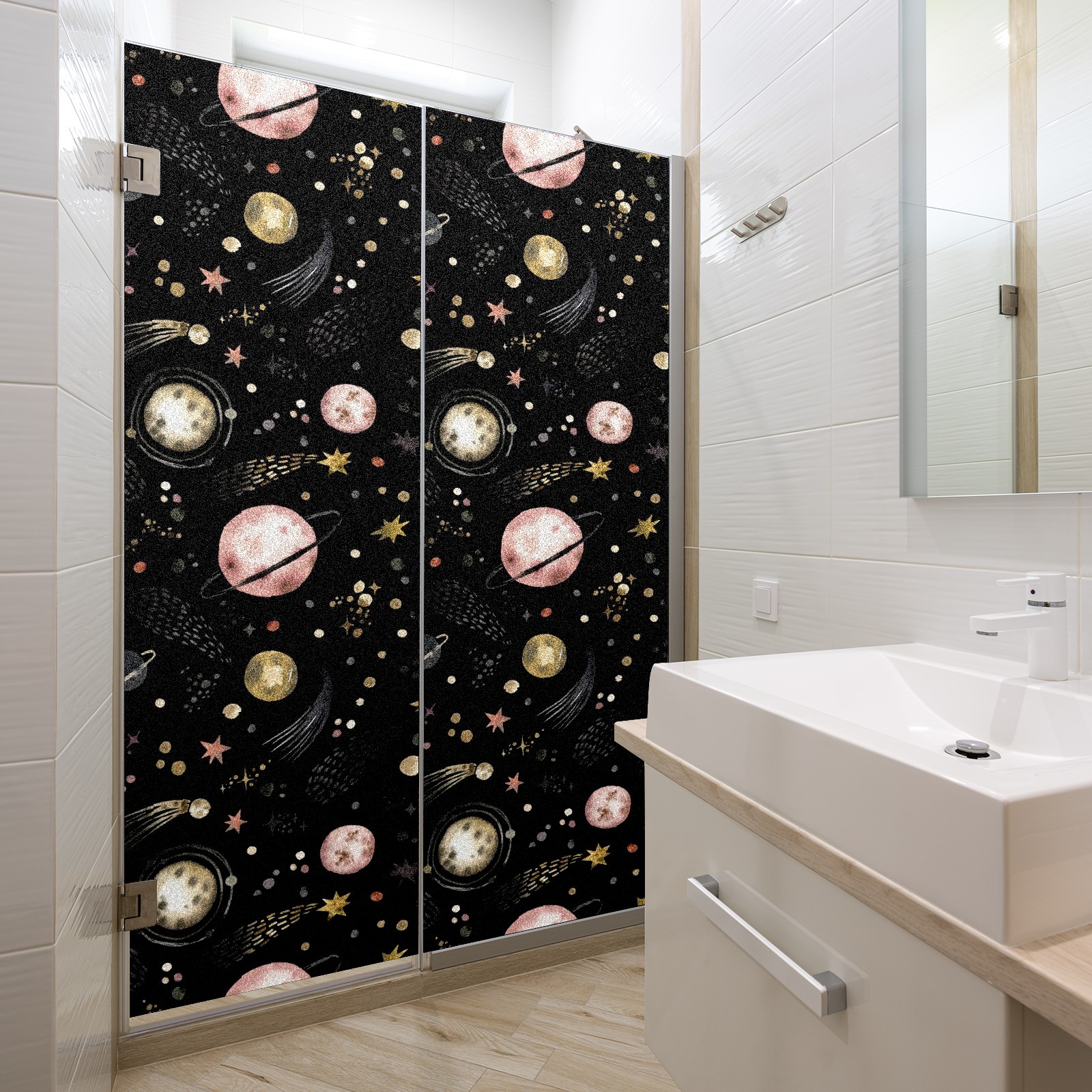 Static Cling Decorative Window Film Frosted Privacy Film Window Clings for Glass Windows No Glue Window Sticker for Bathroom Bedroom Office Planets Stars Starry Sky