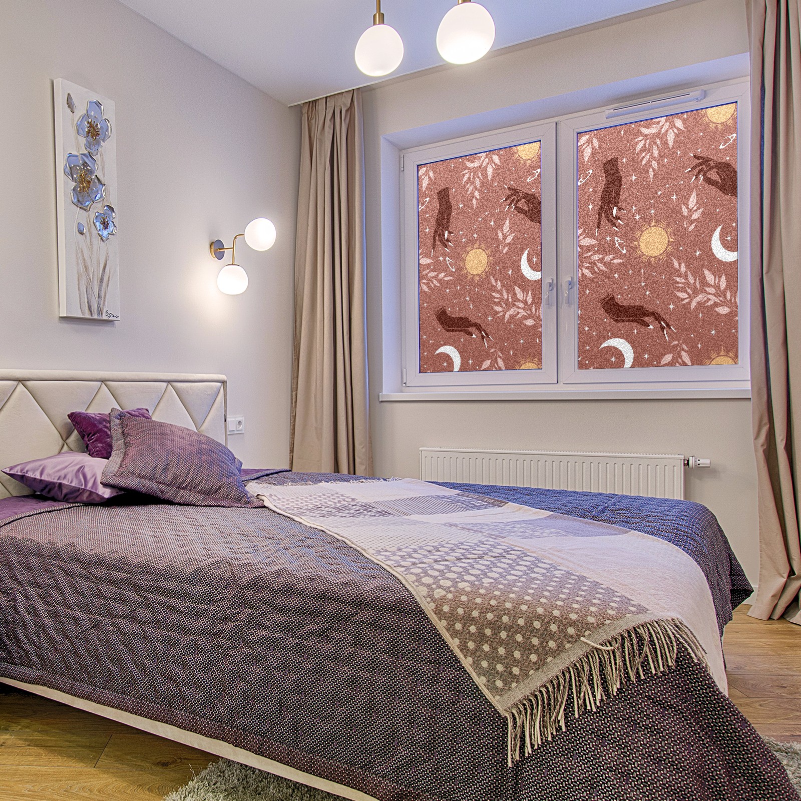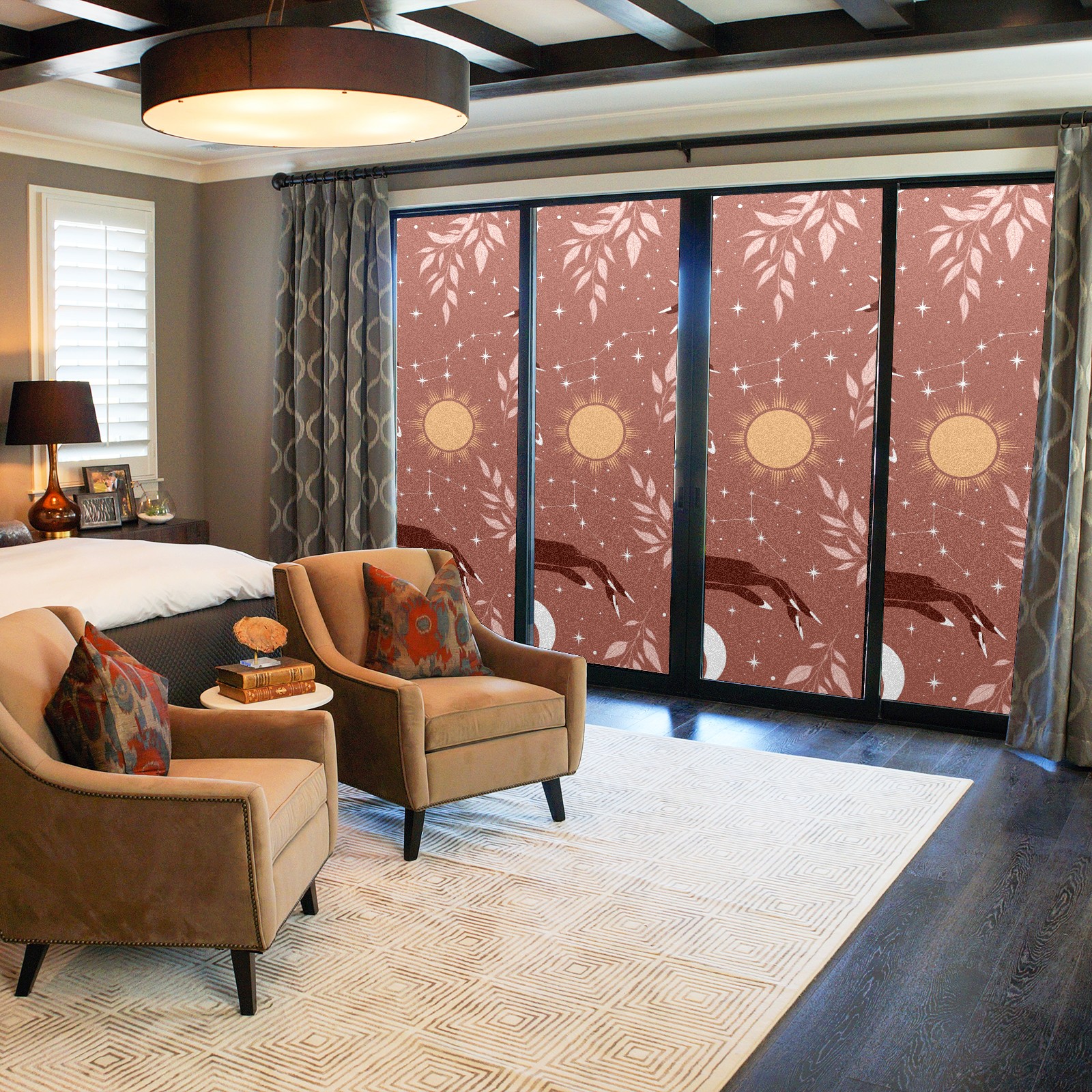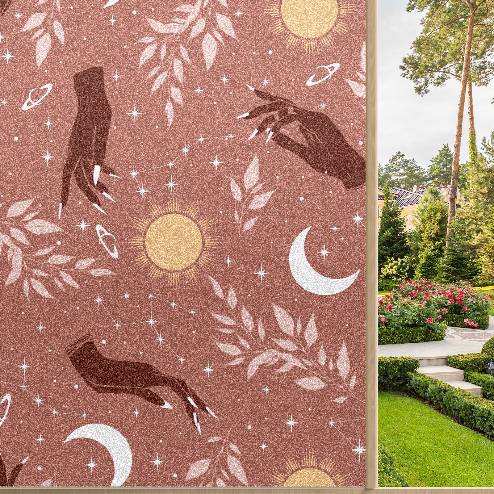 Static Cling Decorative Window Film Frosted Privacy Film Window Clings for Glass Windows No Glue Window Sticker for Bathroom Bedroom Office Magical Sun Crescent Stars Astrology