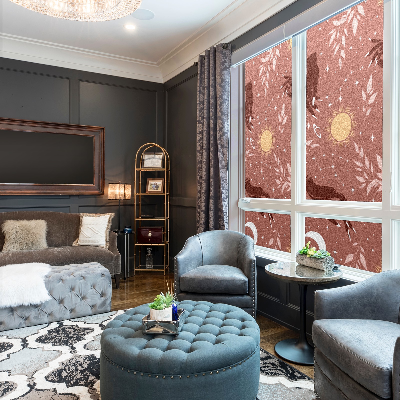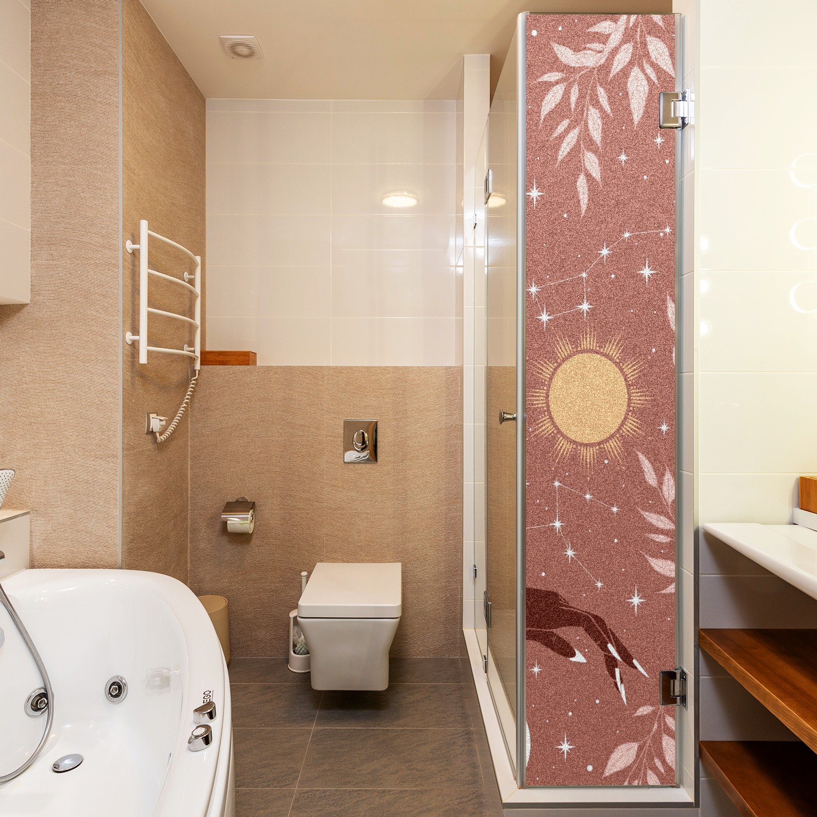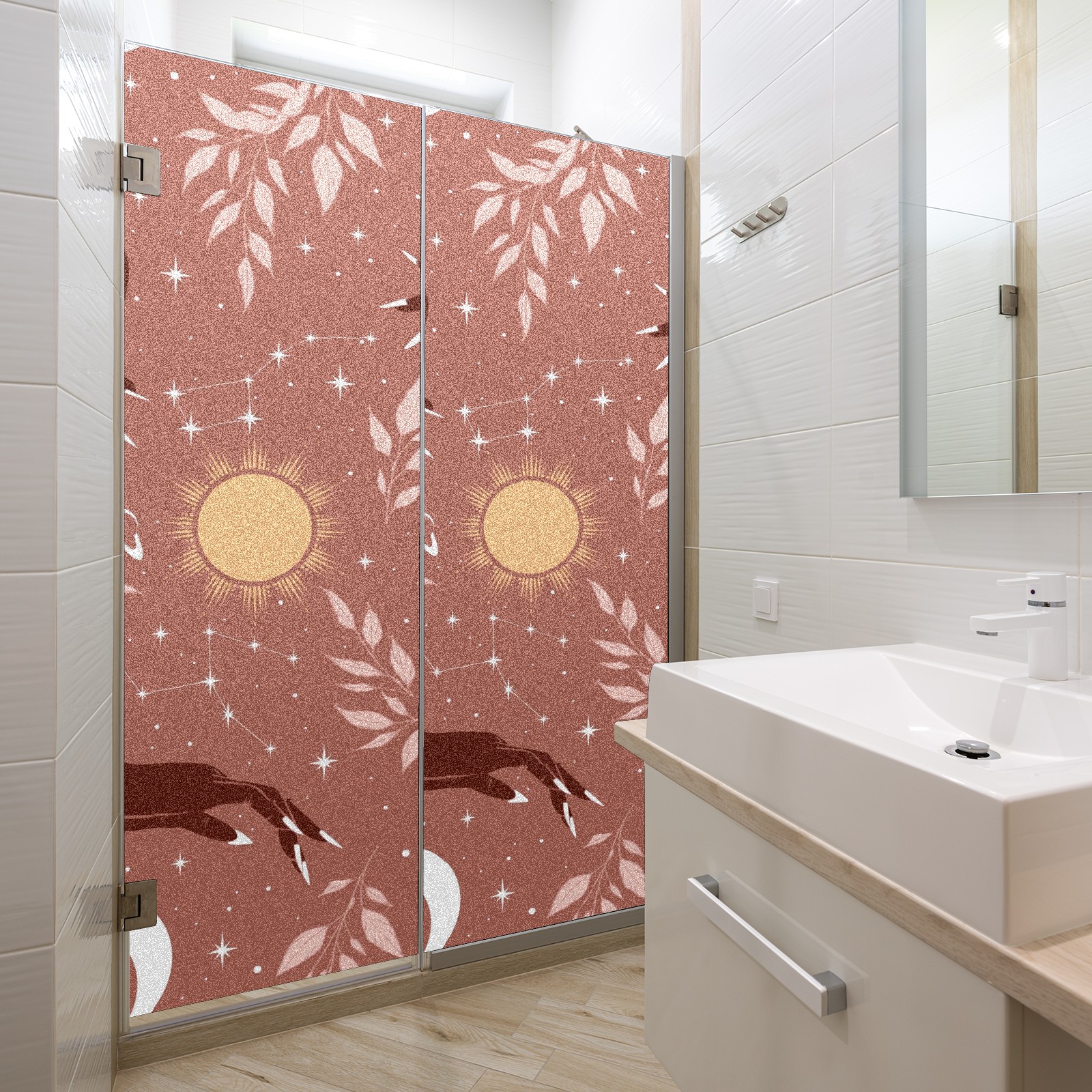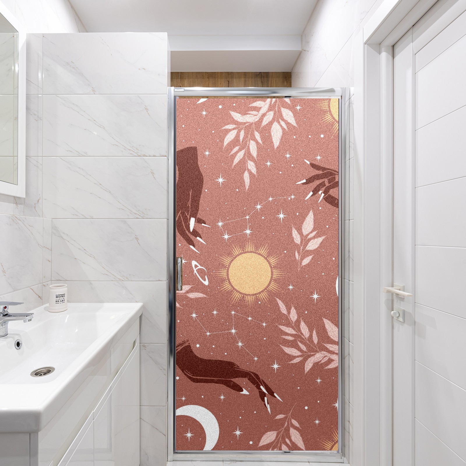 Static Cling Decorative Window Film Frosted Privacy Film Window Clings for Glass Windows No Glue Window Sticker for Bathroom Bedroom Office Magical Sun Crescent Stars Astrology