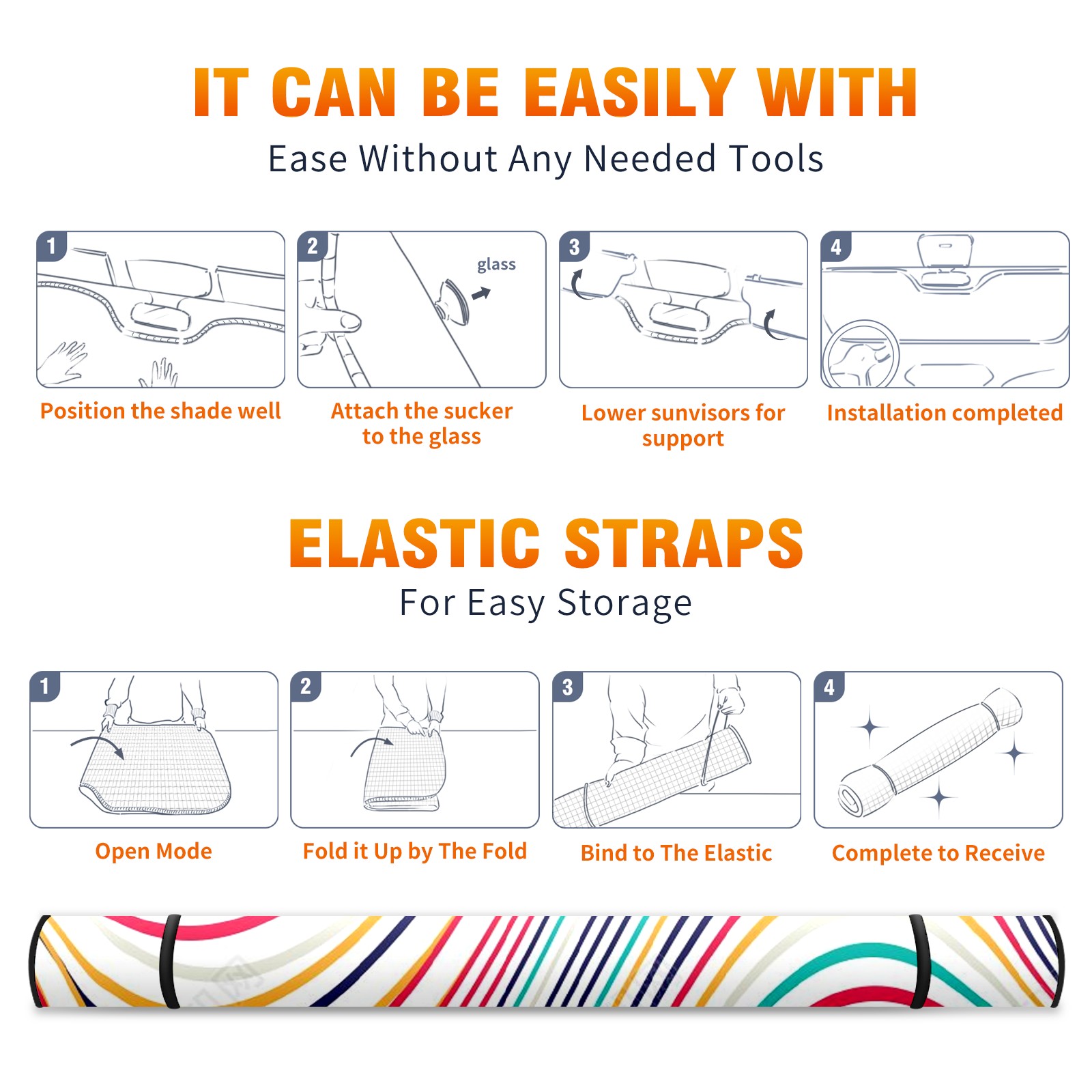 • Diameter /Size 63"L x 33.5"W</b><br> Made from excellent materials which makes it sturdy and protects the car from the sun. Easy to use and pack. Makes the interior of the car cooler.You can easily stash the sunshade in the storage bag or store long term.It open and closes easy. Also the leather storage bag is durable and easy to put the umbrella back into.This windshield sunshade provides complete coverage and keeps your car interior cool under direct sun. It is easy to open and position under the windshield and around the rear-view mirror. Makes Your Car Easy To Identify, Perfect For Finding Your Car In Crowded Parking Lots And Garages.Great Choice: It Is A Great Gift For Dad, Boyfriend, Brother, Brother And Uncle, Friends, Classmates, Family And So On.<br> Notice:</b><br> Due To Difference Computer Monitors, The Color Maybe Slightly Different From Picture. As Different Measurement Methods, Measurement Data Will Float Within 2%.I Hope You Understand.<br> If You Have Any Question About The Item Please Do Not Hesitate To Contact Us Immediately And We Will Give You A Satisfactory Reply Within 24 Hours.