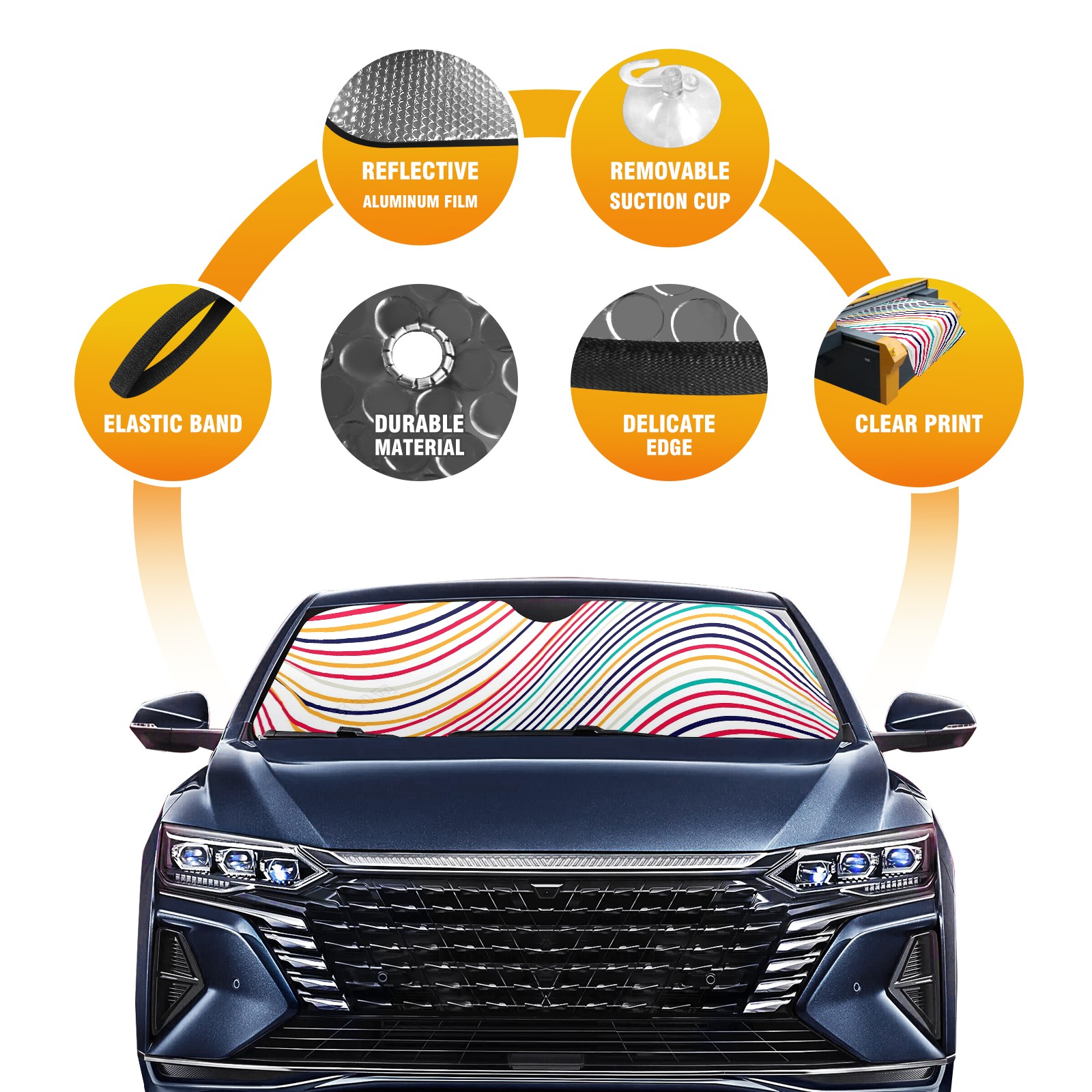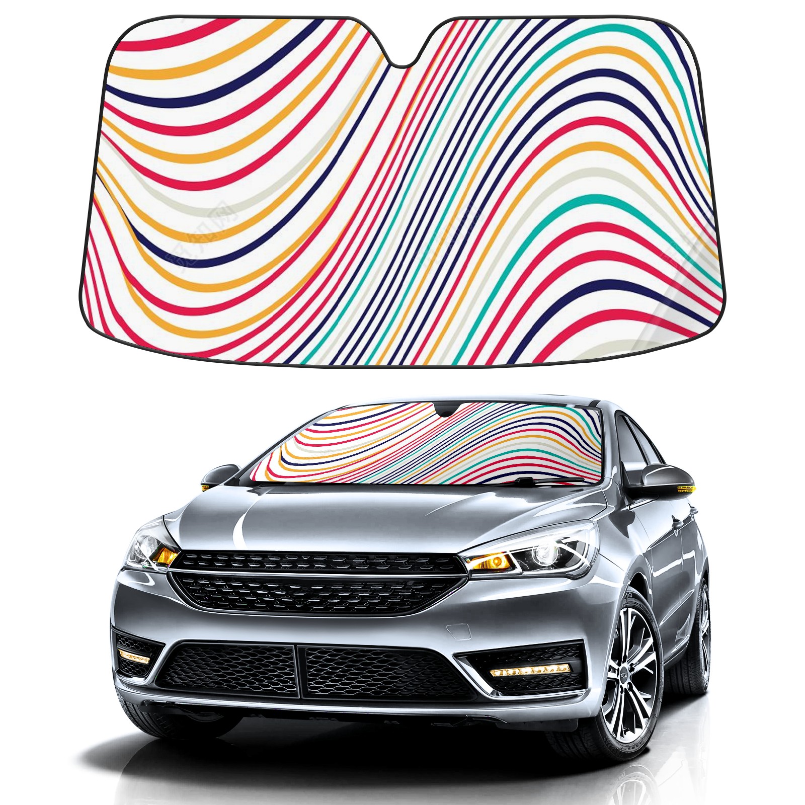Car Windshield Sun Shade for Front Window Ripple Wave Foldable Vehicle Windshield Car Sun Visor Covers Automotive Window Protector Car Camping Privacy Sun Blocker