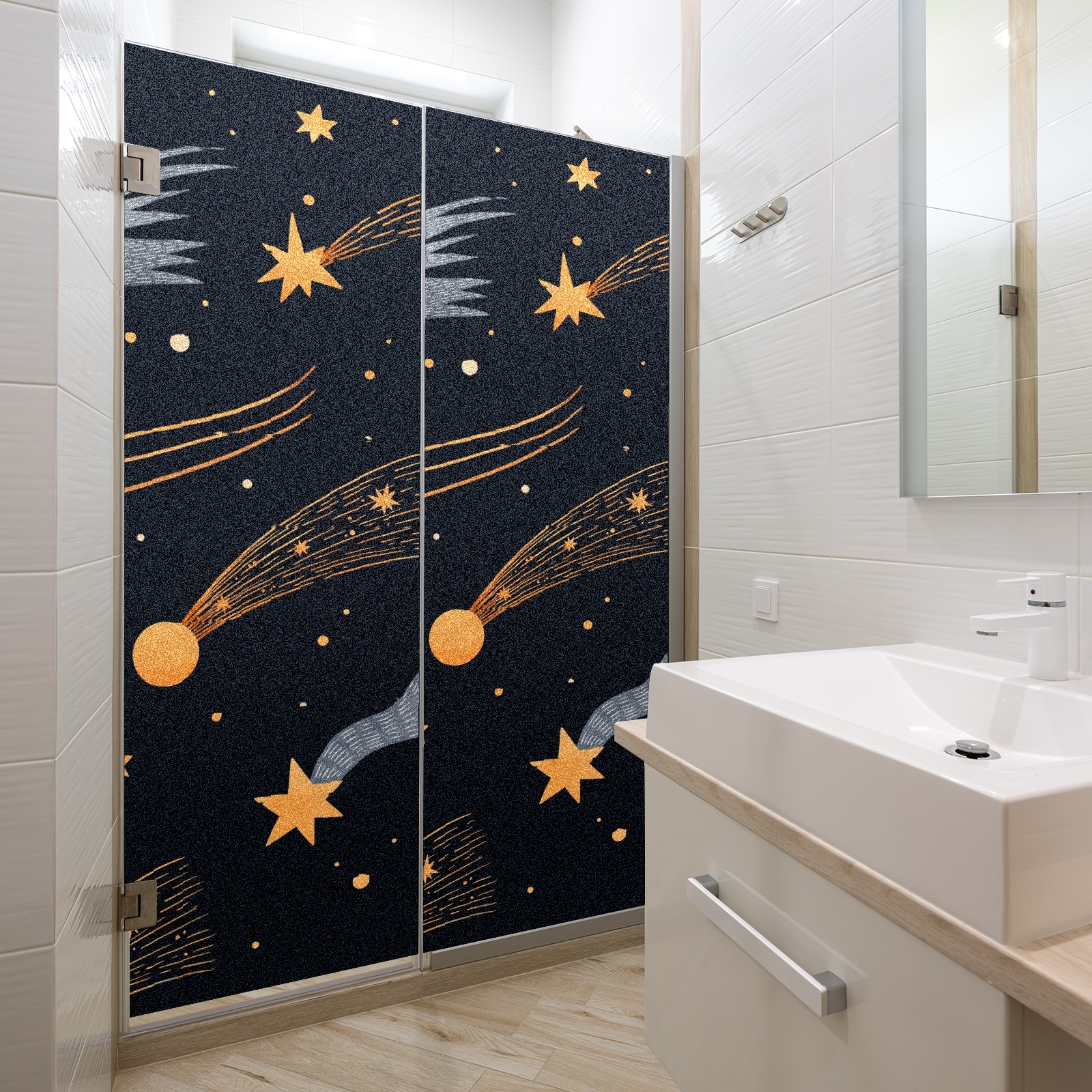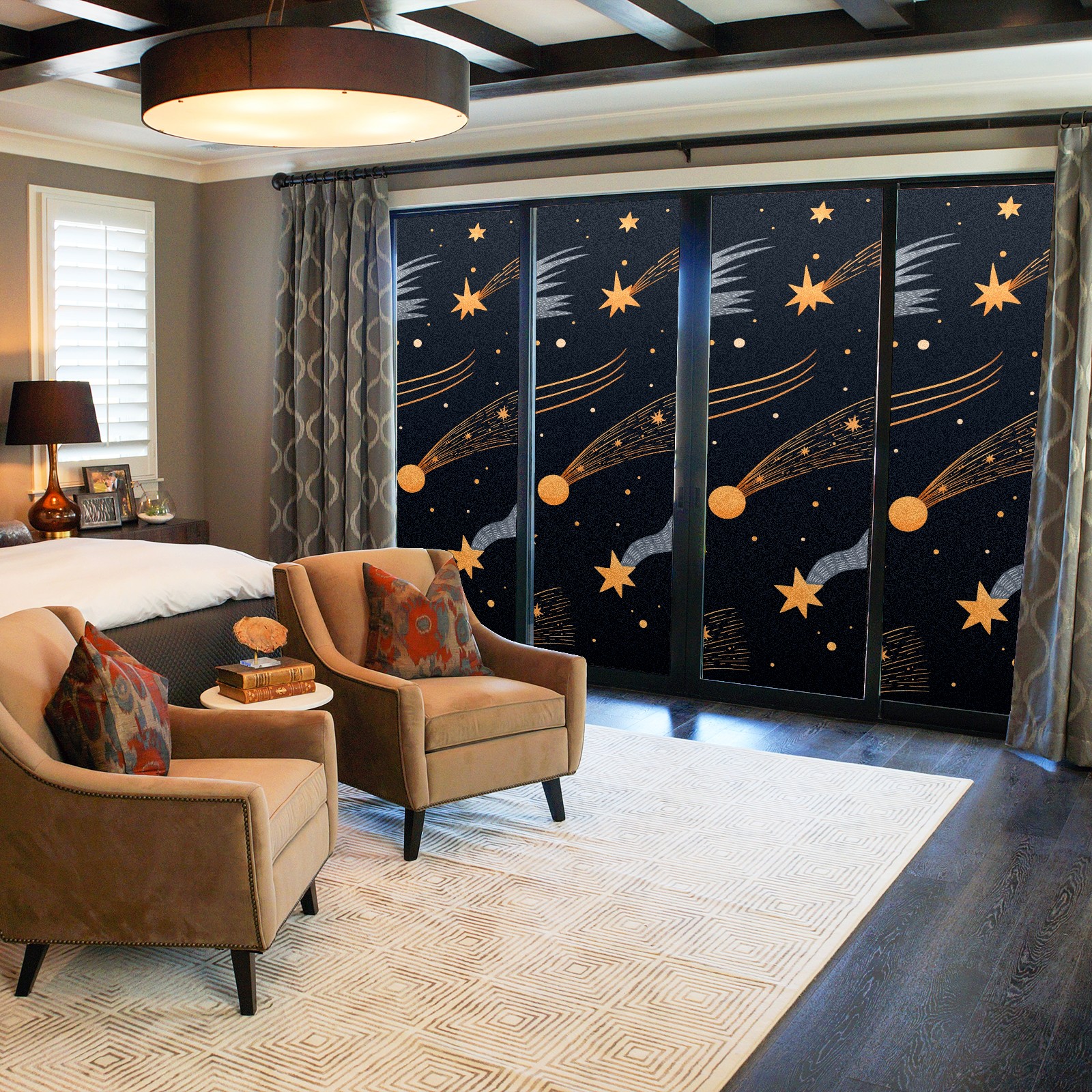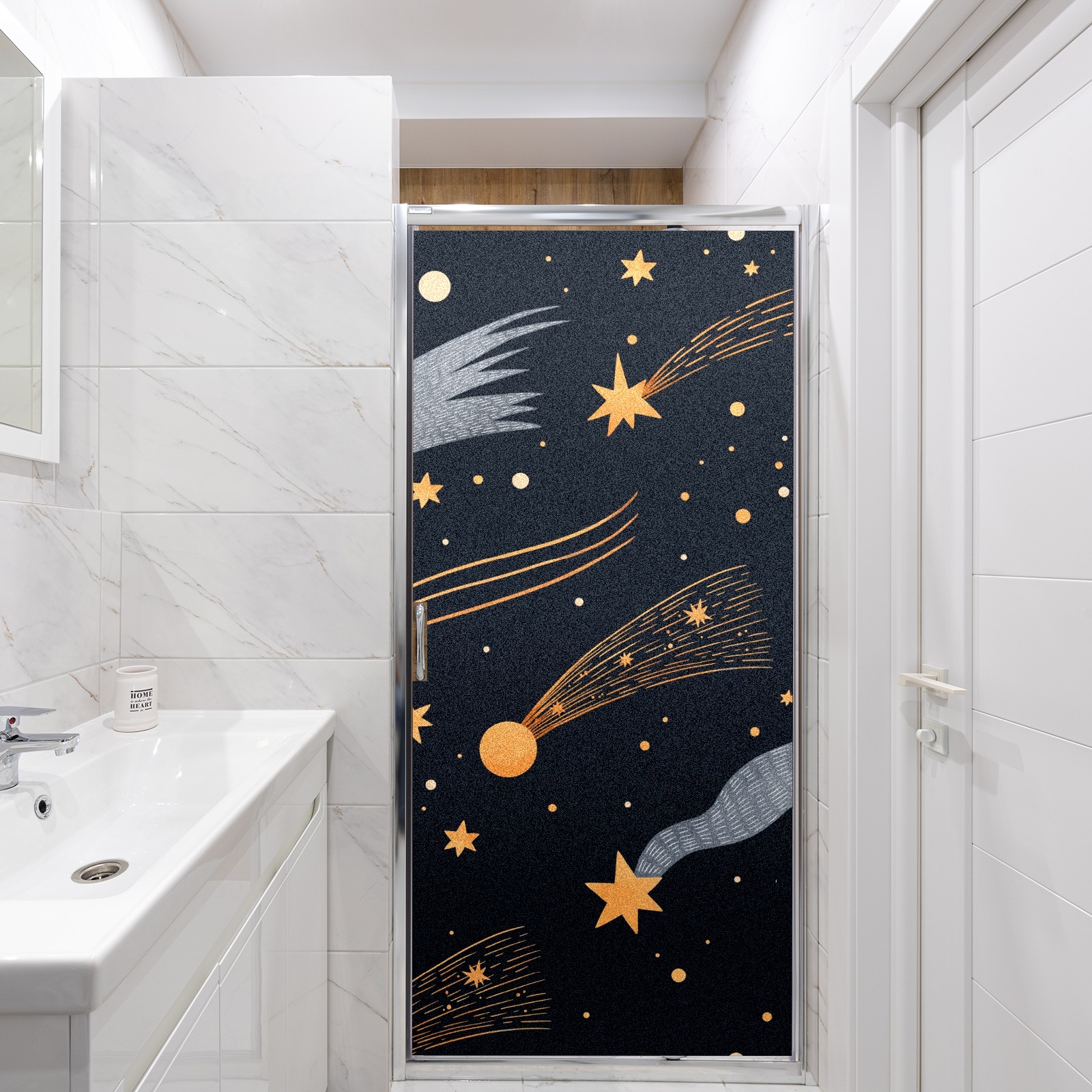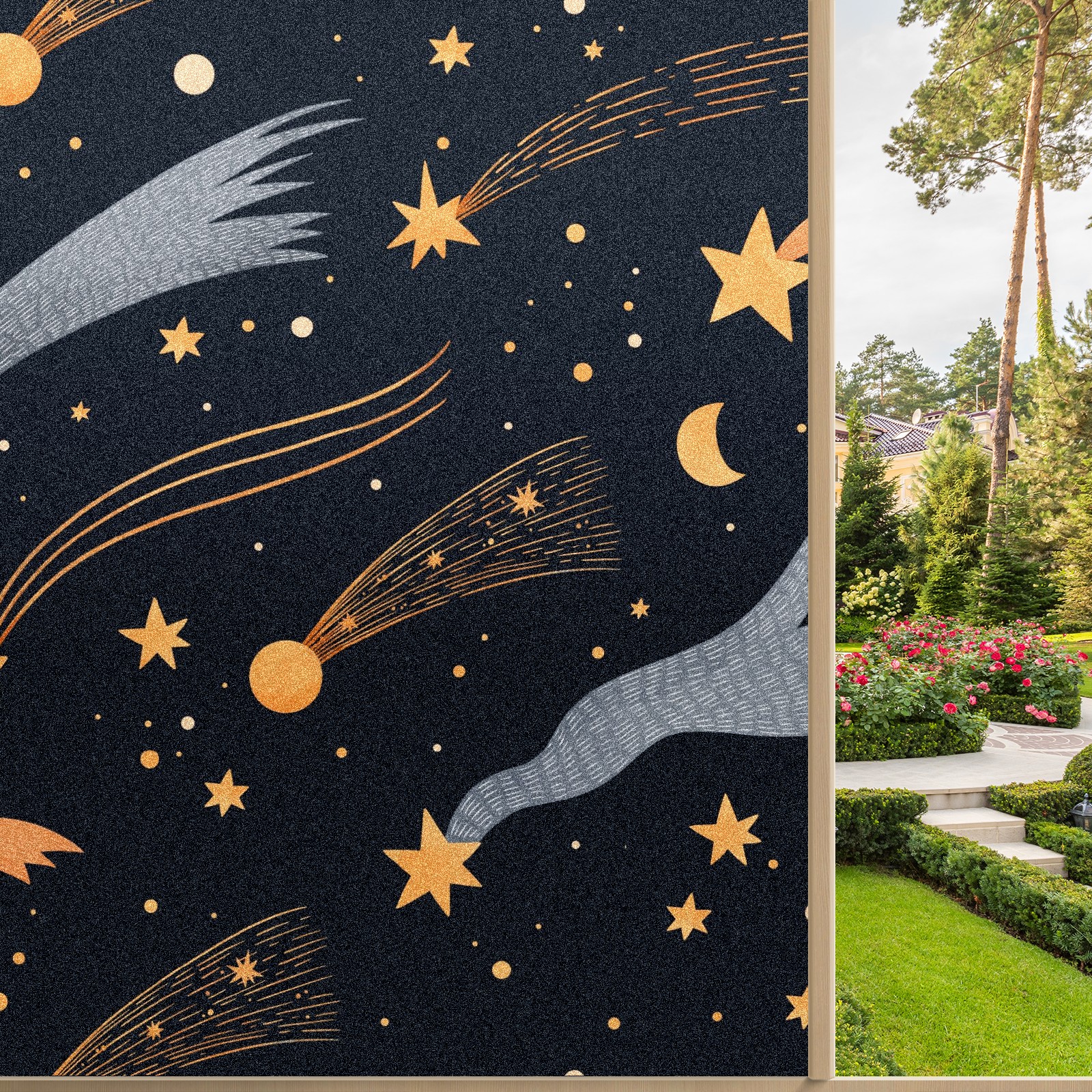 Static Cling Decorative Window Film Frosted Privacy Film Window Clings for Glass Windows No Glue Window Sticker for Bathroom Bedroom Office Magical Comet Star