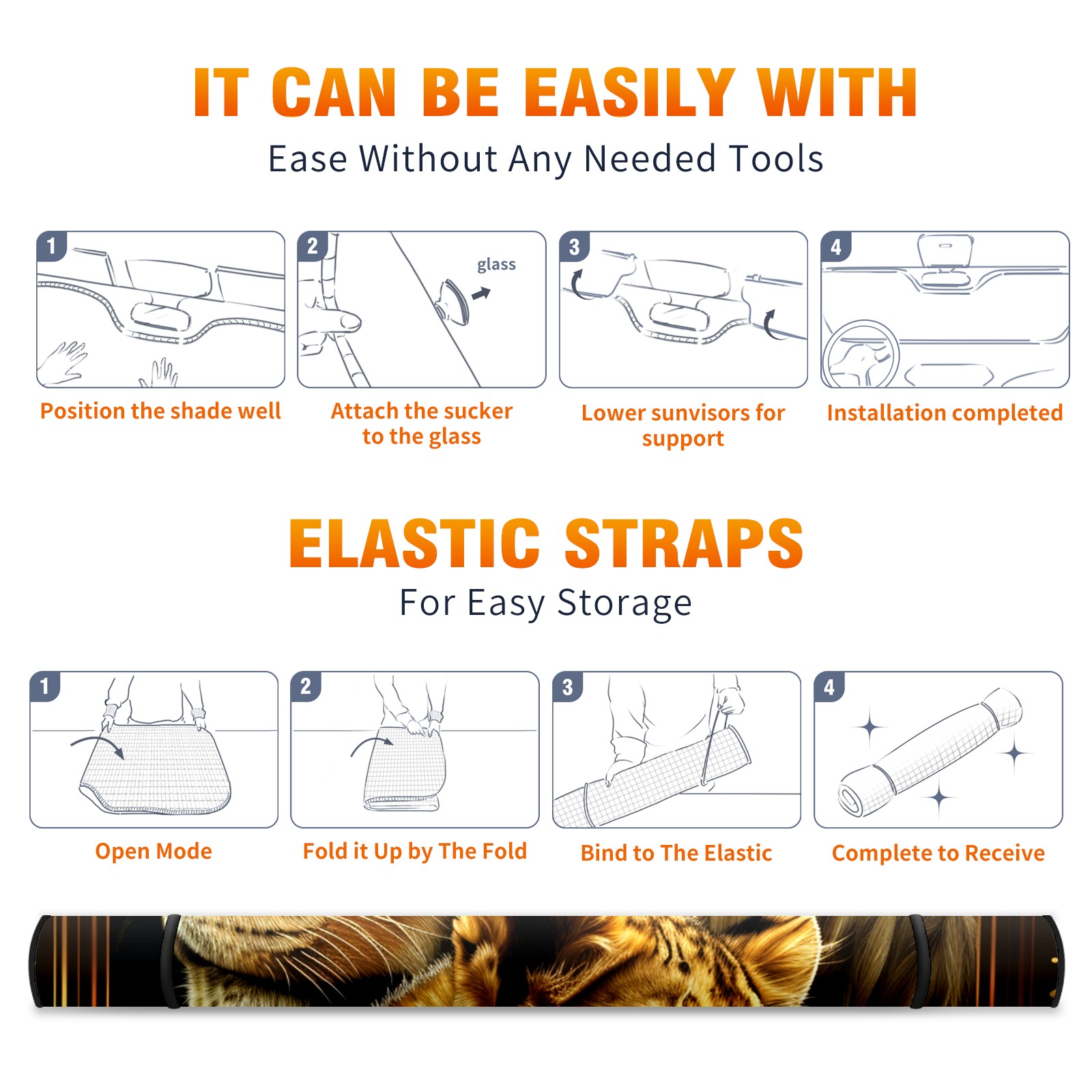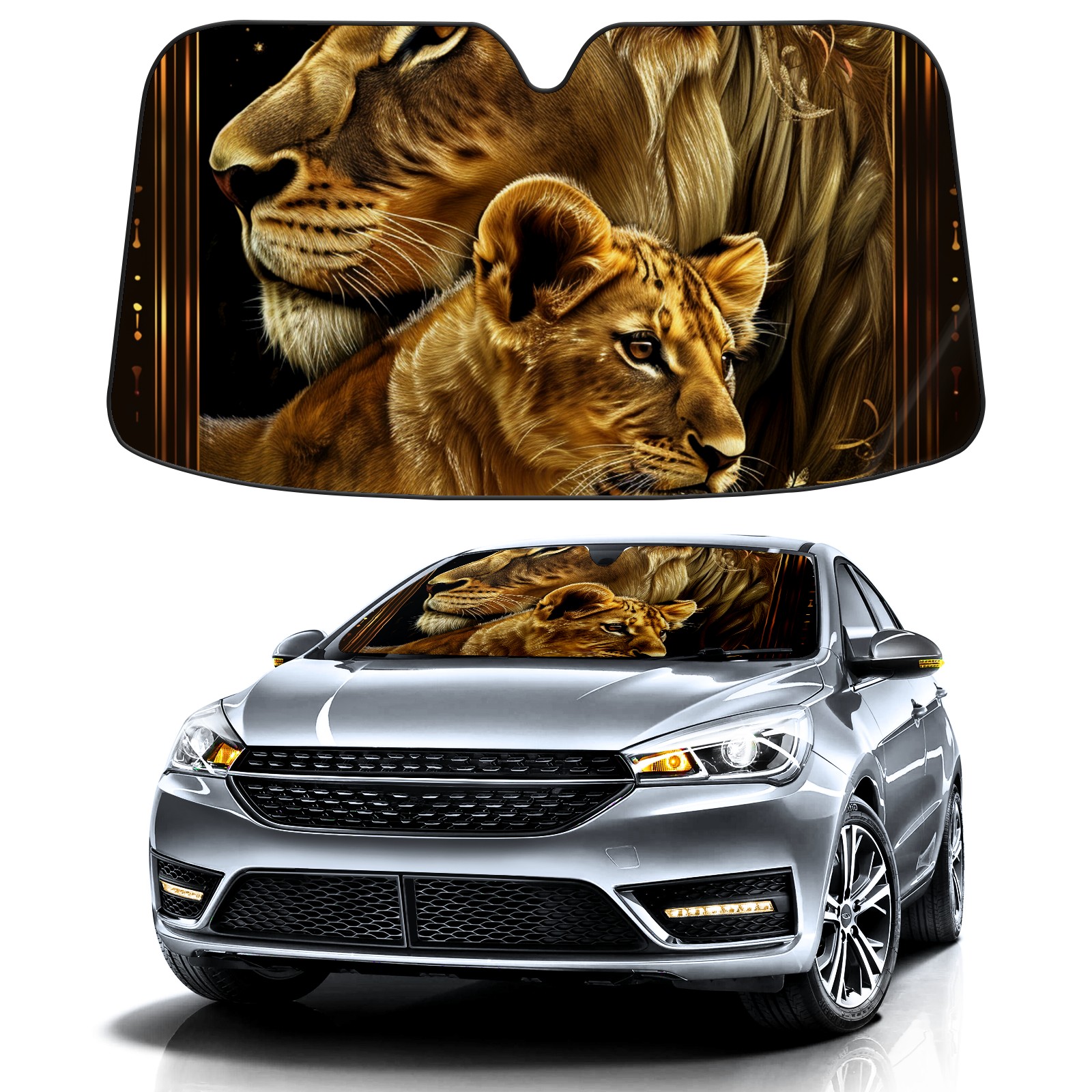 Car Windshield Sun Shade for Front Window Lion Foldable Vehicle Windshield Car Sun Visor Covers Automotive Window Protector Car Camping Privacy Sun Blocker