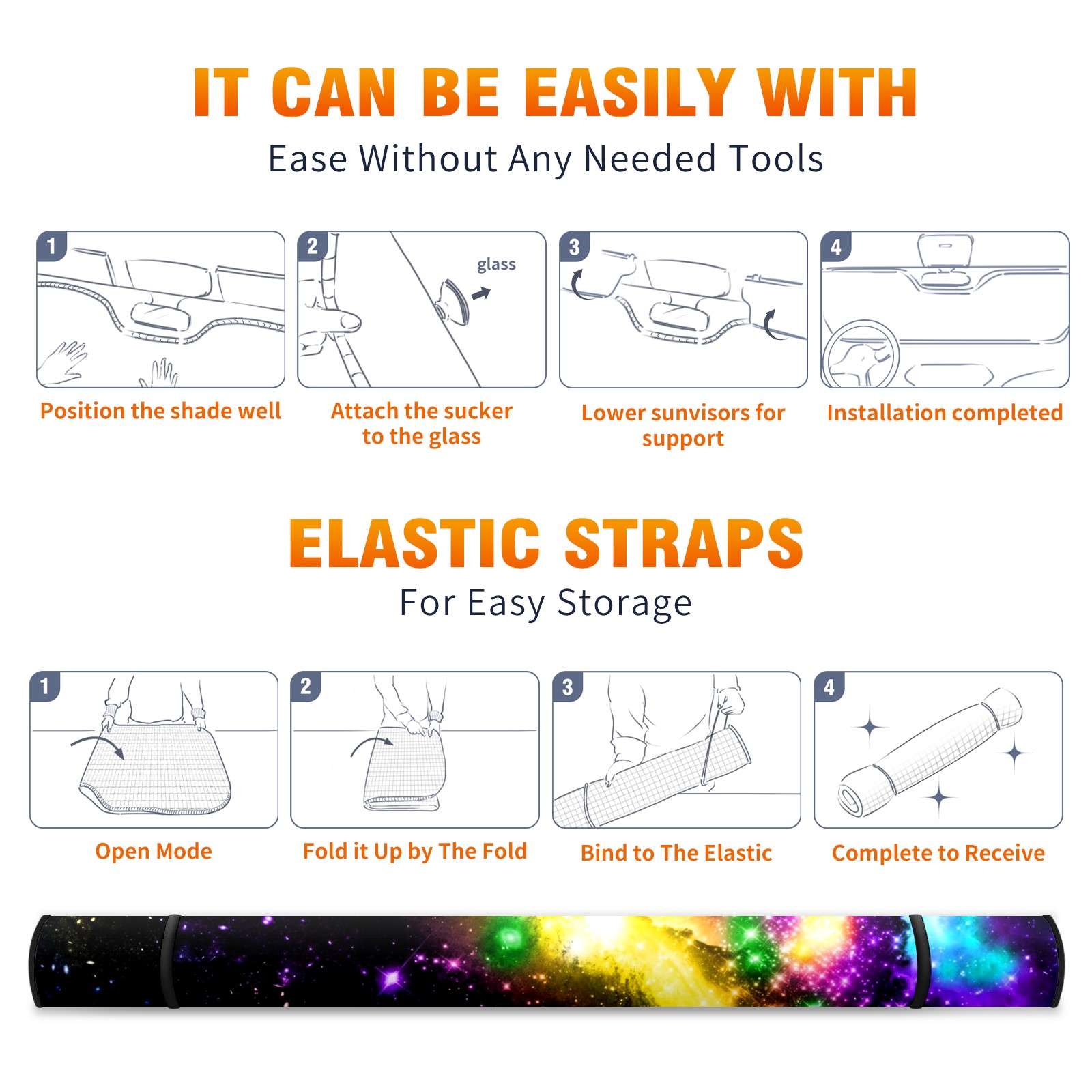 Diameter /Size 63"L x 33.5"W</b><br> Made from excellent materials which makes it sturdy and protects the car from the sun. Easy to use and pack. Makes the interior of the car cooler.You can easily stash the sunshade in the storage bag or store long term.It open and closes easy. Also the leather storage bag is durable and easy to put the umbrella back into.This windshield sunshade provides complete coverage and keeps your car interior cool under direct sun. It is easy to open and position under the windshield and around the rear-view mirror. Makes Your Car Easy To Identify, Perfect For Finding Your Car In Crowded Parking Lots And Garages.Great Choice: It Is A Great Gift For Dad, Boyfriend, Brother, Brother And Uncle, Friends, Classmates, Family And So On.<br> Notice:</b><br> Due To Difference Computer Monitors, The Color Maybe Slightly Different From Picture. As Different Measurement Methods, Measurement Data Will Float Within 2%.I Hope You Understand.<br> If You Have Any Question About The Item Please Do Not Hesitate To Contact Us Immediately And We Will Give You A Satisfactory Reply Within 24 Hours.