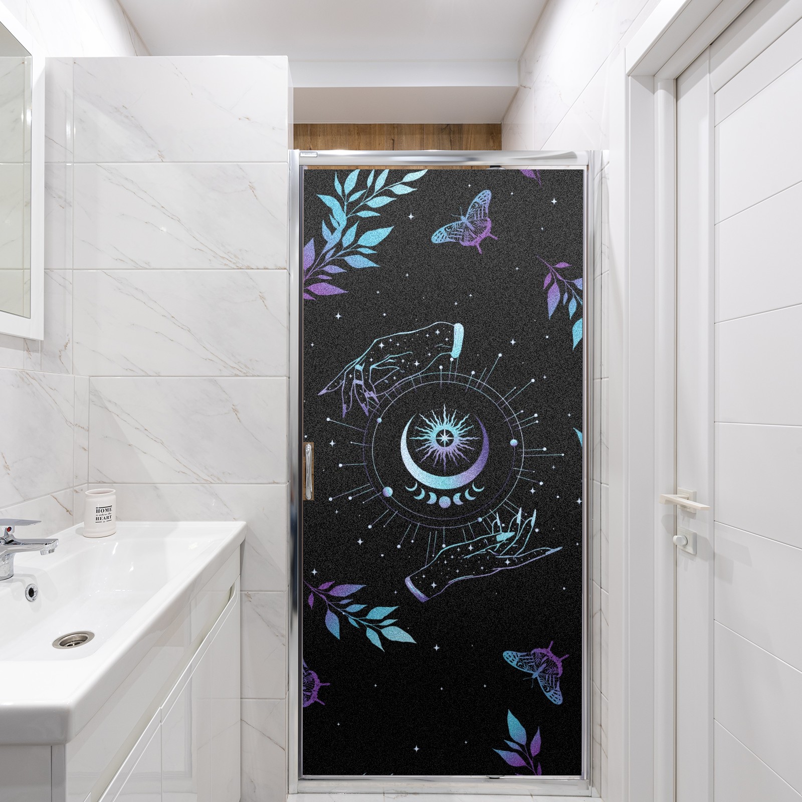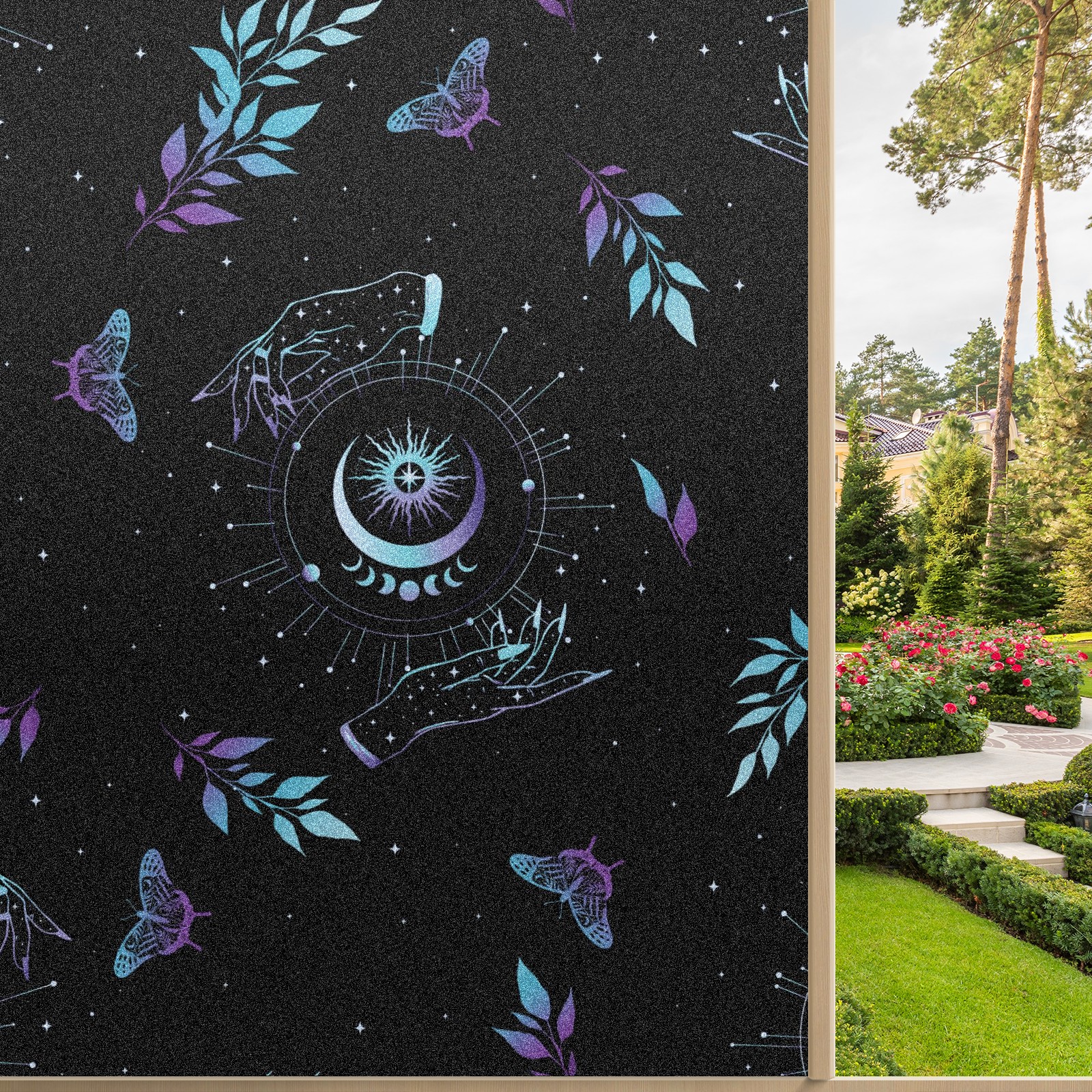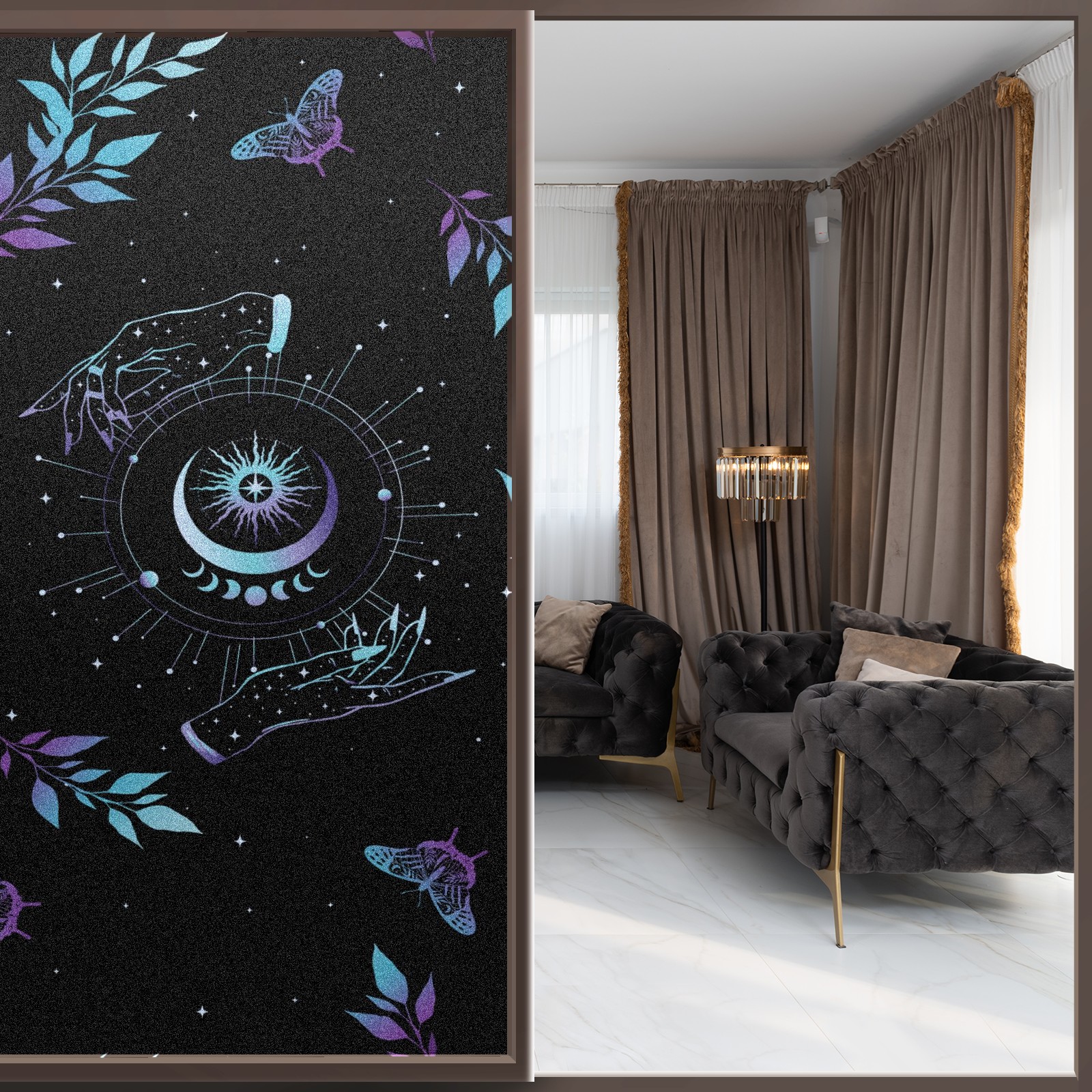 Static Cling Decorative Window Film Frosted Privacy Film Window Clings for Glass Windows No Glue Window Sticker for Bathroom Bedroom Office Aastrology Magic Hands And Moon