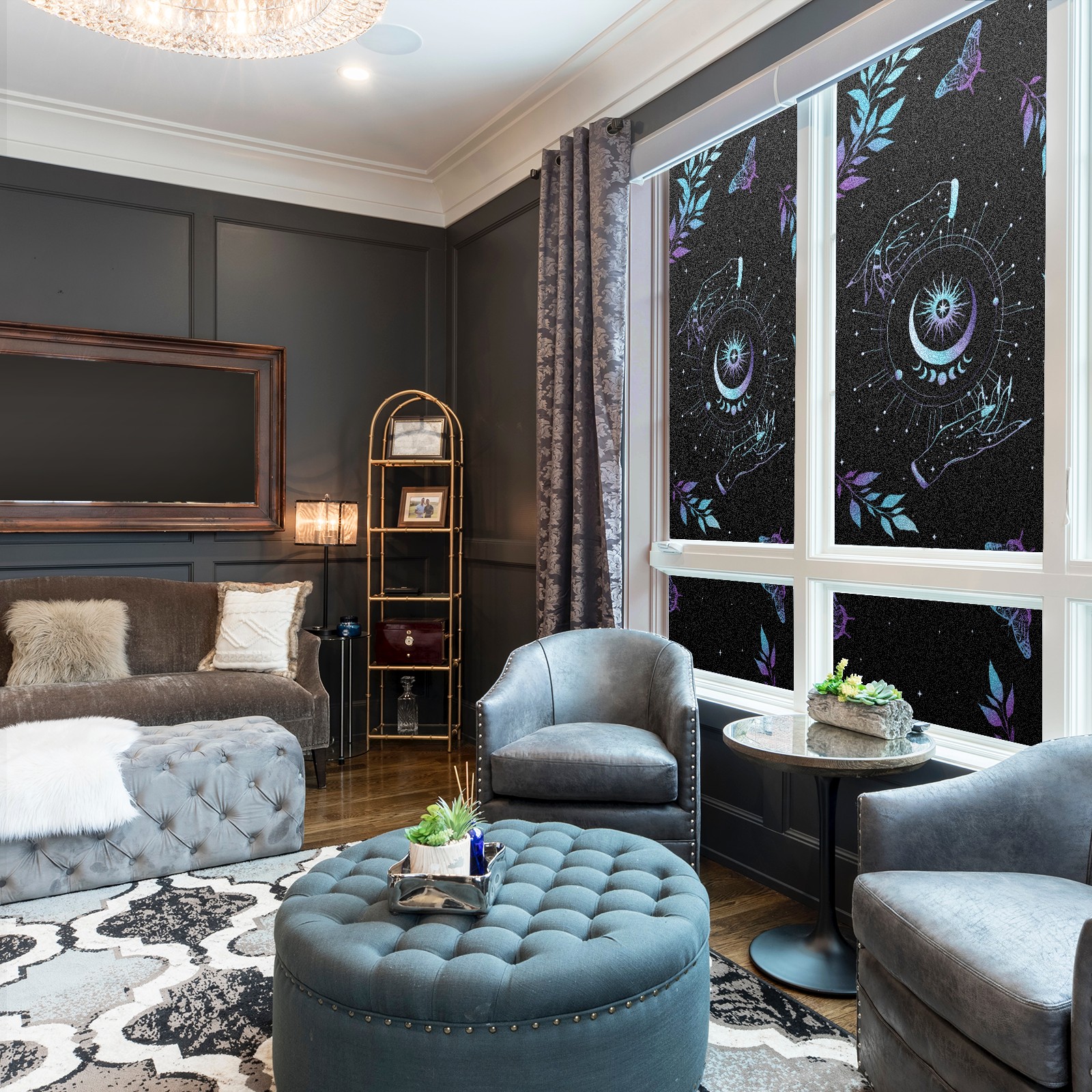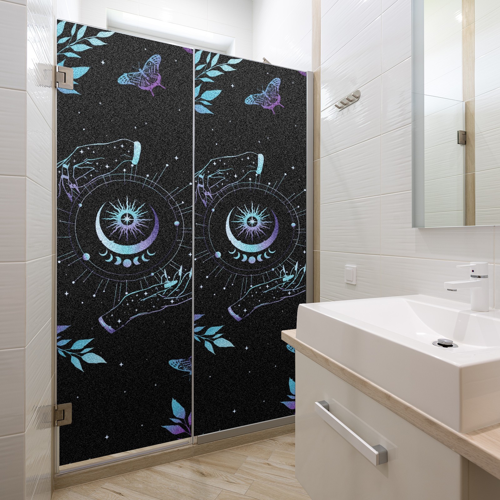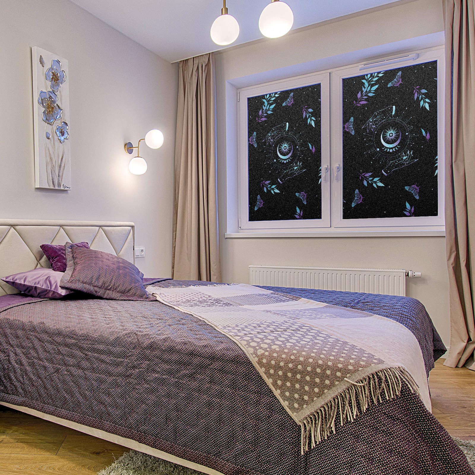 Static Cling Decorative Window Film Frosted Privacy Film Window Clings for Glass Windows No Glue Window Sticker for Bathroom Bedroom Office Aastrology Magic Hands And Moon