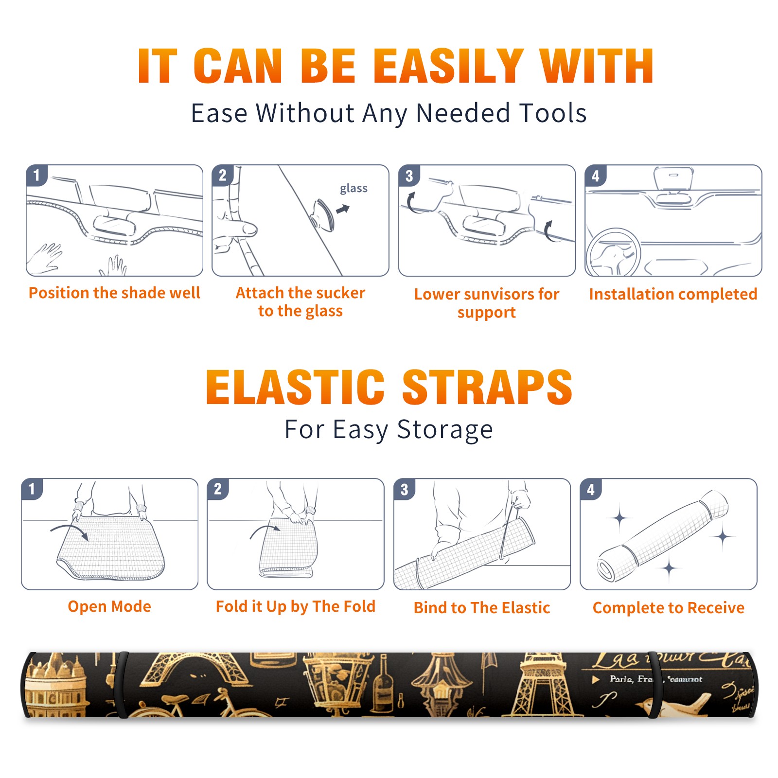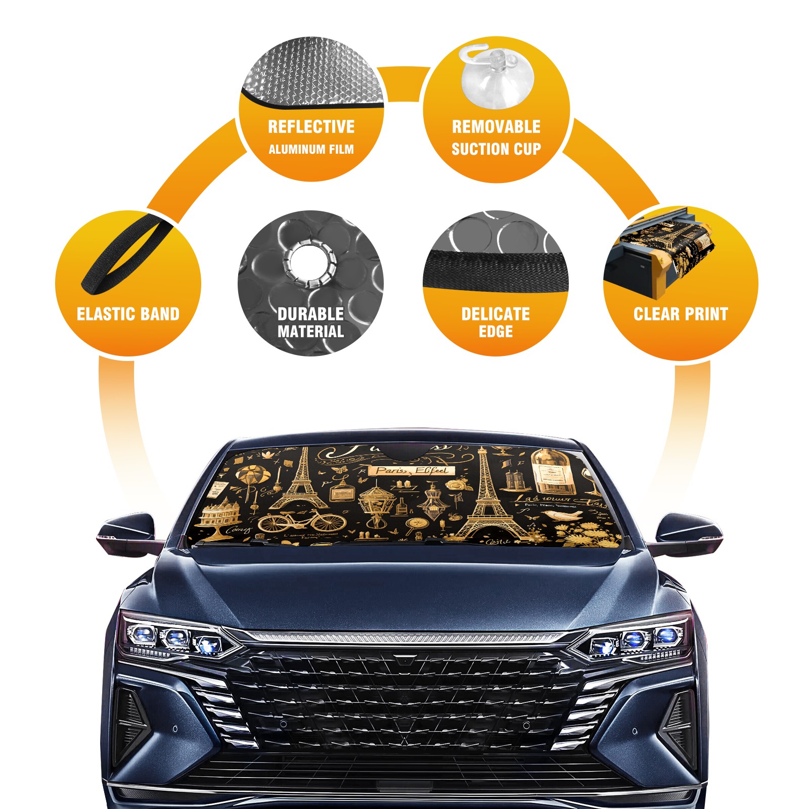 Diameter /Size 63"L x 33.5"W</b><br> Made from excellent materials which makes it sturdy and protects the car from the sun. Easy to use and pack. Makes the interior of the car cooler.You can easily stash the sunshade in the storage bag or store long term.It open and closes easy. Also the leather storage bag is durable and easy to put the umbrella back into.This windshield sunshade provides complete coverage and keeps your car interior cool under direct sun. It is easy to open and position under the windshield and around the rear-view mirror. Makes Your Car Easy To Identify, Perfect For Finding Your Car In Crowded Parking Lots And Garages.Great Choice: It Is A Great Gift For Dad, Boyfriend, Brother, Brother And Uncle, Friends, Classmates, Family And So On.<br> Notice:</b><br> Due To Difference Computer Monitors, The Color Maybe Slightly Different From Picture. As Different Measurement Methods, Measurement Data Will Float Within 2%.I Hope You Understand.<br> If You Have Any Question About The Item Please Do Not Hesitate To Contact Us Immediately And We Will Give You A Satisfactory Reply Within 24 Hours.