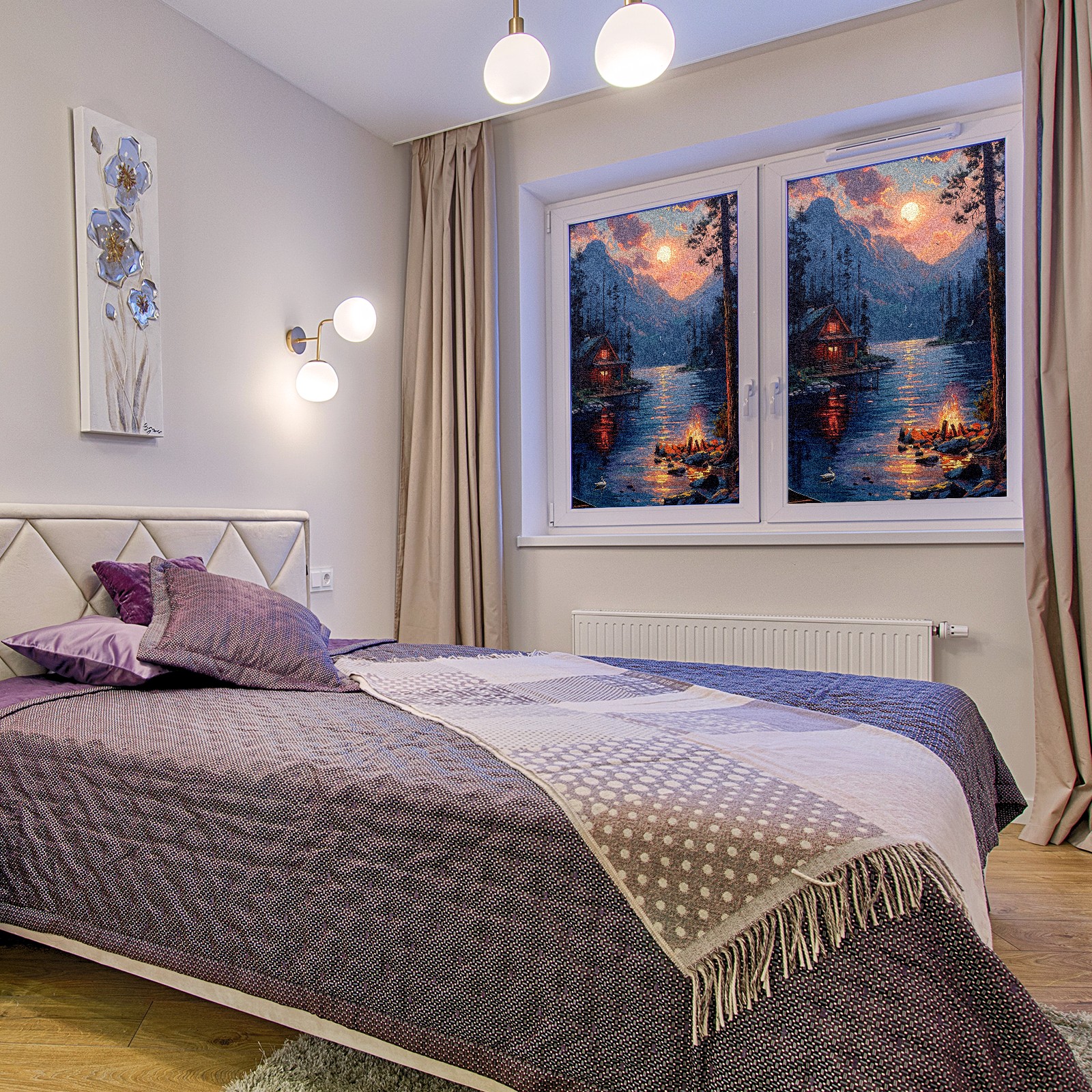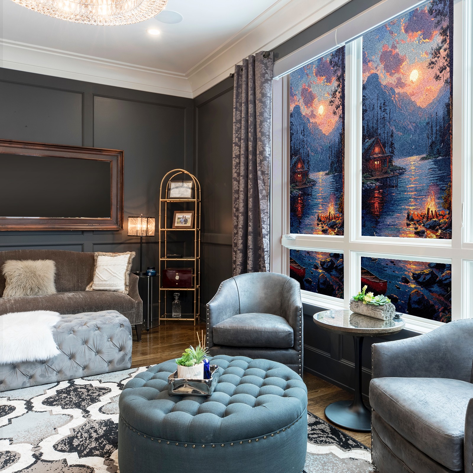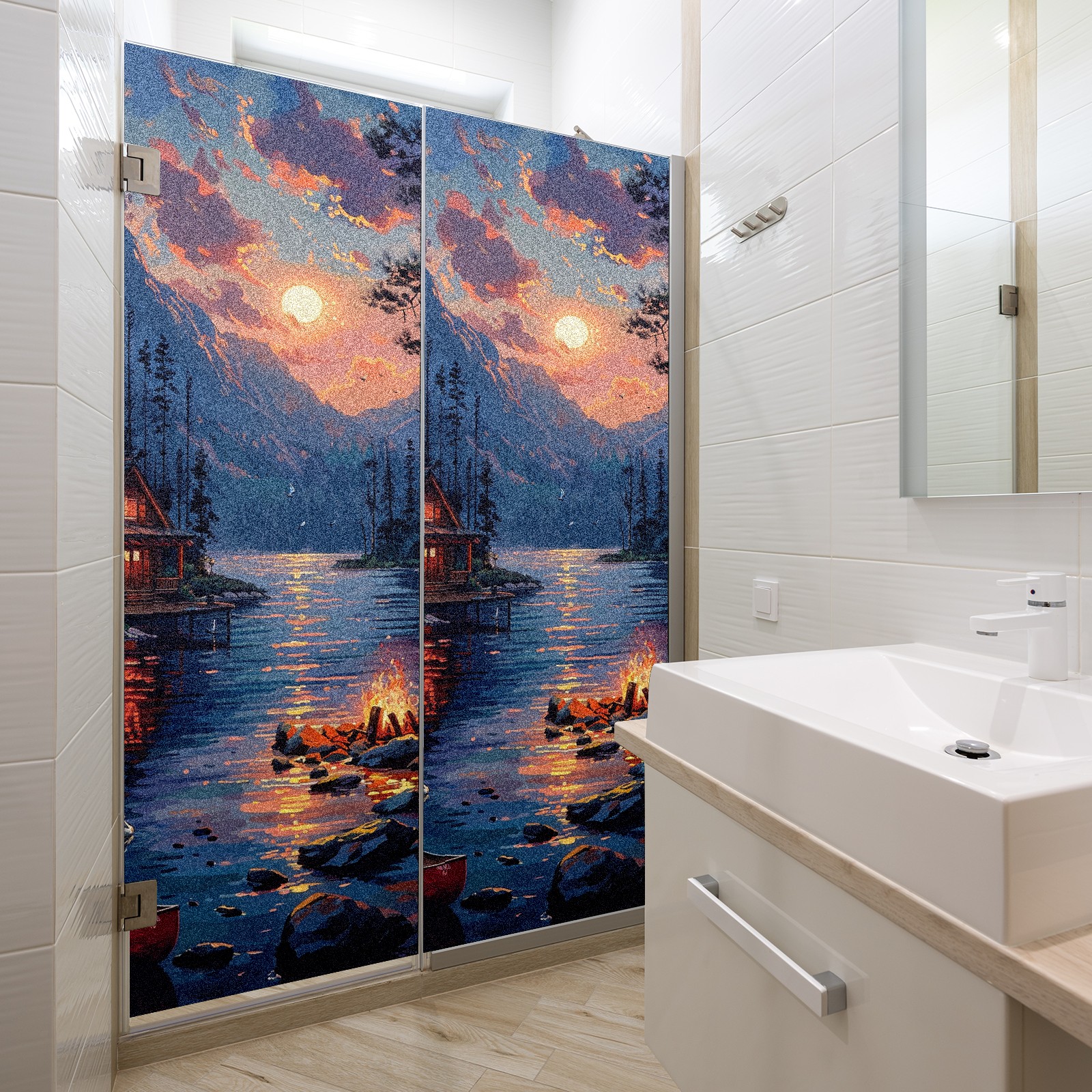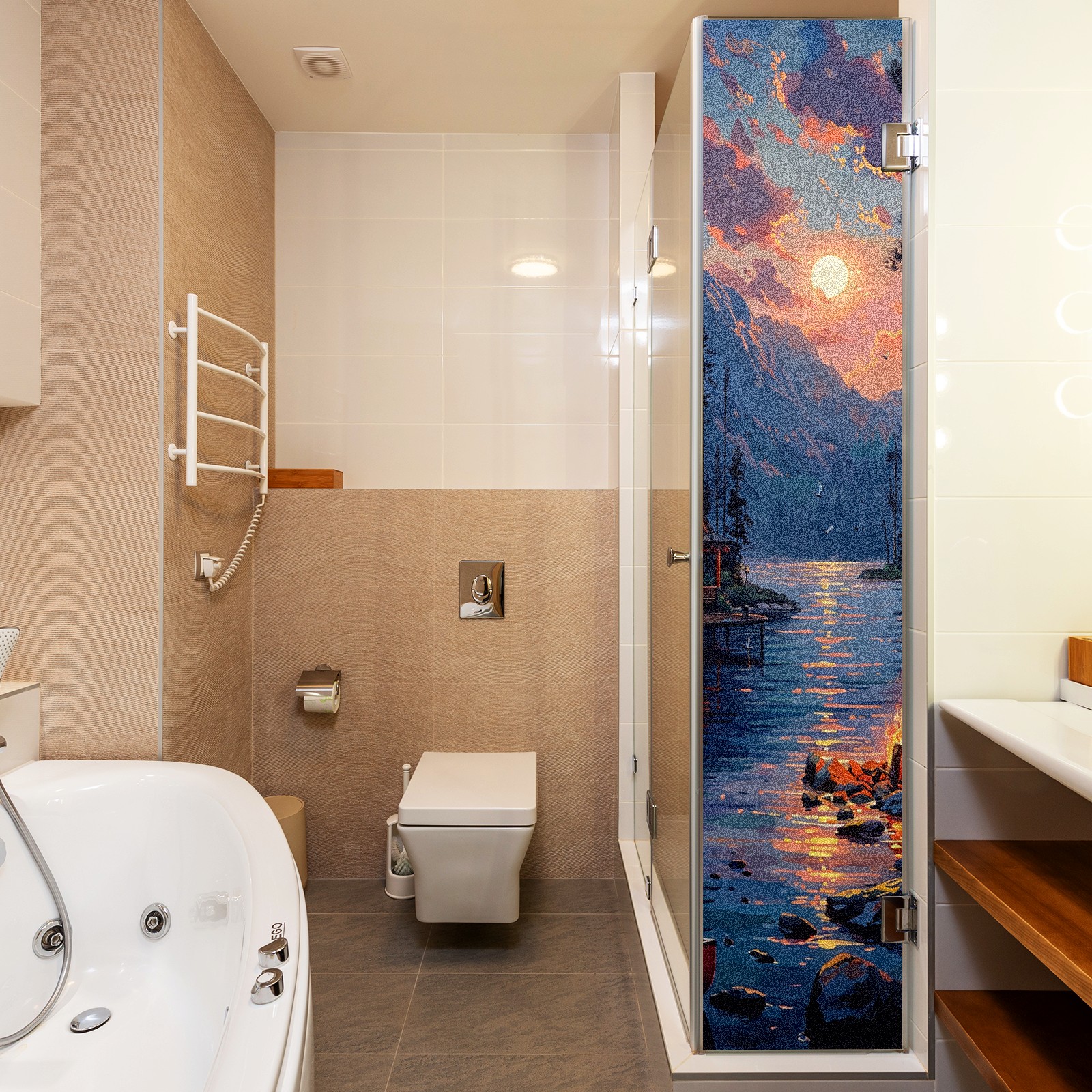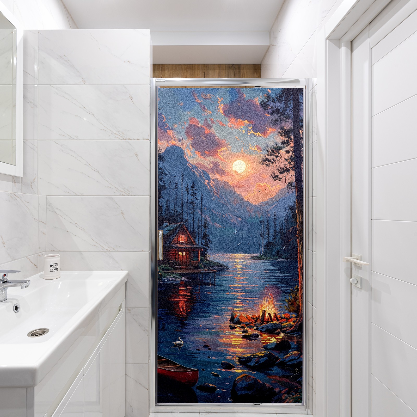Static Cling Decorative Window Film Frosted Privacy Film Window Clings for Glass Windows No Glue Window Sticker for Bathroom Bedroom Office Sunset