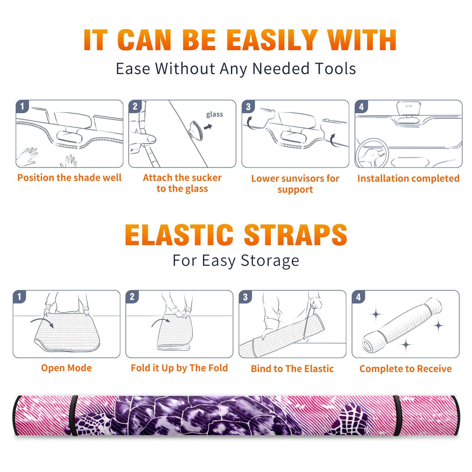 Diameter /Size 63"L x 33.5"W</b><br> Made from excellent materials which makes it sturdy and protects the car from the sun. Easy to use and pack. Makes the interior of the car cooler.You can easily stash the sunshade in the storage bag or store long term.It open and closes easy. Also the leather storage bag is durable and easy to put the umbrella back into.This windshield sunshade provides complete coverage and keeps your car interior cool under direct sun. It is easy to open and position under the windshield and around the rear-view mirror. Makes Your Car Easy To Identify, Perfect For Finding Your Car In Crowded Parking Lots And Garages.Great Choice: It Is A Great Gift For Dad, Boyfriend, Brother, Brother And Uncle, Friends, Classmates, Family And So On.<br> Notice:</b><br> Due To Difference Computer Monitors, The Color Maybe Slightly Different From Picture. As Different Measurement Methods, Measurement Data Will Float Within 2%.I Hope You Understand.<br> If You Have Any Question About The Item Please Do Not Hesitate To Contact Us Immediately And We Will Give You A Satisfactory Reply Within 24 Hours.