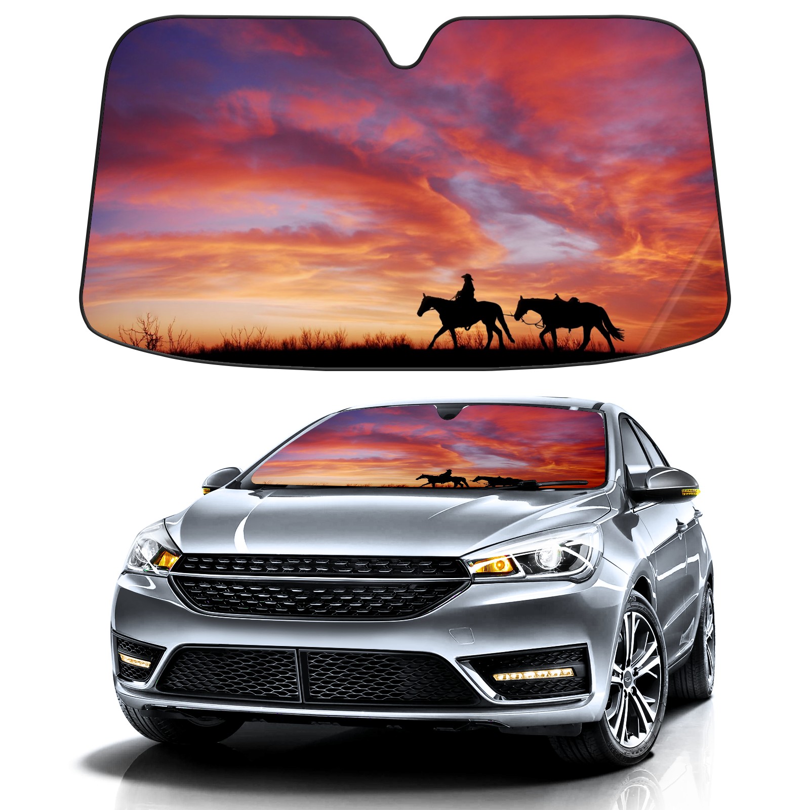 Diameter /Size 63"L x 33.5"W</b><br> Made from excellent materials which makes it sturdy and protects the car from the sun. Easy to use and pack. Makes the interior of the car cooler.You can easily stash the sunshade in the storage bag or store long term.It open and closes easy. Also the leather storage bag is durable and easy to put the umbrella back into.This windshield sunshade provides complete coverage and keeps your car interior cool under direct sun. It is easy to open and position under the windshield and around the rear-view mirror. Makes Your Car Easy To Identify, Perfect For Finding Your Car In Crowded Parking Lots And Garages.Great Choice: It Is A Great Gift For Dad, Boyfriend, Brother, Brother And Uncle, Friends, Classmates, Family And So On.<br> Notice:</b><br> Due To Difference Computer Monitors, The Color Maybe Slightly Different From Picture. As Different Measurement Methods, Measurement Data Will Float Within 2%.I Hope You Understand.<br> If You Have Any Question About The Item Please Do Not Hesitate To Contact Us Immediately And We Will Give You A Satisfactory Reply Within 24 Hours.