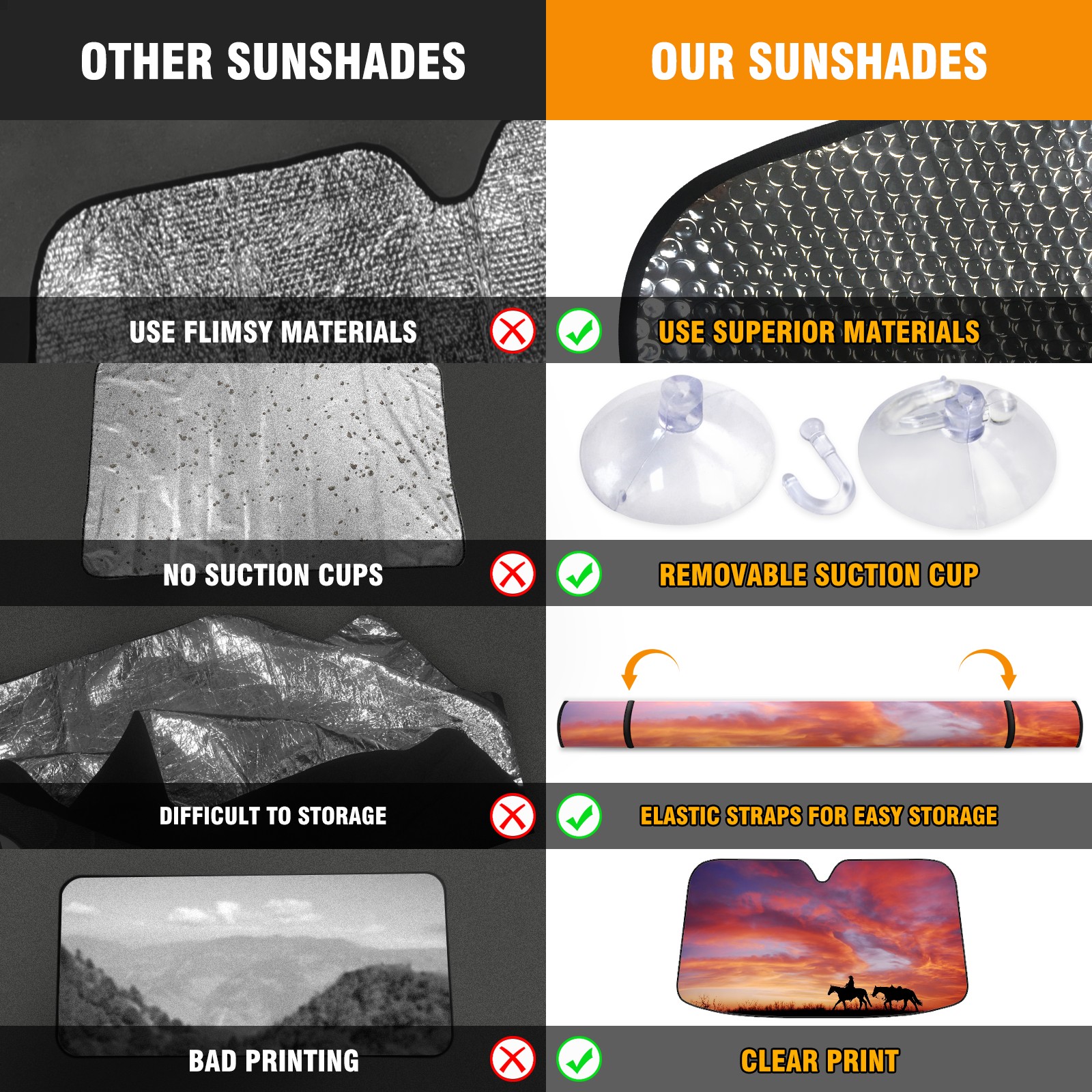 • Diameter /Size 63"L x 33.5"W</b><br> Made from excellent materials which makes it sturdy and protects the car from the sun. Easy to use and pack. Makes the interior of the car cooler.You can easily stash the sunshade in the storage bag or store long term.It open and closes easy. Also the leather storage bag is durable and easy to put the umbrella back into.This windshield sunshade provides complete coverage and keeps your car interior cool under direct sun. It is easy to open and position under the windshield and around the rear-view mirror. Makes Your Car Easy To Identify, Perfect For Finding Your Car In Crowded Parking Lots And Garages.Great Choice: It Is A Great Gift For Dad, Boyfriend, Brother, Brother And Uncle, Friends, Classmates, Family And So On.<br> Notice:</b><br> Due To Difference Computer Monitors, The Color Maybe Slightly Different From Picture. As Different Measurement Methods, Measurement Data Will Float Within 2%.I Hope You Understand.<br> If You Have Any Question About The Item Please Do Not Hesitate To Contact Us Immediately And We Will Give You A Satisfactory Reply Within 24 Hours.