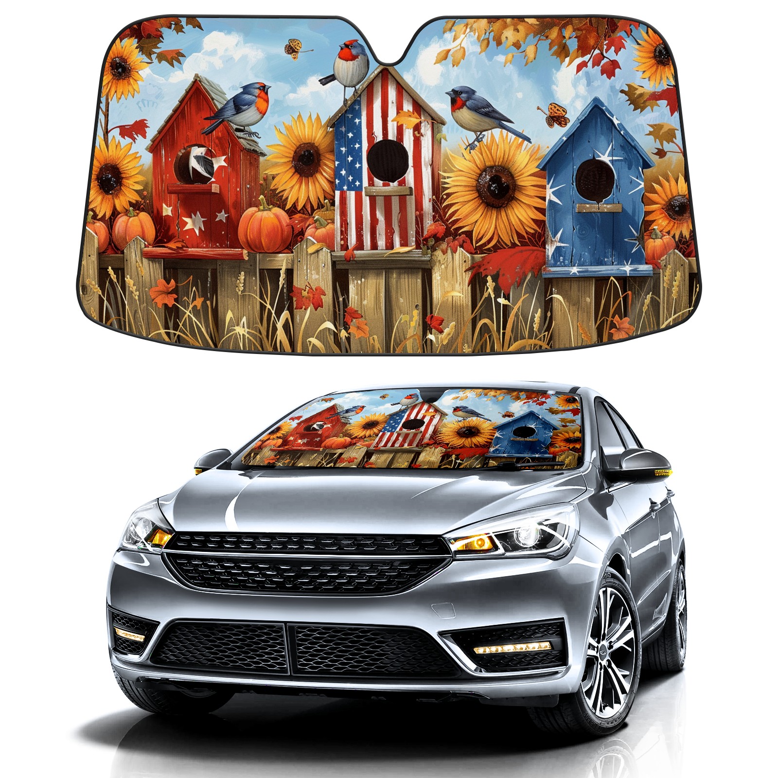 Car Windshield Sun Shade for Front Window Bird Sunflower Foldable Vehicle Windshield Car Sun Visor Covers Automotive Window Protector Car Camping Privacy Sun Blocker