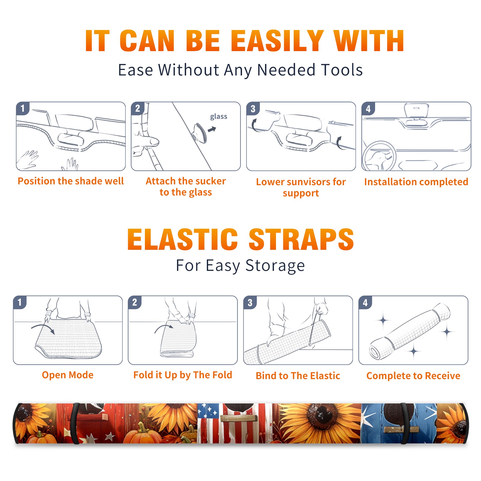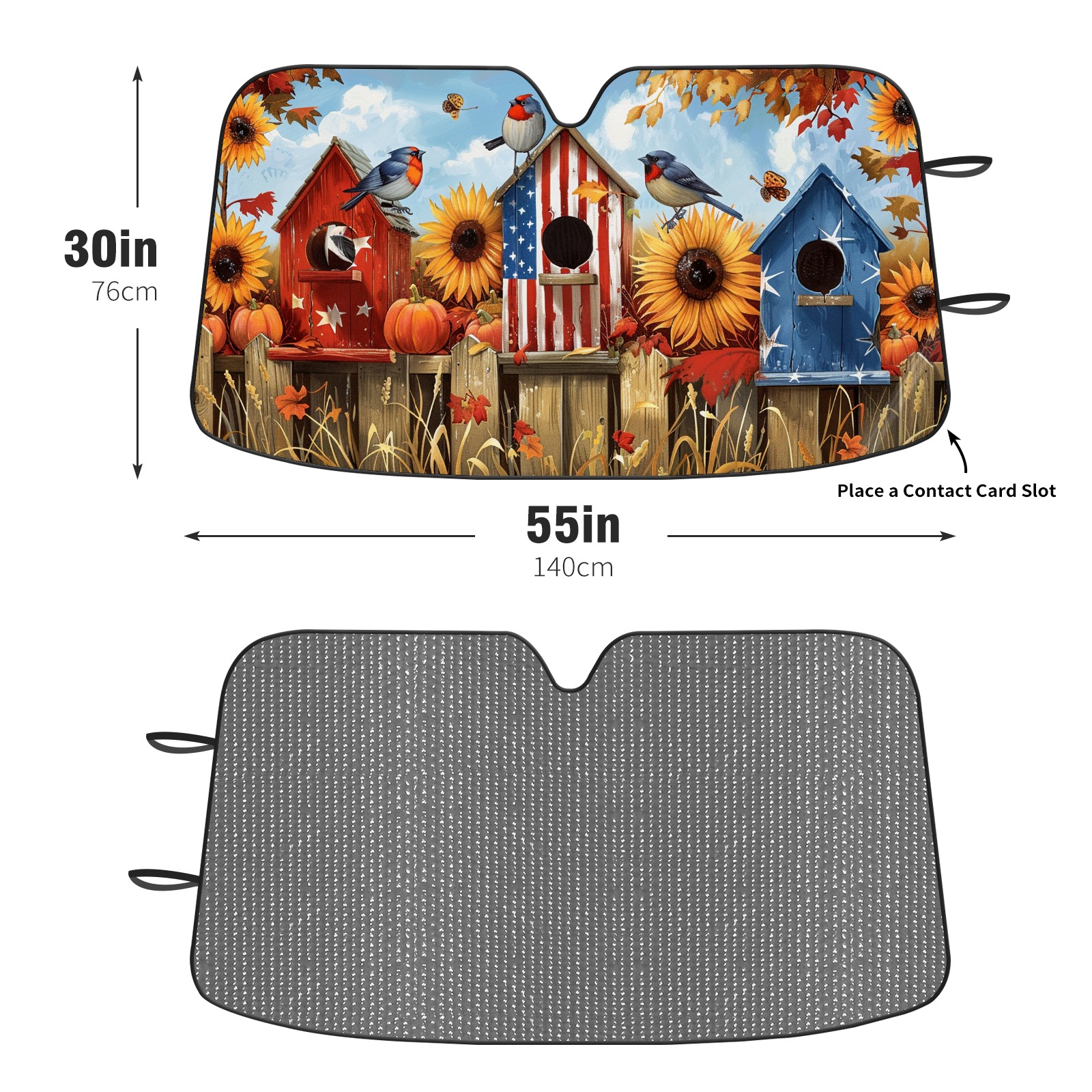 Diameter /Size 63"L x 33.5"W</b><br> Made from excellent materials which makes it sturdy and protects the car from the sun. Easy to use and pack. Makes the interior of the car cooler.You can easily stash the sunshade in the storage bag or store long term.It open and closes easy. Also the leather storage bag is durable and easy to put the umbrella back into.This windshield sunshade provides complete coverage and keeps your car interior cool under direct sun. It is easy to open and position under the windshield and around the rear-view mirror. Makes Your Car Easy To Identify, Perfect For Finding Your Car In Crowded Parking Lots And Garages.Great Choice: It Is A Great Gift For Dad, Boyfriend, Brother, Brother And Uncle, Friends, Classmates, Family And So On.<br> Notice:</b><br> Due To Difference Computer Monitors, The Color Maybe Slightly Different From Picture. As Different Measurement Methods, Measurement Data Will Float Within 2%.I Hope You Understand.<br> If You Have Any Question About The Item Please Do Not Hesitate To Contact Us Immediately And We Will Give You A Satisfactory Reply Within 24 Hours.