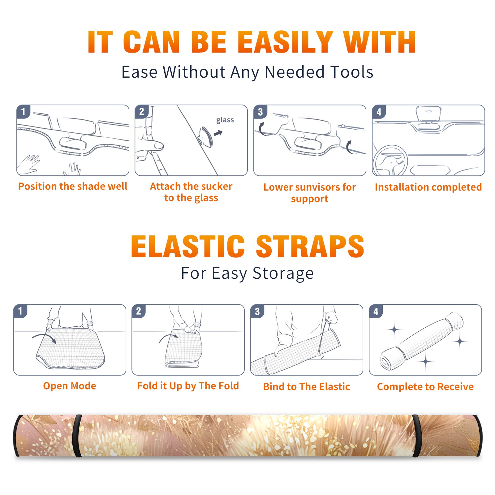 Diameter /Size 63"L x 33.5"W</b><br> Made from excellent materials which makes it sturdy and protects the car from the sun. Easy to use and pack. Makes the interior of the car cooler.You can easily stash the sunshade in the storage bag or store long term.It open and closes easy. Also the leather storage bag is durable and easy to put the umbrella back into.This windshield sunshade provides complete coverage and keeps your car interior cool under direct sun. It is easy to open and position under the windshield and around the rear-view mirror. Makes Your Car Easy To Identify, Perfect For Finding Your Car In Crowded Parking Lots And Garages.Great Choice: It Is A Great Gift For Dad, Boyfriend, Brother, Brother And Uncle, Friends, Classmates, Family And So On.<br> Notice:</b><br> Due To Difference Computer Monitors, The Color Maybe Slightly Different From Picture. As Different Measurement Methods, Measurement Data Will Float Within 2%.I Hope You Understand.<br> If You Have Any Question About The Item Please Do Not Hesitate To Contact Us Immediately And We Will Give You A Satisfactory Reply Within 24 Hours.