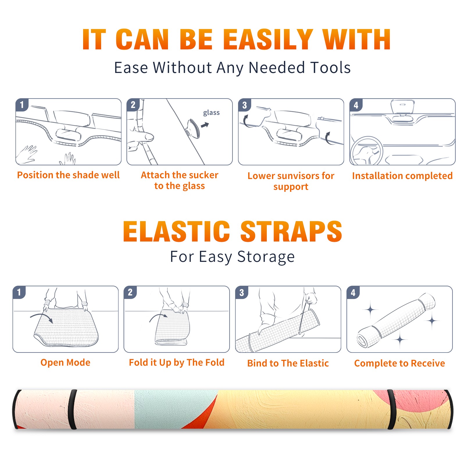 • Diameter /Size 63"L x 33.5"W</b><br> Made from excellent materials which makes it sturdy and protects the car from the sun. Easy to use and pack. Makes the interior of the car cooler.You can easily stash the sunshade in the storage bag or store long term.It open and closes easy. Also the leather storage bag is durable and easy to put the umbrella back into.This windshield sunshade provides complete coverage and keeps your car interior cool under direct sun. It is easy to open and position under the windshield and around the rear-view mirror. Makes Your Car Easy To Identify, Perfect For Finding Your Car In Crowded Parking Lots And Garages.Great Choice: It Is A Great Gift For Dad, Boyfriend, Brother, Brother And Uncle, Friends, Classmates, Family And So On.<br> Notice:</b><br> Due To Difference Computer Monitors, The Color Maybe Slightly Different From Picture. As Different Measurement Methods, Measurement Data Will Float Within 2%.I Hope You Understand.<br> If You Have Any Question About The Item Please Do Not Hesitate To Contact Us Immediately And We Will Give You A Satisfactory Reply Within 24 Hours.