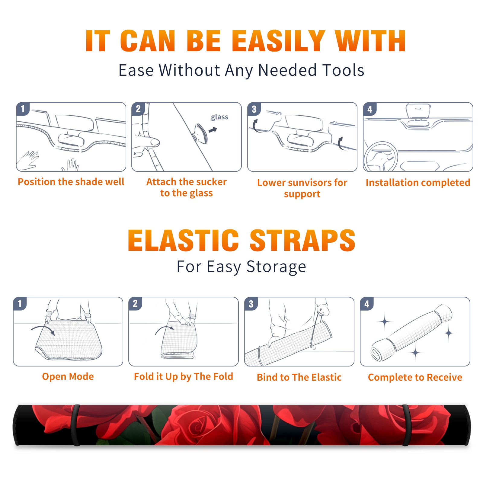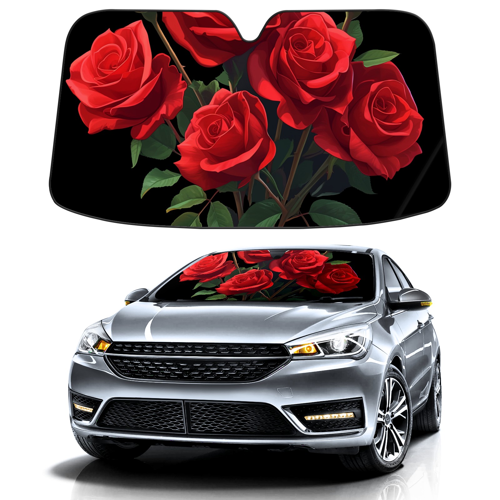 Car Windshield Sun Shade for Front Window Roses1 Foldable Vehicle Windshield Car Sun Visor Covers Automotive Window Protector Car Camping Privacy Sun Blocker