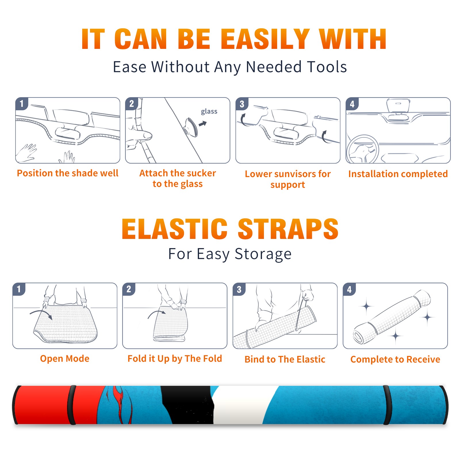 Diameter /Size 63"L x 33.5"W</b><br> Made from excellent materials which makes it sturdy and protects the car from the sun. Easy to use and pack. Makes the interior of the car cooler.You can easily stash the sunshade in the storage bag or store long term.It open and closes easy. Also the leather storage bag is durable and easy to put the umbrella back into.This windshield sunshade provides complete coverage and keeps your car interior cool under direct sun. It is easy to open and position under the windshield and around the rear-view mirror. Makes Your Car Easy To Identify, Perfect For Finding Your Car In Crowded Parking Lots And Garages.Great Choice: It Is A Great Gift For Dad, Boyfriend, Brother, Brother And Uncle, Friends, Classmates, Family And So On.<br> Notice:</b><br> Due To Difference Computer Monitors, The Color Maybe Slightly Different From Picture. As Different Measurement Methods, Measurement Data Will Float Within 2%.I Hope You Understand.<br> If You Have Any Question About The Item Please Do Not Hesitate To Contact Us Immediately And We Will Give You A Satisfactory Reply Within 24 Hours.