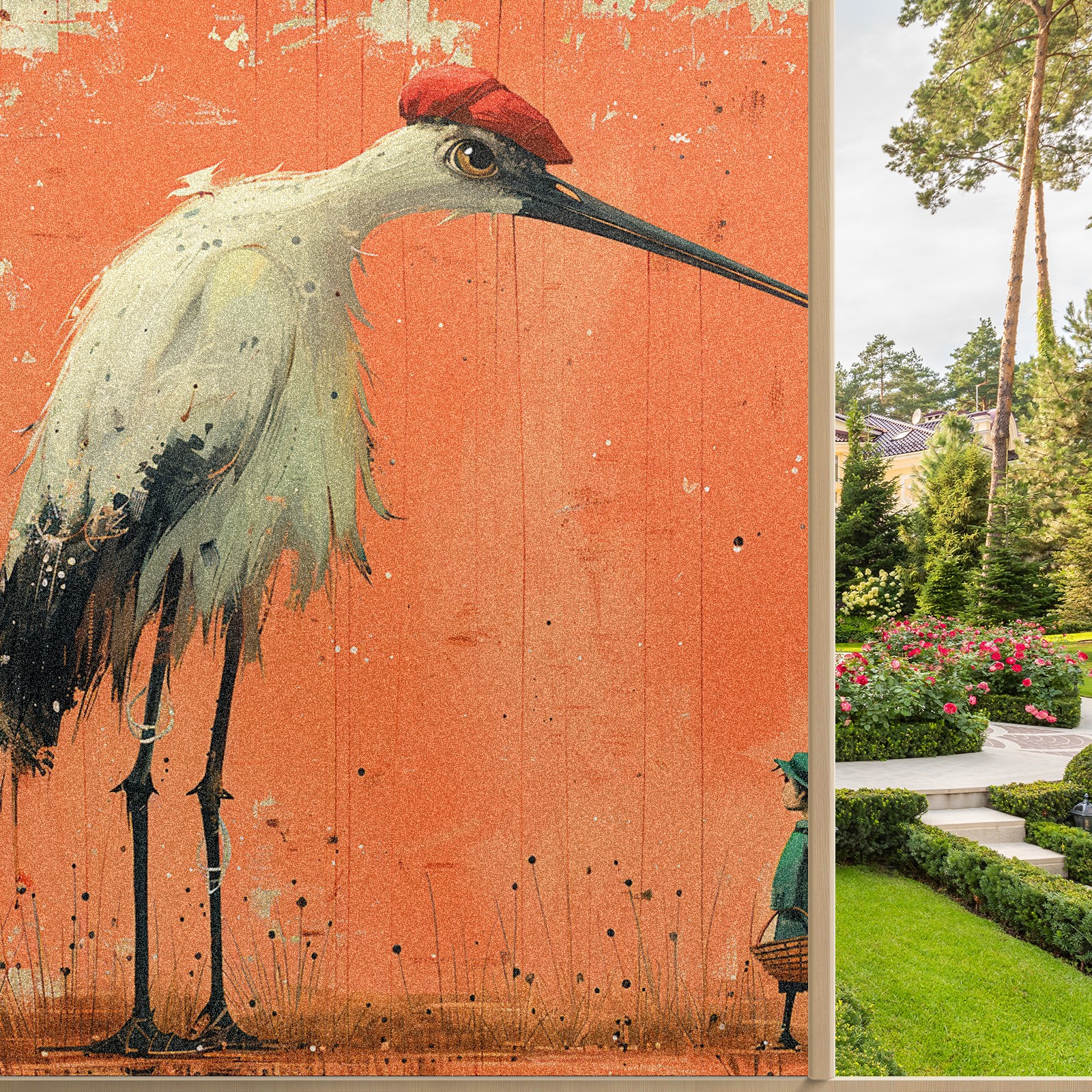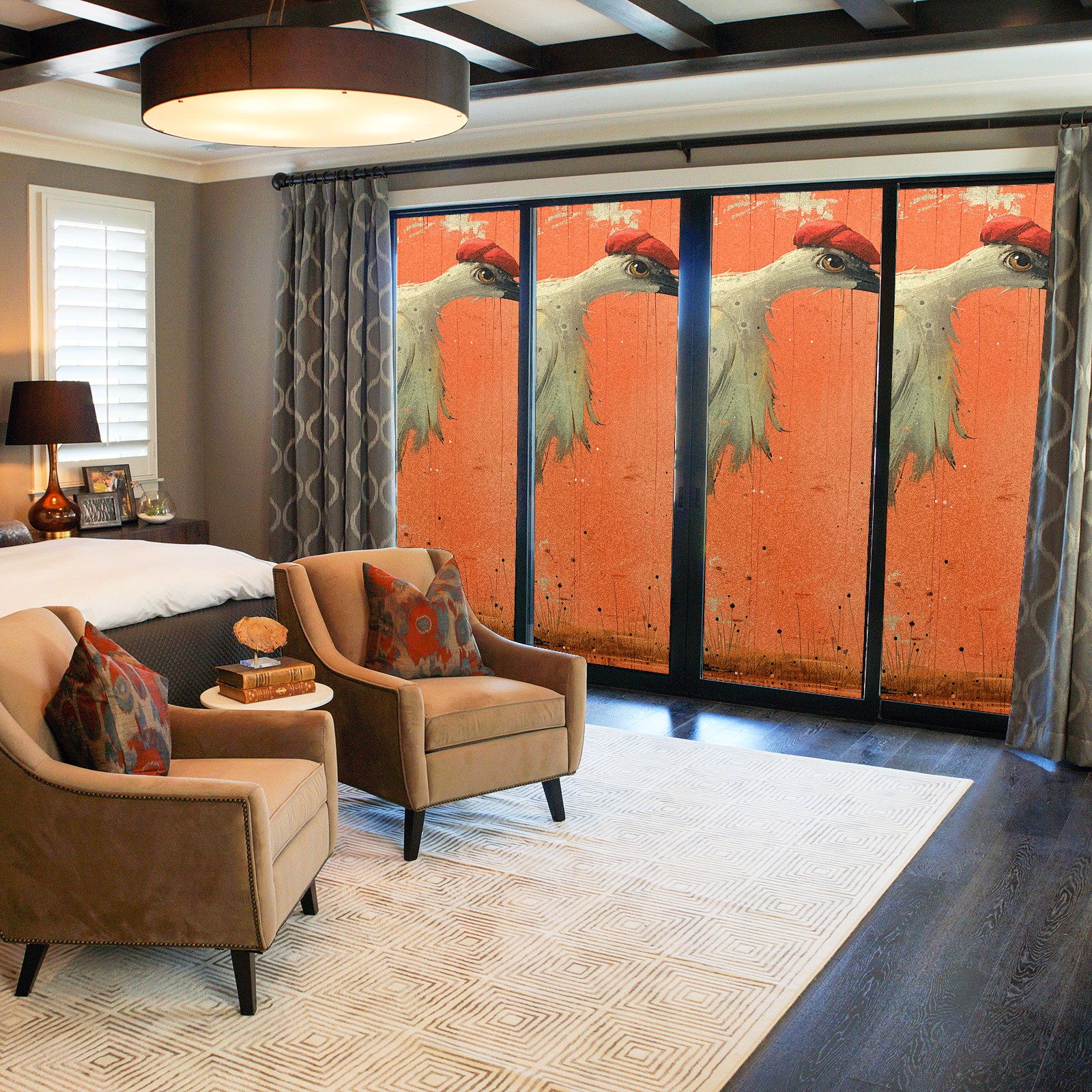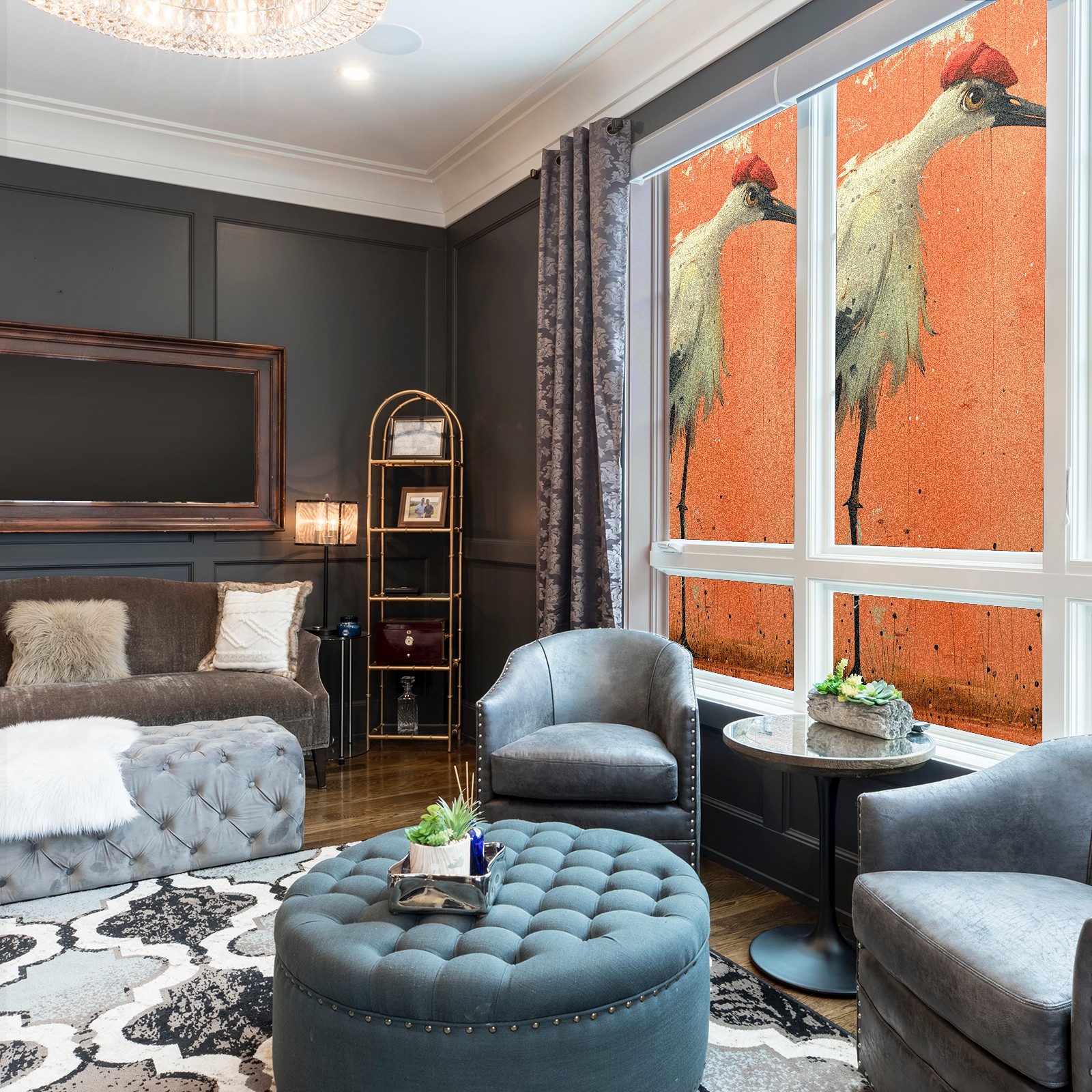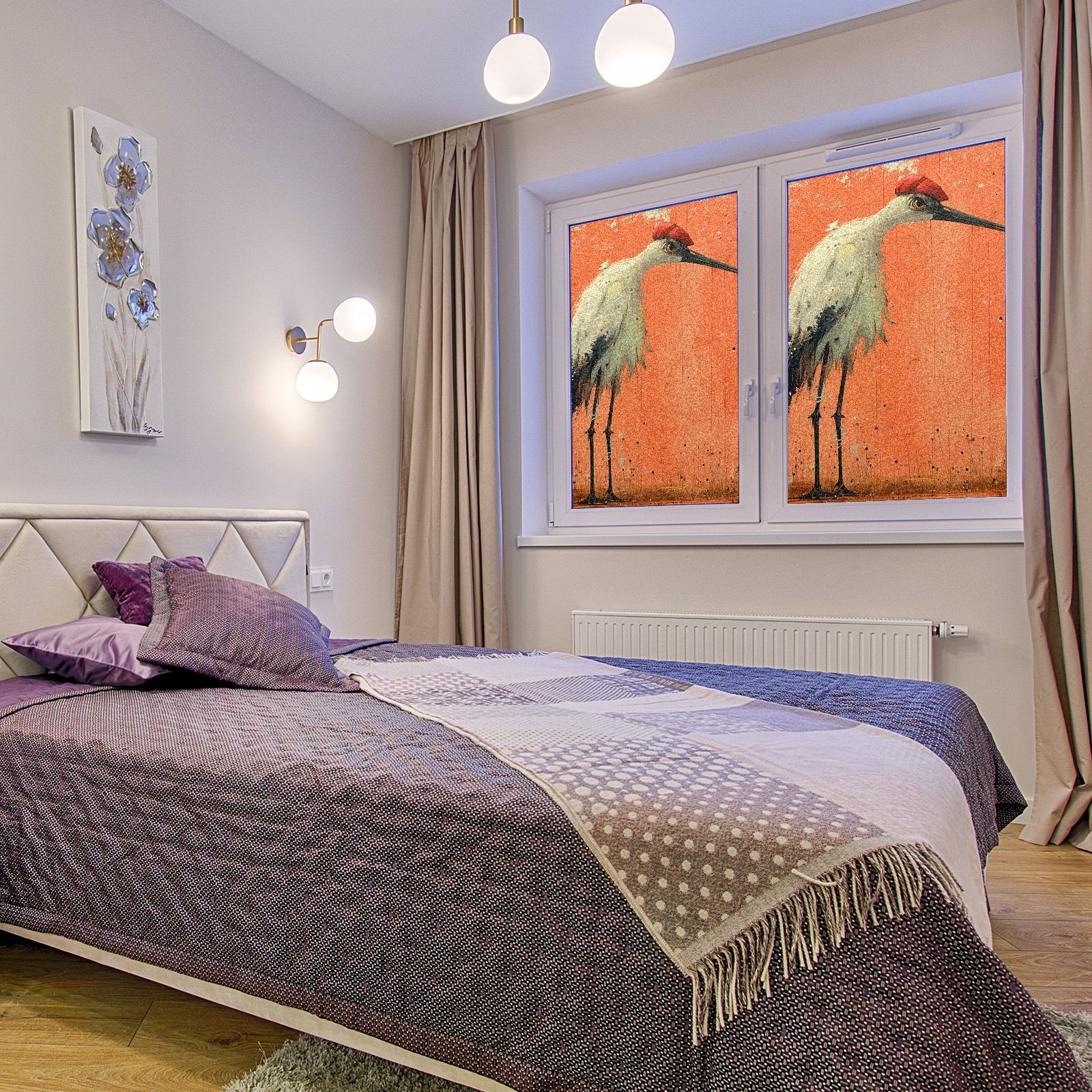 Static Cling Decorative Window Film Frosted Privacy Film Window Clings for Glass Windows No Glue Window Sticker for Bathroom Bedroom Office Crane