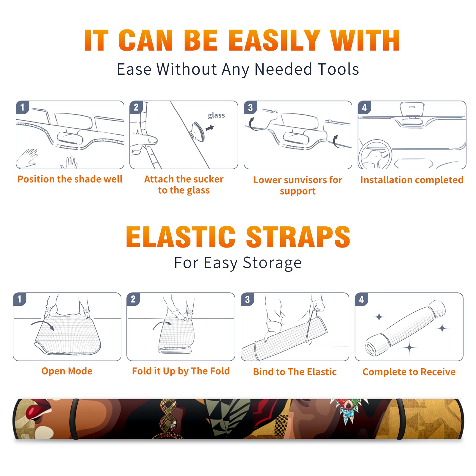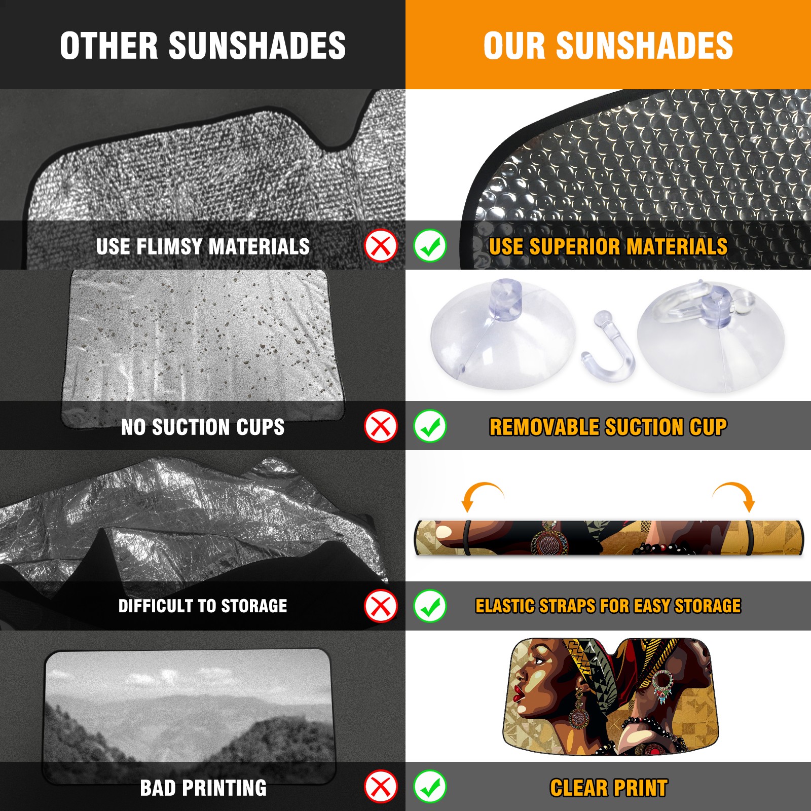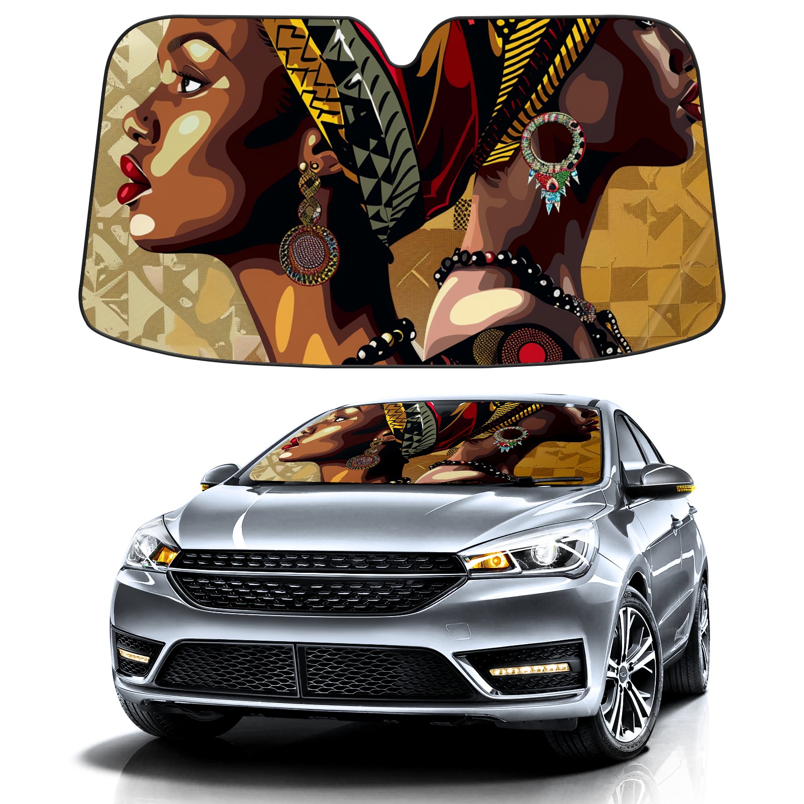 Car Windshield Sun Shade for Front Window Black Girl Foldable Vehicle Windshield Car Sun Visor Covers Automotive Window Protector Car Camping Privacy Sun Blocker