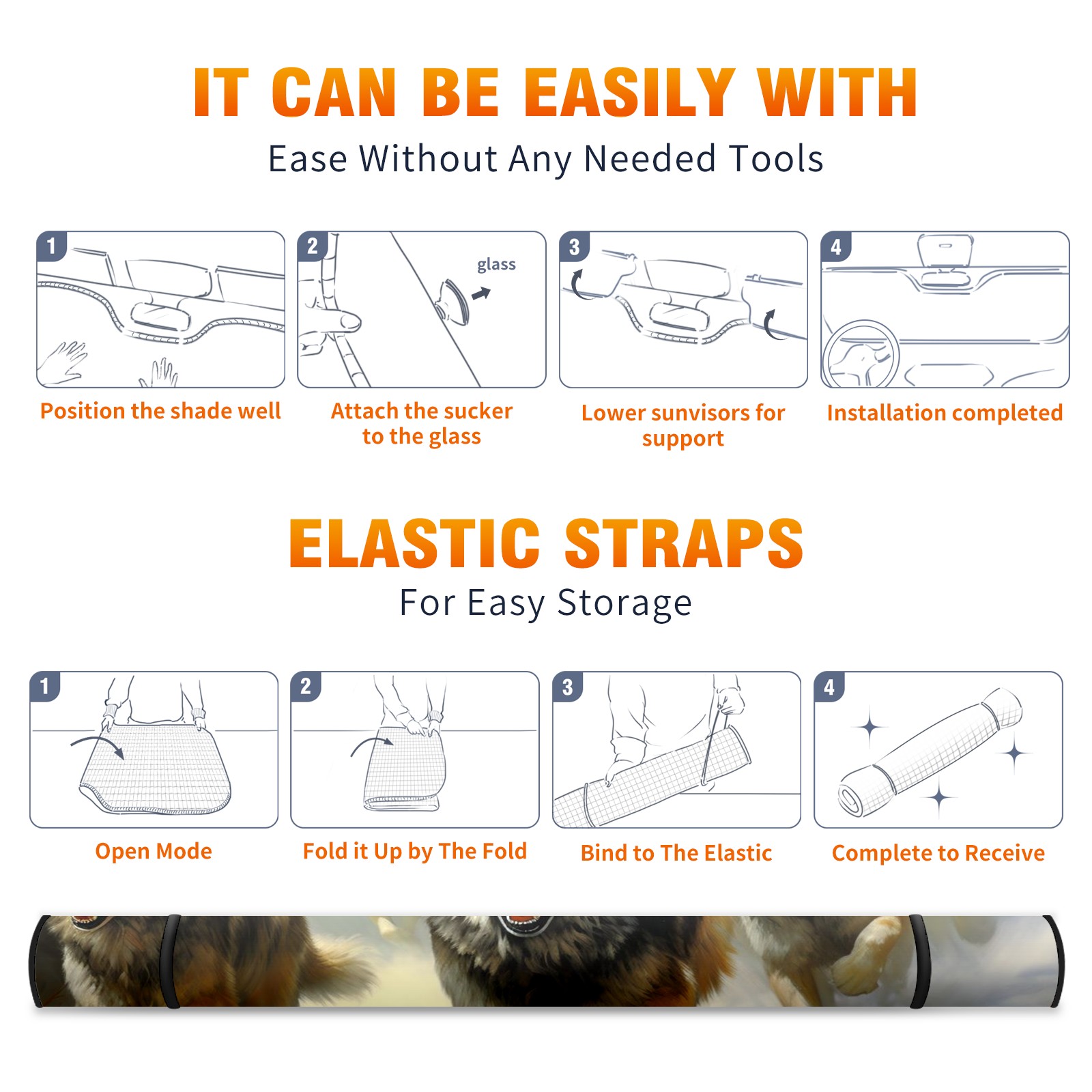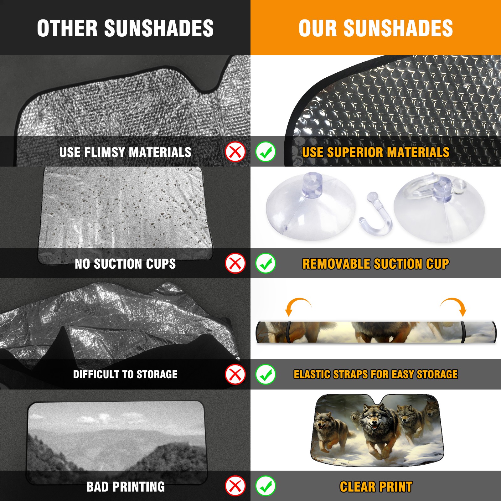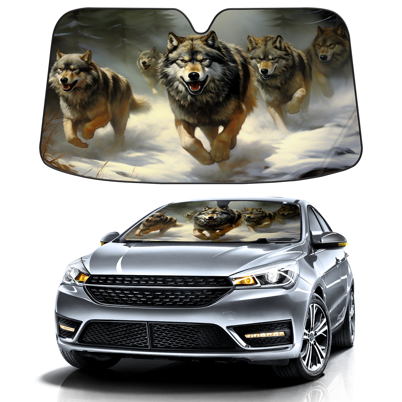 Car Windshield Sun Shade for Front Window Wolves Foldable Vehicle Windshield Car Sun Visor Covers Automotive Window Protector Car Camping Privacy Sun Blocker