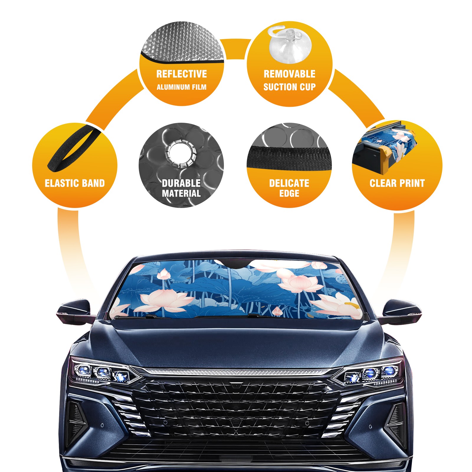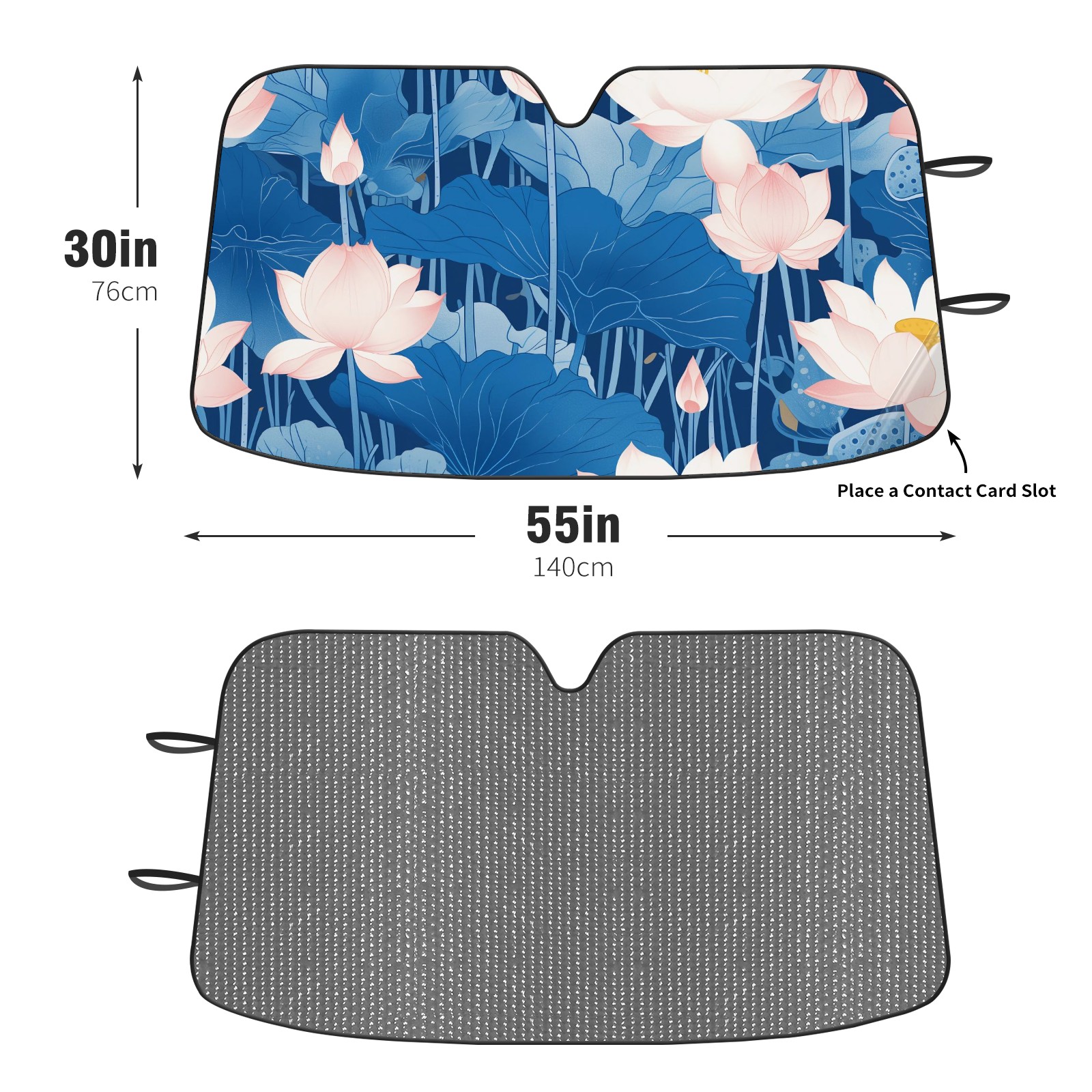 Car Windshield Sun Shade for Front Window Blue Lotus Flower Foldable Vehicle Windshield Car Sun Visor Covers Automotive Window Protector Car Camping Privacy Sun Blocker