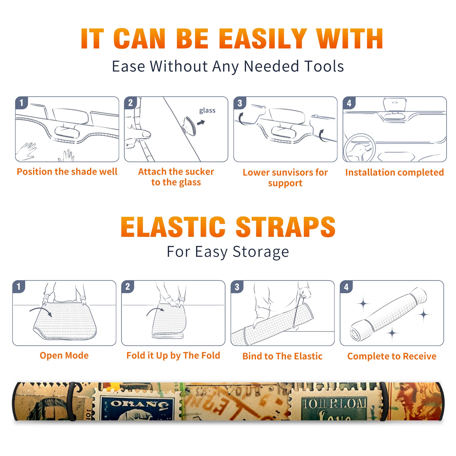Car Windshield Sun Shade for Front Window Stamp Foldable Vehicle Windshield Car Sun Visor Covers Automotive Window Protector Car Camping Privacy Sun Blocker