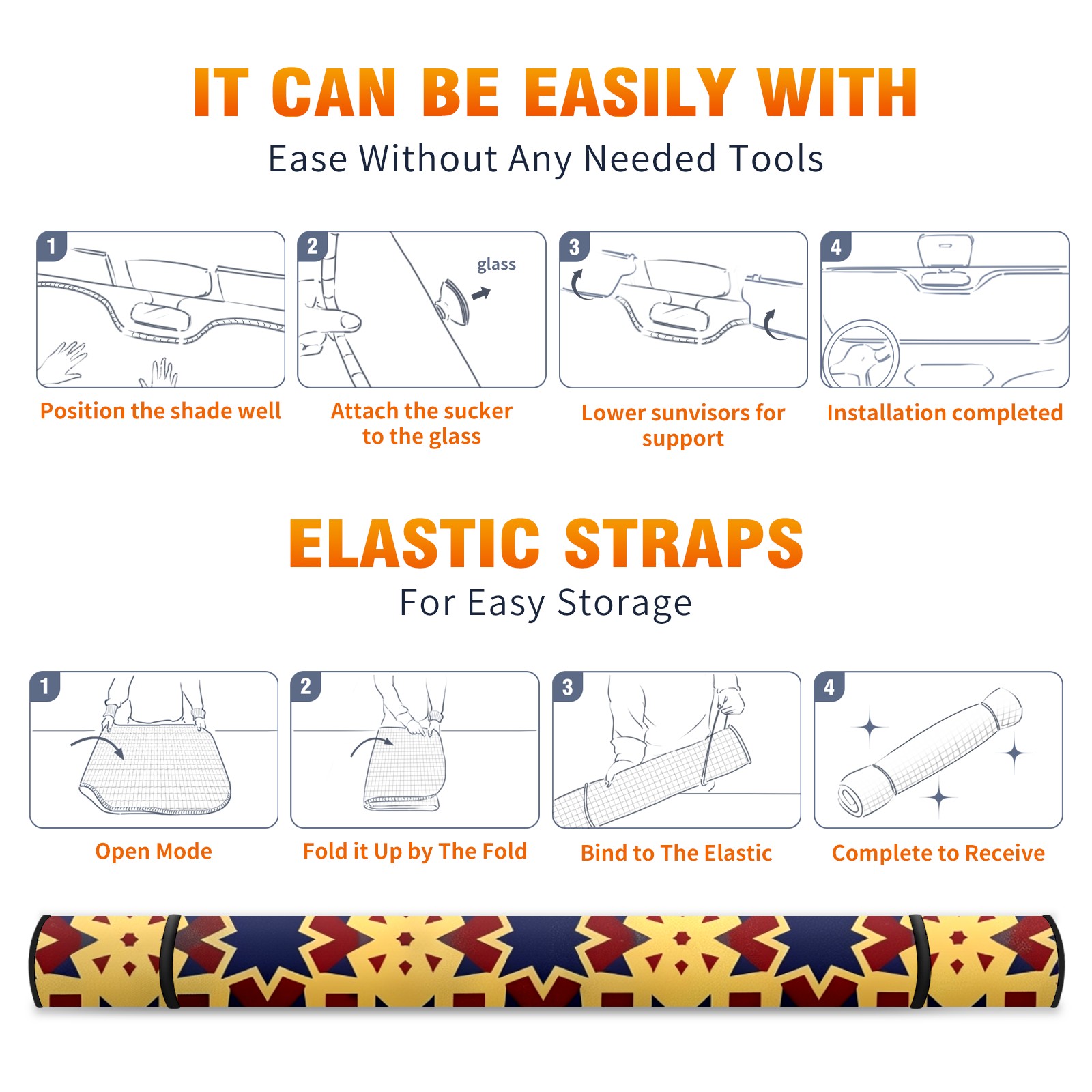 • Diameter /Size 63"L x 33.5"W</b><br> Made from excellent materials which makes it sturdy and protects the car from the sun. Easy to use and pack. Makes the interior of the car cooler.You can easily stash the sunshade in the storage bag or store long term.It open and closes easy. Also the leather storage bag is durable and easy to put the umbrella back into.This windshield sunshade provides complete coverage and keeps your car interior cool under direct sun. It is easy to open and position under the windshield and around the rear-view mirror. Makes Your Car Easy To Identify, Perfect For Finding Your Car In Crowded Parking Lots And Garages.Great Choice: It Is A Great Gift For Dad, Boyfriend, Brother, Brother And Uncle, Friends, Classmates, Family And So On.<br> Notice:</b><br> Due To Difference Computer Monitors, The Color Maybe Slightly Different From Picture. As Different Measurement Methods, Measurement Data Will Float Within 2%.I Hope You Understand.<br> If You Have Any Question About The Item Please Do Not Hesitate To Contact Us Immediately And We Will Give You A Satisfactory Reply Within 24 Hours.