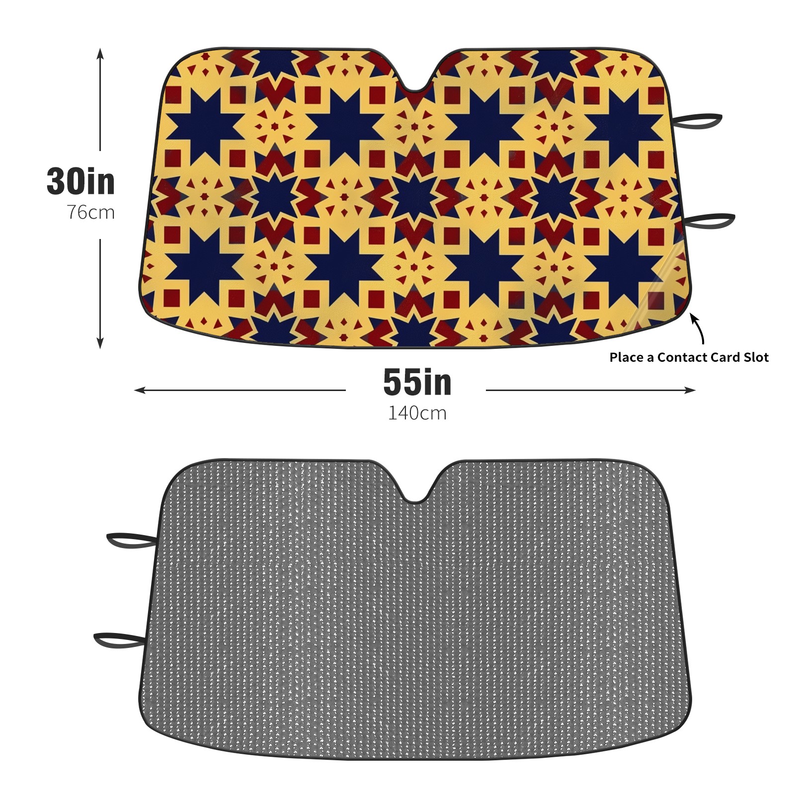 Diameter /Size 63"L x 33.5"W</b><br> Made from excellent materials which makes it sturdy and protects the car from the sun. Easy to use and pack. Makes the interior of the car cooler.You can easily stash the sunshade in the storage bag or store long term.It open and closes easy. Also the leather storage bag is durable and easy to put the umbrella back into.This windshield sunshade provides complete coverage and keeps your car interior cool under direct sun. It is easy to open and position under the windshield and around the rear-view mirror. Makes Your Car Easy To Identify, Perfect For Finding Your Car In Crowded Parking Lots And Garages.Great Choice: It Is A Great Gift For Dad, Boyfriend, Brother, Brother And Uncle, Friends, Classmates, Family And So On.<br> Notice:</b><br> Due To Difference Computer Monitors, The Color Maybe Slightly Different From Picture. As Different Measurement Methods, Measurement Data Will Float Within 2%.I Hope You Understand.<br> If You Have Any Question About The Item Please Do Not Hesitate To Contact Us Immediately And We Will Give You A Satisfactory Reply Within 24 Hours.