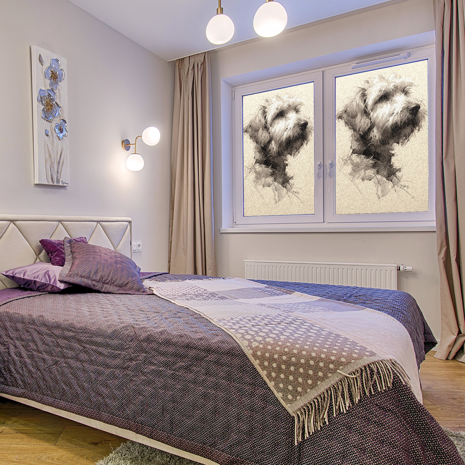 Static Cling Decorative Window Film Frosted Privacy Film Window Clings for Glass Windows No Glue Window Sticker for Bathroom Bedroom Office Dog