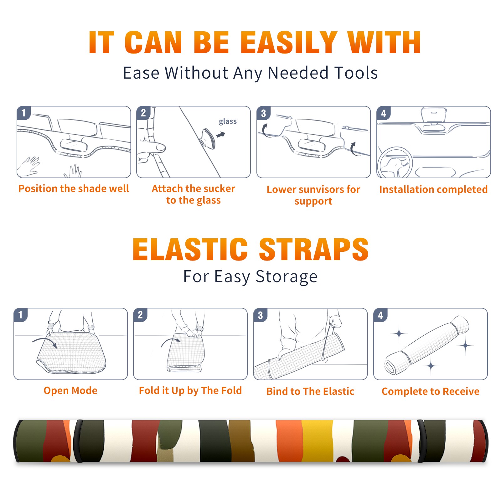Diameter /Size 63"L x 33.5"W</b><br> Made from excellent materials which makes it sturdy and protects the car from the sun. Easy to use and pack. Makes the interior of the car cooler.You can easily stash the sunshade in the storage bag or store long term.It open and closes easy. Also the leather storage bag is durable and easy to put the umbrella back into.This windshield sunshade provides complete coverage and keeps your car interior cool under direct sun. It is easy to open and position under the windshield and around the rear-view mirror. Makes Your Car Easy To Identify, Perfect For Finding Your Car In Crowded Parking Lots And Garages.Great Choice: It Is A Great Gift For Dad, Boyfriend, Brother, Brother And Uncle, Friends, Classmates, Family And So On.<br> Notice:</b><br> Due To Difference Computer Monitors, The Color Maybe Slightly Different From Picture. As Different Measurement Methods, Measurement Data Will Float Within 2%.I Hope You Understand.<br> If You Have Any Question About The Item Please Do Not Hesitate To Contact Us Immediately And We Will Give You A Satisfactory Reply Within 24 Hours.