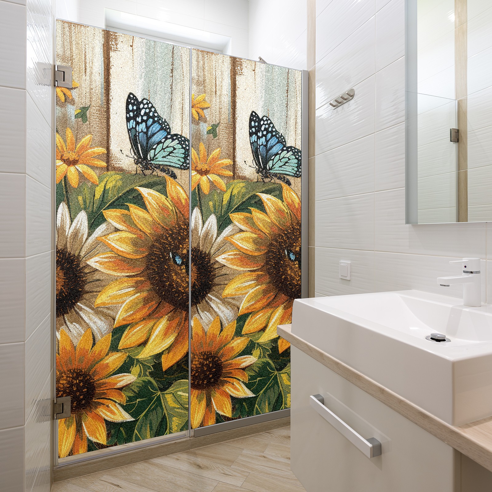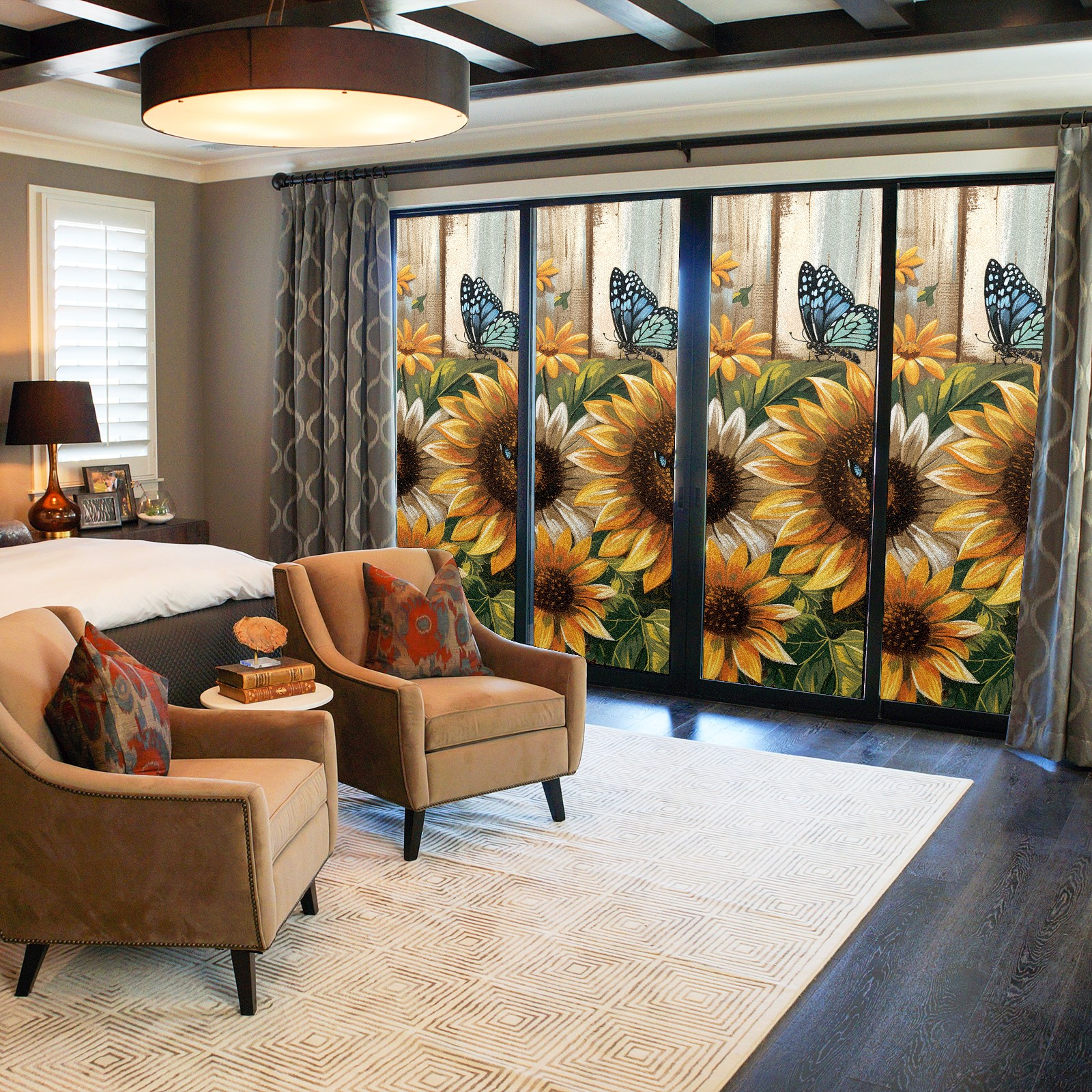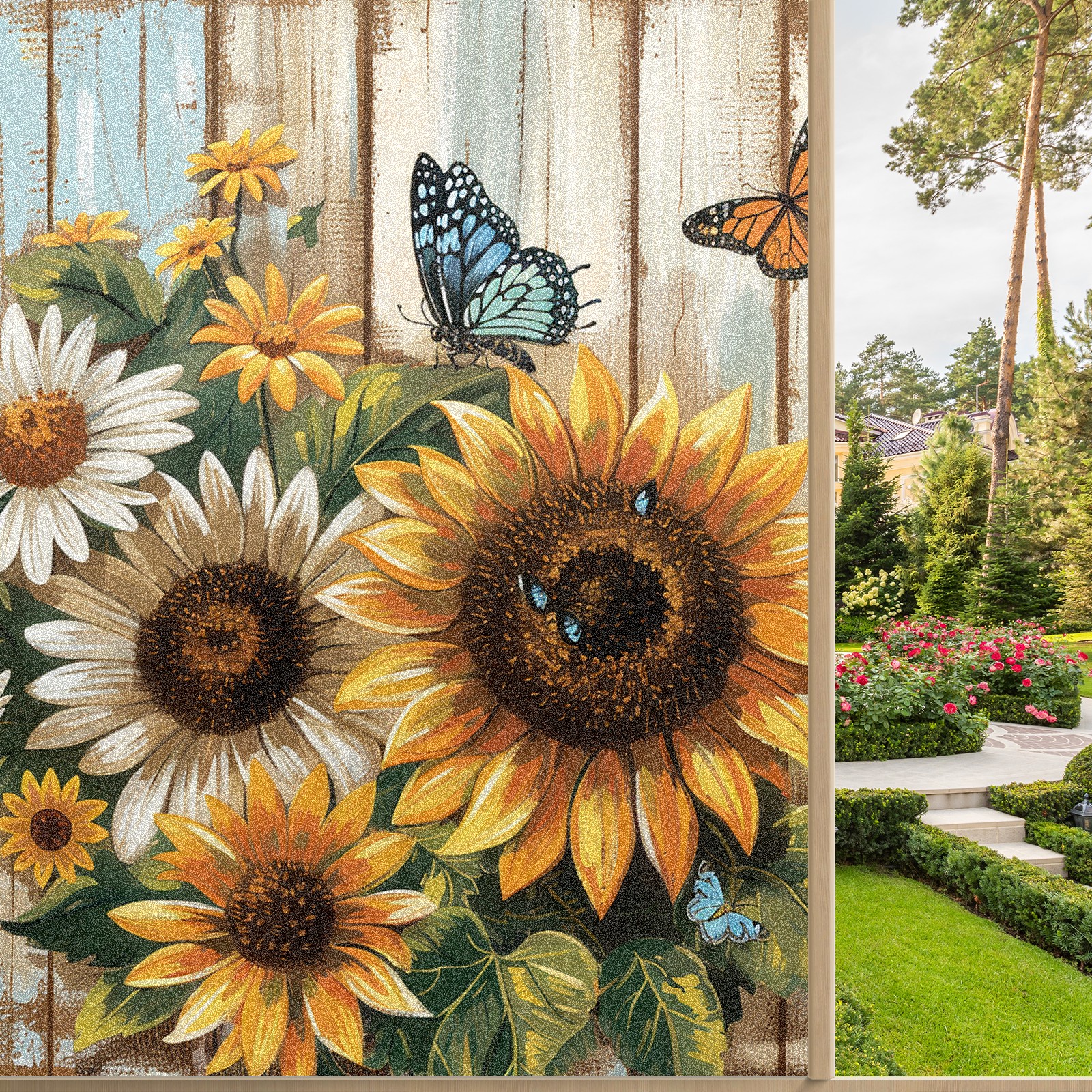 Static Cling Decorative Window Film Frosted Privacy Film Window Clings for Glass Windows No Glue Window Sticker for Bathroom Bedroom Office Daisy