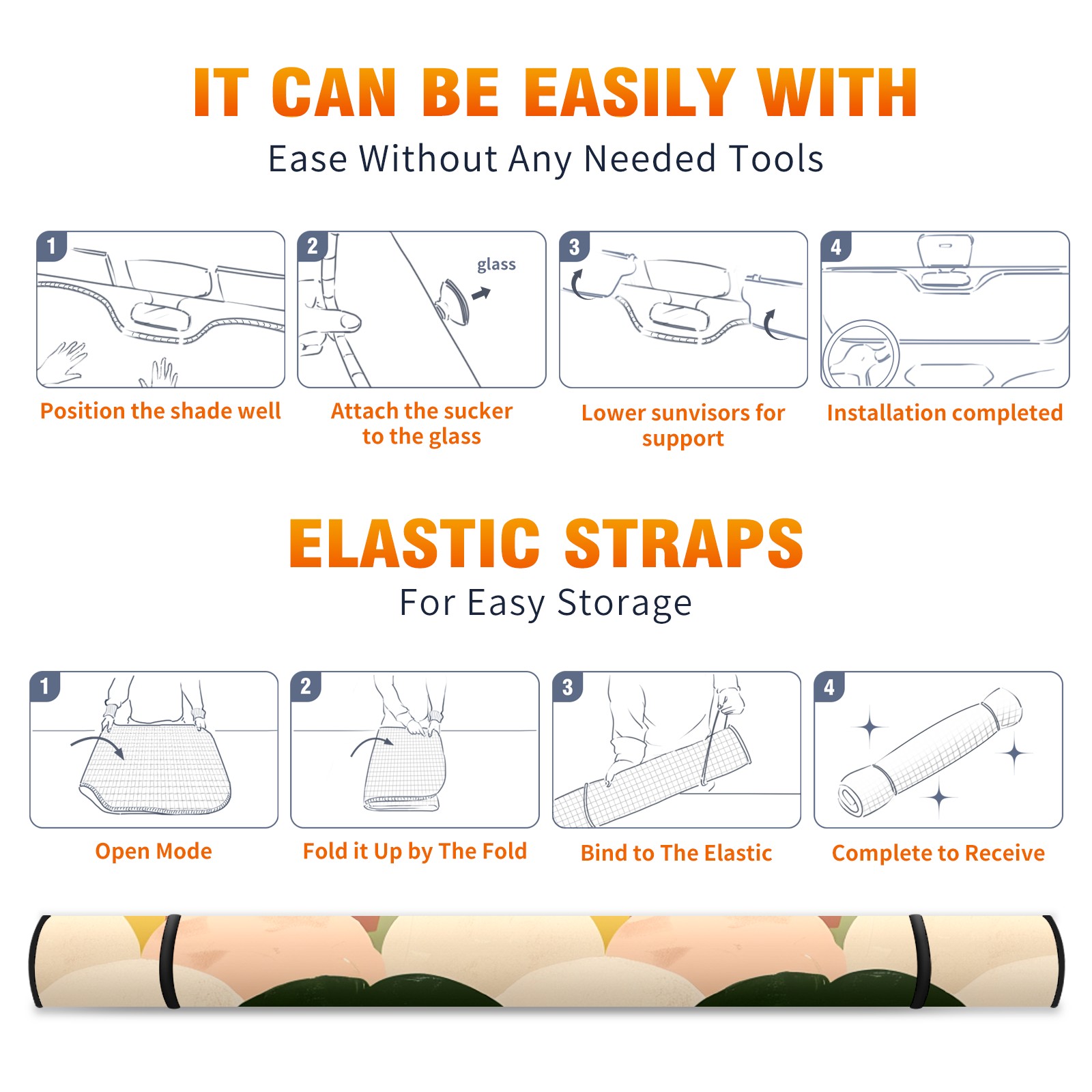Diameter /Size 63"L x 33.5"W</b><br> Made from excellent materials which makes it sturdy and protects the car from the sun. Easy to use and pack. Makes the interior of the car cooler.You can easily stash the sunshade in the storage bag or store long term.It open and closes easy. Also the leather storage bag is durable and easy to put the umbrella back into.This windshield sunshade provides complete coverage and keeps your car interior cool under direct sun. It is easy to open and position under the windshield and around the rear-view mirror. Makes Your Car Easy To Identify, Perfect For Finding Your Car In Crowded Parking Lots And Garages.Great Choice: It Is A Great Gift For Dad, Boyfriend, Brother, Brother And Uncle, Friends, Classmates, Family And So On.<br> Notice:</b><br> Due To Difference Computer Monitors, The Color Maybe Slightly Different From Picture. As Different Measurement Methods, Measurement Data Will Float Within 2%.I Hope You Understand.<br> If You Have Any Question About The Item Please Do Not Hesitate To Contact Us Immediately And We Will Give You A Satisfactory Reply Within 24 Hours.