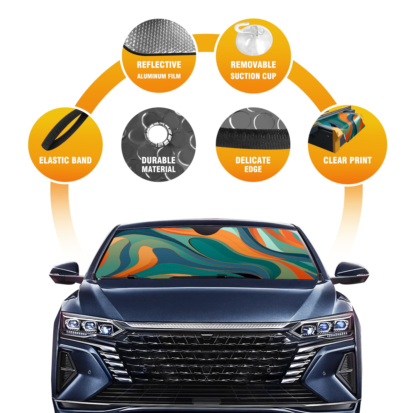 Car Windshield Sun Shade for Front Window Abstract Foldable Vehicle Windshield Car Sun Visor Covers Automotive Window Protector Car Camping Privacy Sun Blocker