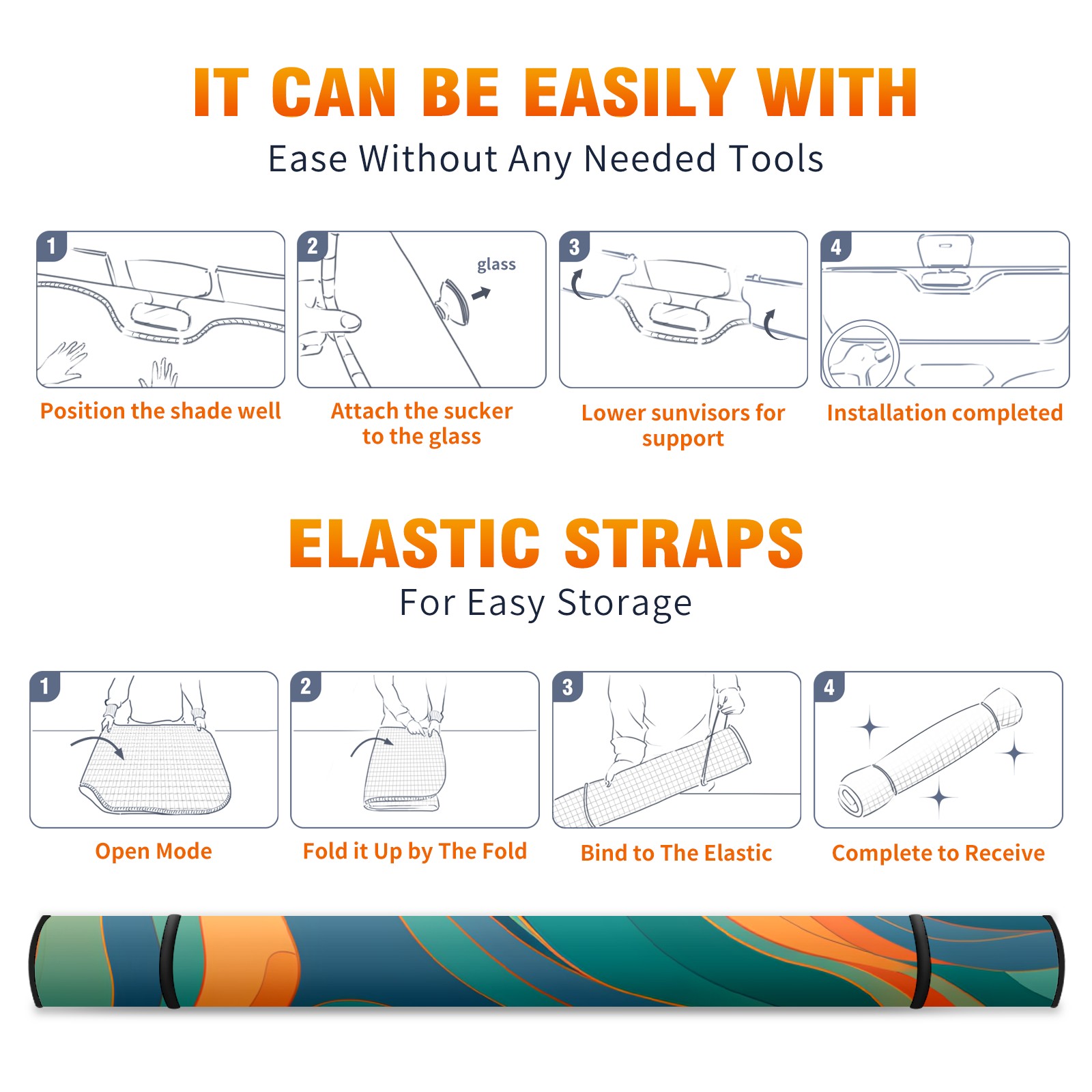 • Diameter /Size 63"L x 33.5"W</b><br> Made from excellent materials which makes it sturdy and protects the car from the sun. Easy to use and pack. Makes the interior of the car cooler.You can easily stash the sunshade in the storage bag or store long term.It open and closes easy. Also the leather storage bag is durable and easy to put the umbrella back into.This windshield sunshade provides complete coverage and keeps your car interior cool under direct sun. It is easy to open and position under the windshield and around the rear-view mirror. Makes Your Car Easy To Identify, Perfect For Finding Your Car In Crowded Parking Lots And Garages.Great Choice: It Is A Great Gift For Dad, Boyfriend, Brother, Brother And Uncle, Friends, Classmates, Family And So On.<br> Notice:</b><br> Due To Difference Computer Monitors, The Color Maybe Slightly Different From Picture. As Different Measurement Methods, Measurement Data Will Float Within 2%.I Hope You Understand.<br> If You Have Any Question About The Item Please Do Not Hesitate To Contact Us Immediately And We Will Give You A Satisfactory Reply Within 24 Hours.