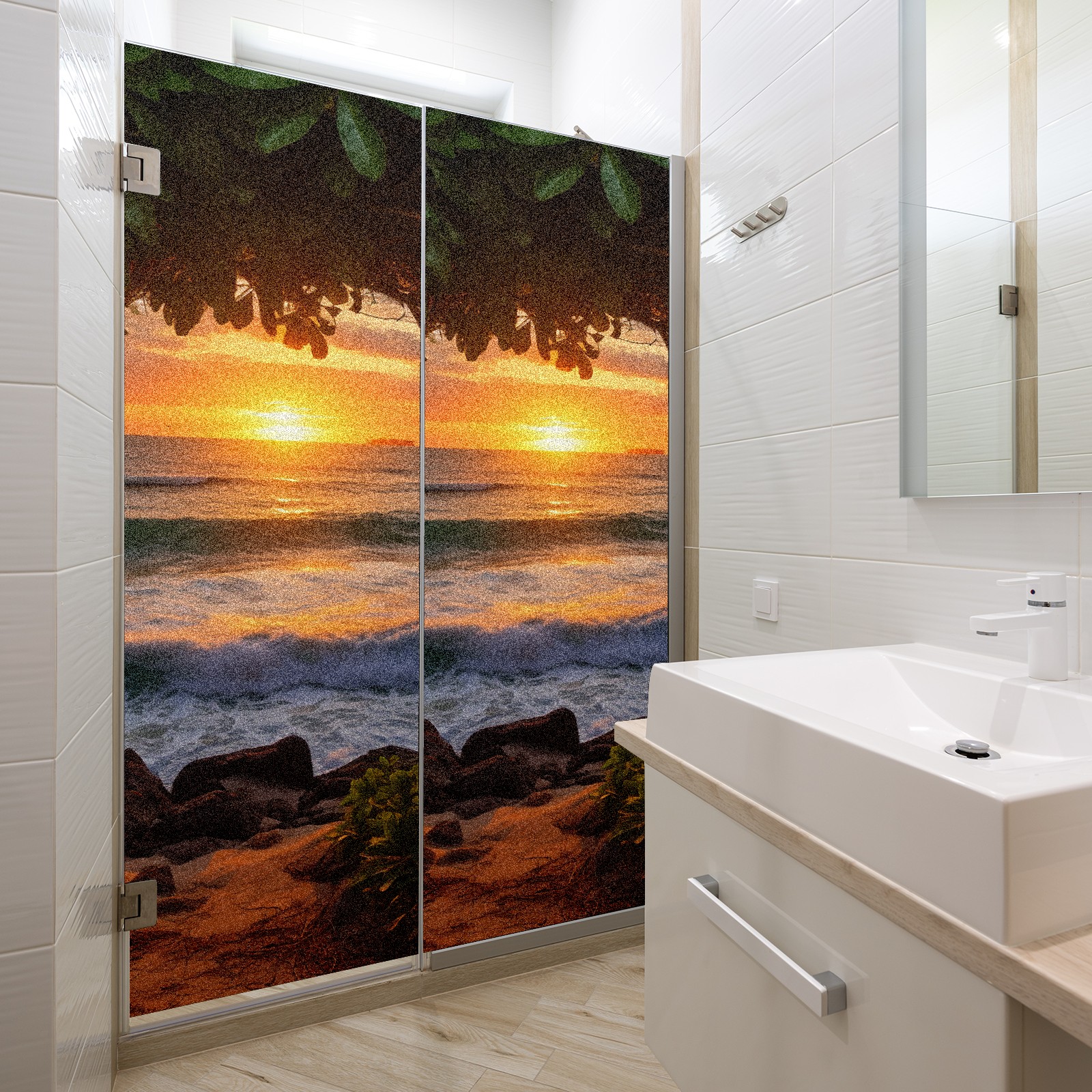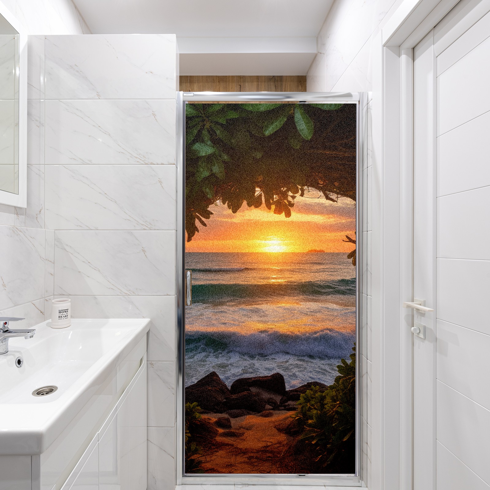 Static Cling Decorative Window Film Frosted Privacy Film Window Clings for Glass Windows No Glue Window Sticker for Bathroom Bedroom Office Sunset